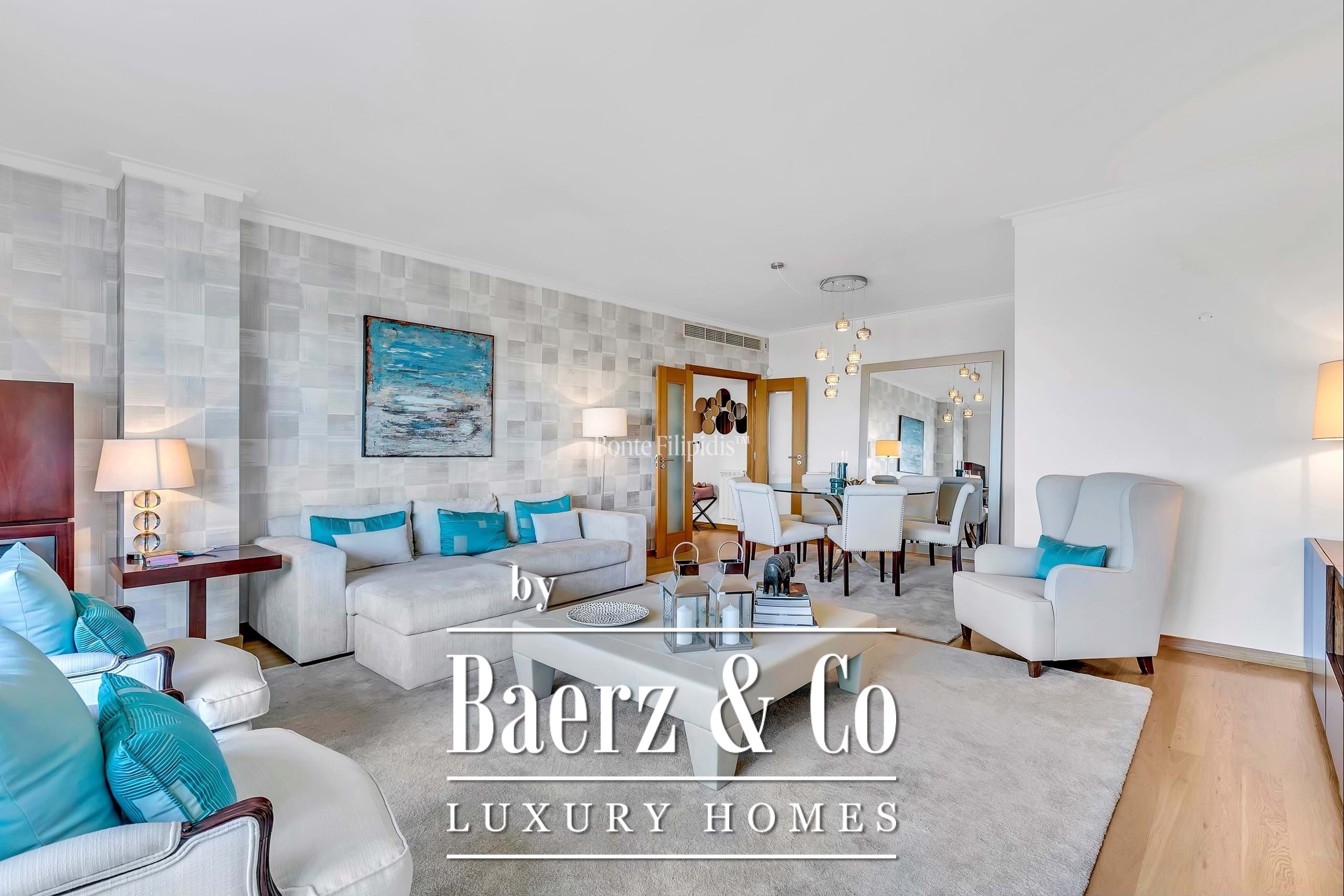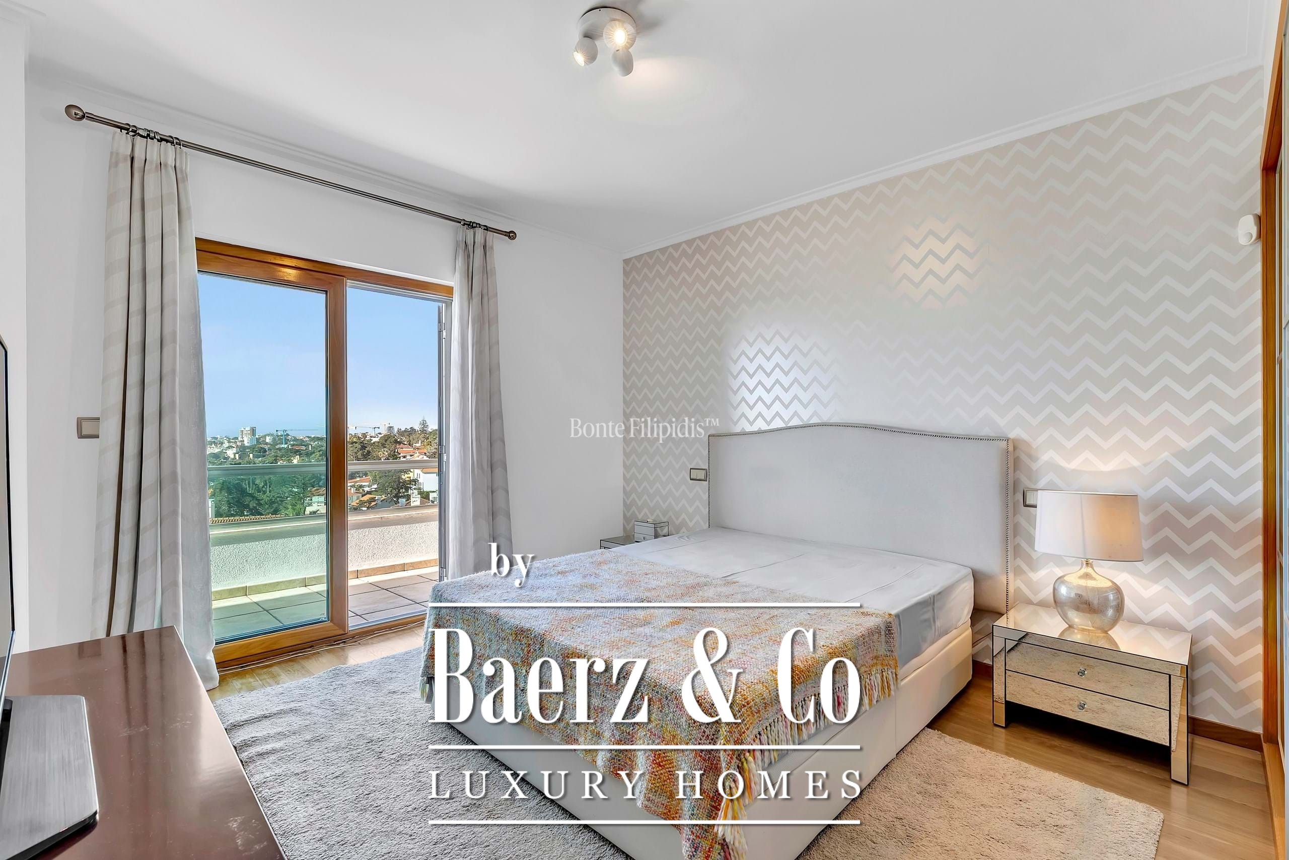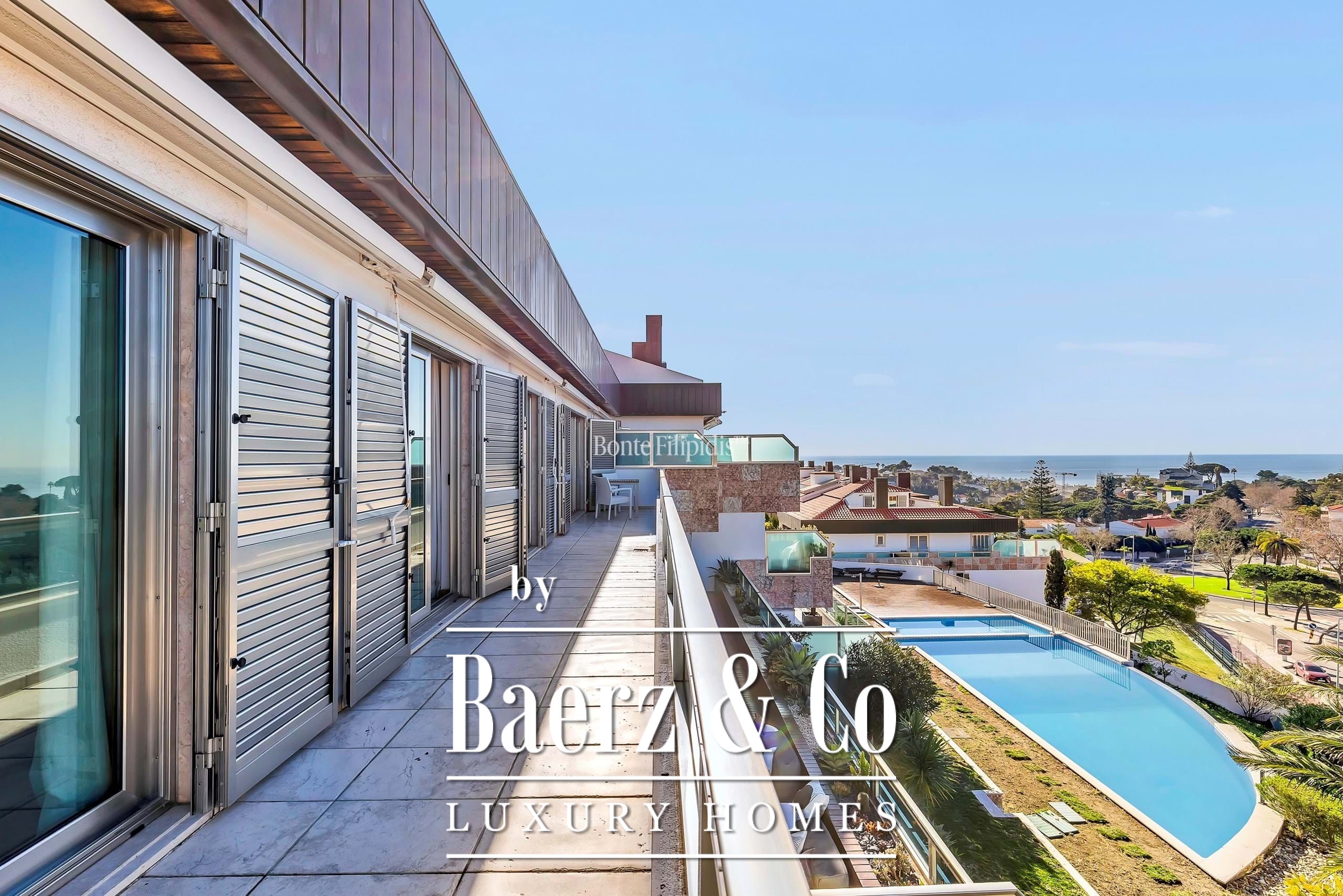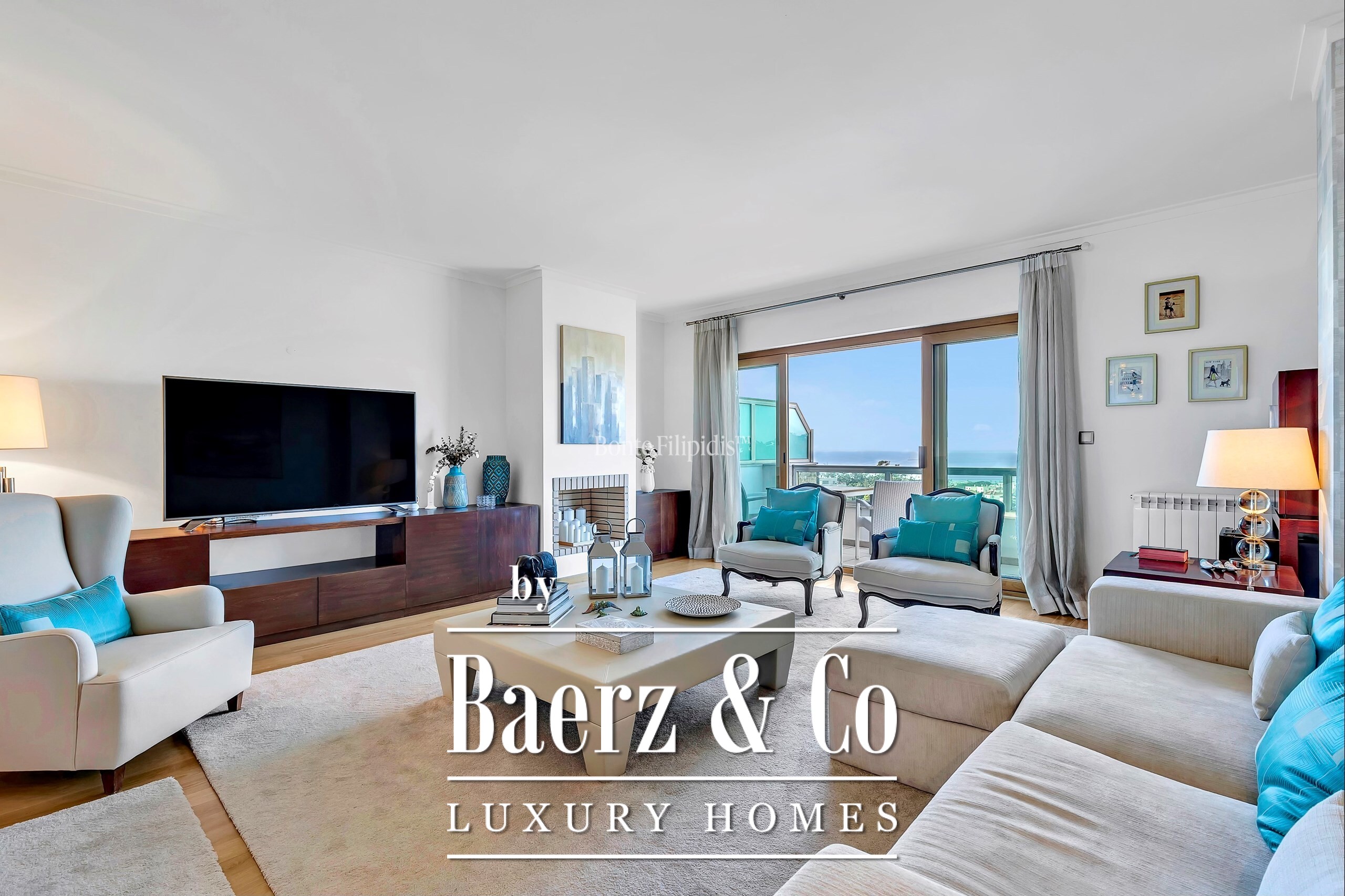Amenities include air conditioning and heating throughout, a storage room, two private parking spaces with a total dependent area of 47 m², lift access, and participation in the condominium’s pool and well-kept gardens. The apartment benefits from proximity to Estoril’s beaches, local restaurants, schools, and direct routes to Lisbon, making it a rare proposition for those seeking an apartment with sea view in Cascais e Estoril.