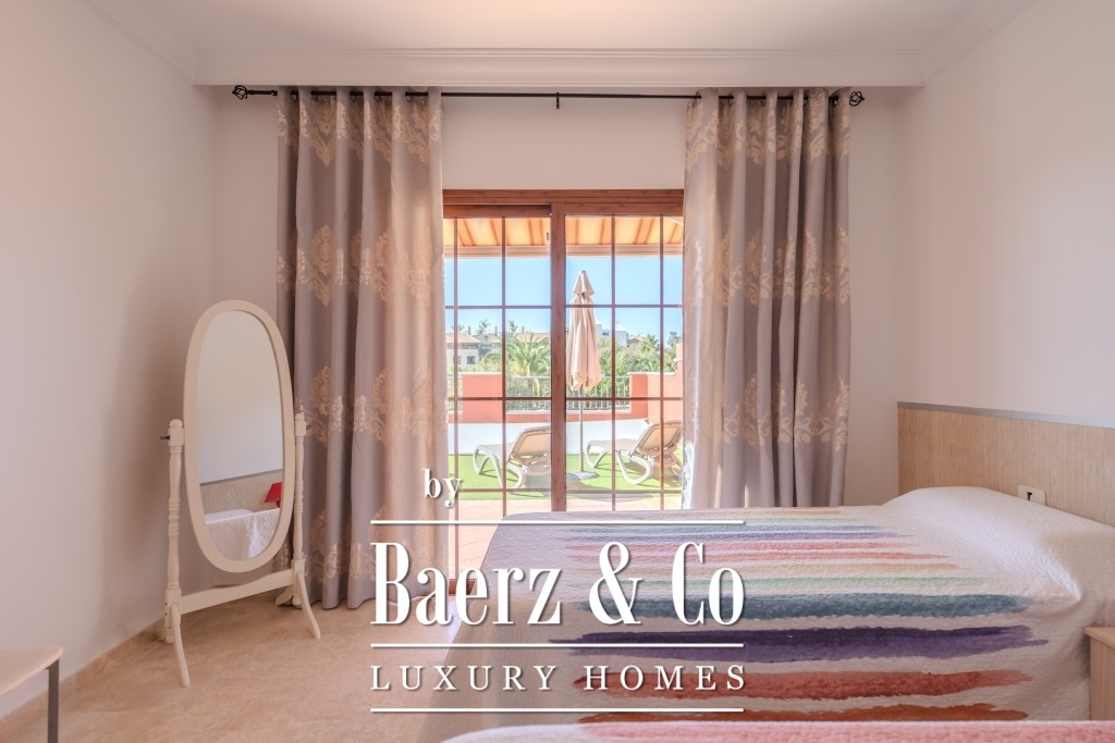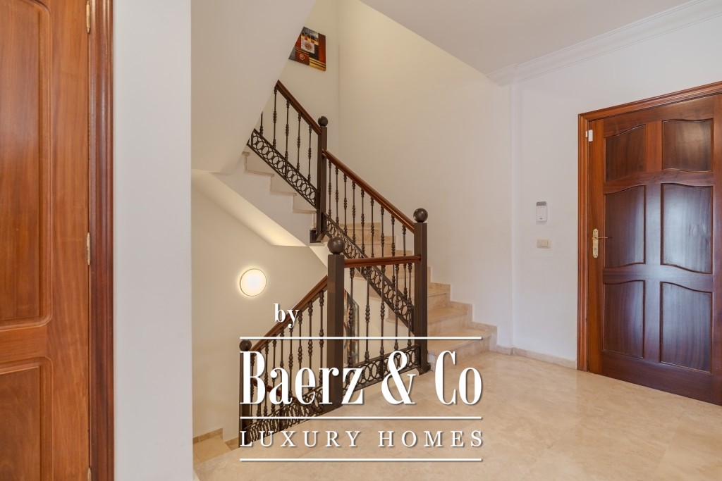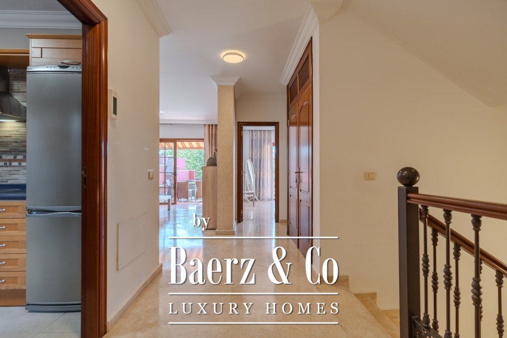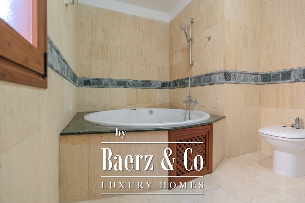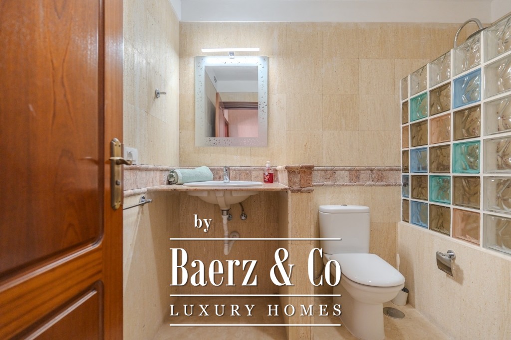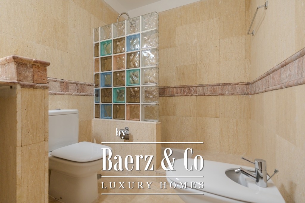 Below, a 77 m² basement accommodates a private garage for two to three cars, a storage room, and further storage under the stairs. Residents benefit from two communal swimming pools, one heated, enveloped by calm and well-kept green zones. Community fees are set at €265 per month, with IBI tax at €925 per year, affirming the villa’s rare combination of access, discretion, and ease.