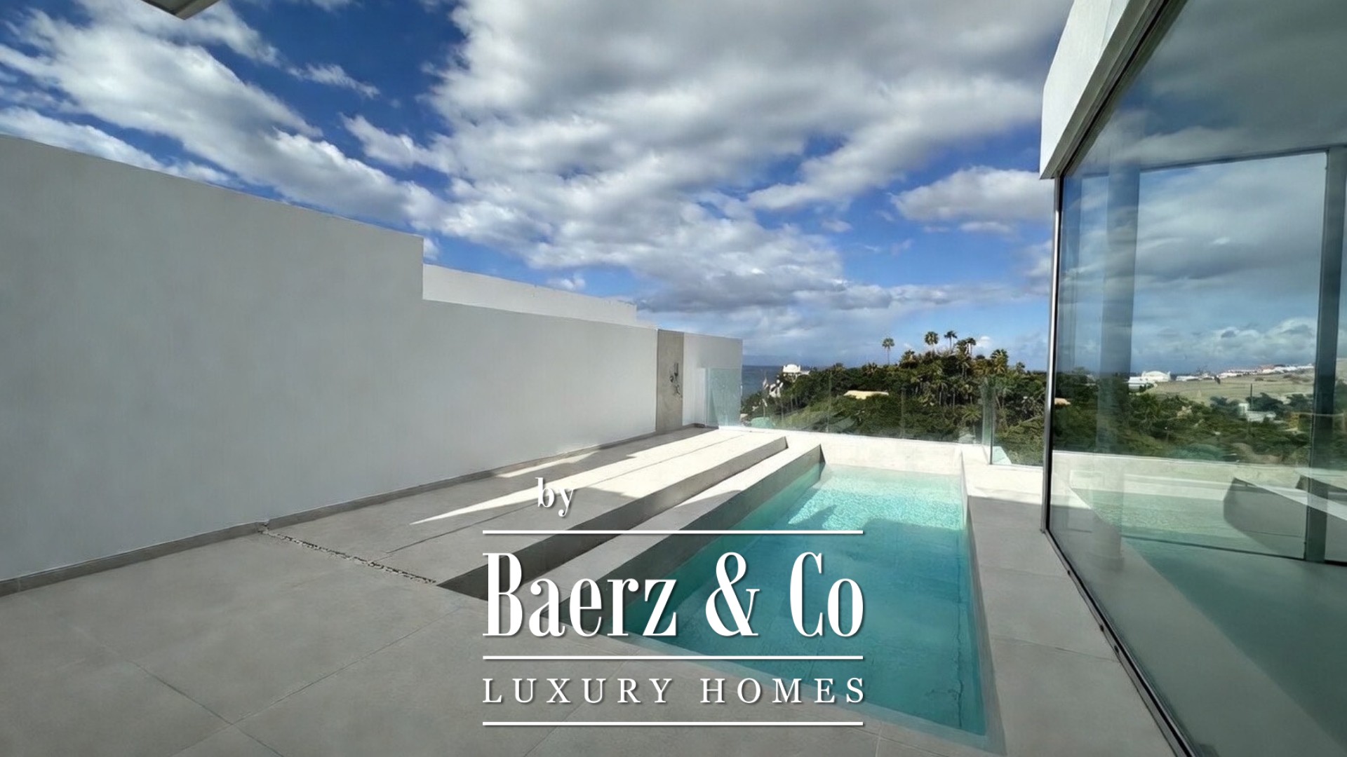 A private swimming pool of 7.5 x 3 metres, outdoor shower, and generous terrace provide an immersive indoor-outdoor experience. On the lower floor, a multi purpose room, two additional bedrooms, two full bathrooms, and a dedicated laundry room offer versatility and comfort. Green areas with exotic plants and palm trees envelope the villa, supporting a tranquil, refined atmosphere.