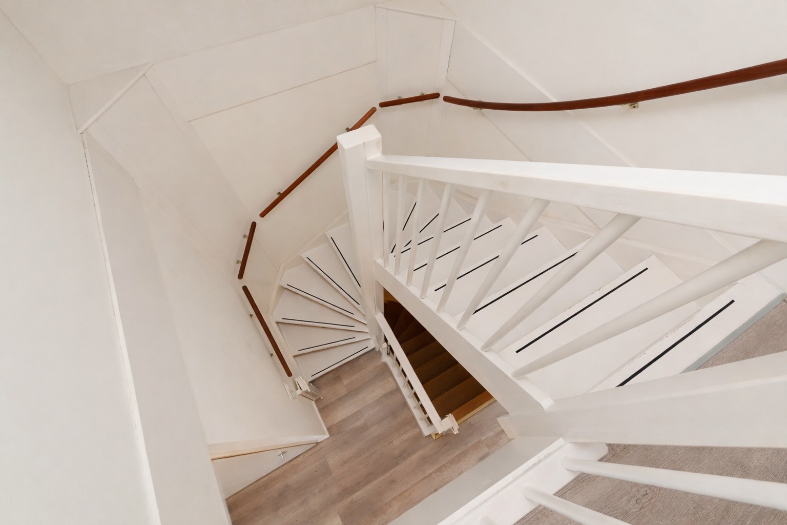 Via het ruime en lichte trappenhuis bereik je de eerste verdieping met een royale overloop die toegang geeft tot drie (van oorsprong vier) slaapkamers.
