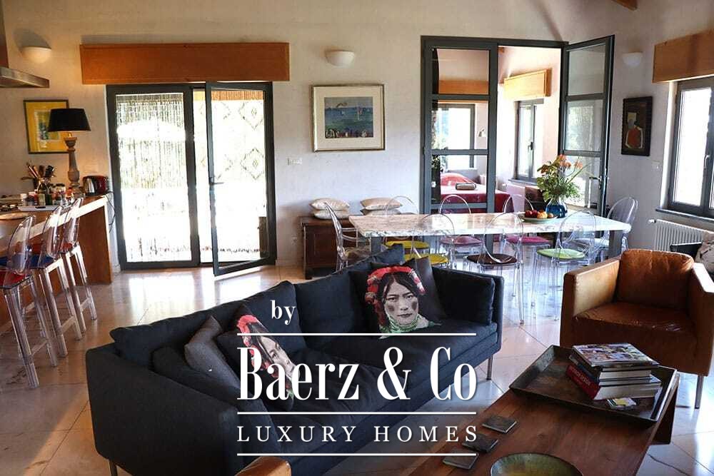 Access is through a private road with a remote-controlled gate, ensuring privacy and quiet. There is parking for several cars. The medieval village of Dolceacqua is less than ten minutes away, with the coast and towns such as Ventimiglia, San Remo, and Monte Carlo within easy reach. Direct hiking routes lead from the property into the surrounding hills and picturesque villages, while beaches and cultural events remain close at hand. This luxury villa for sale in Dolceacqua offers peace, provenance, and a distinct sense of place, allowing owners to embrace both seclusion and the richness of Ligurian life.