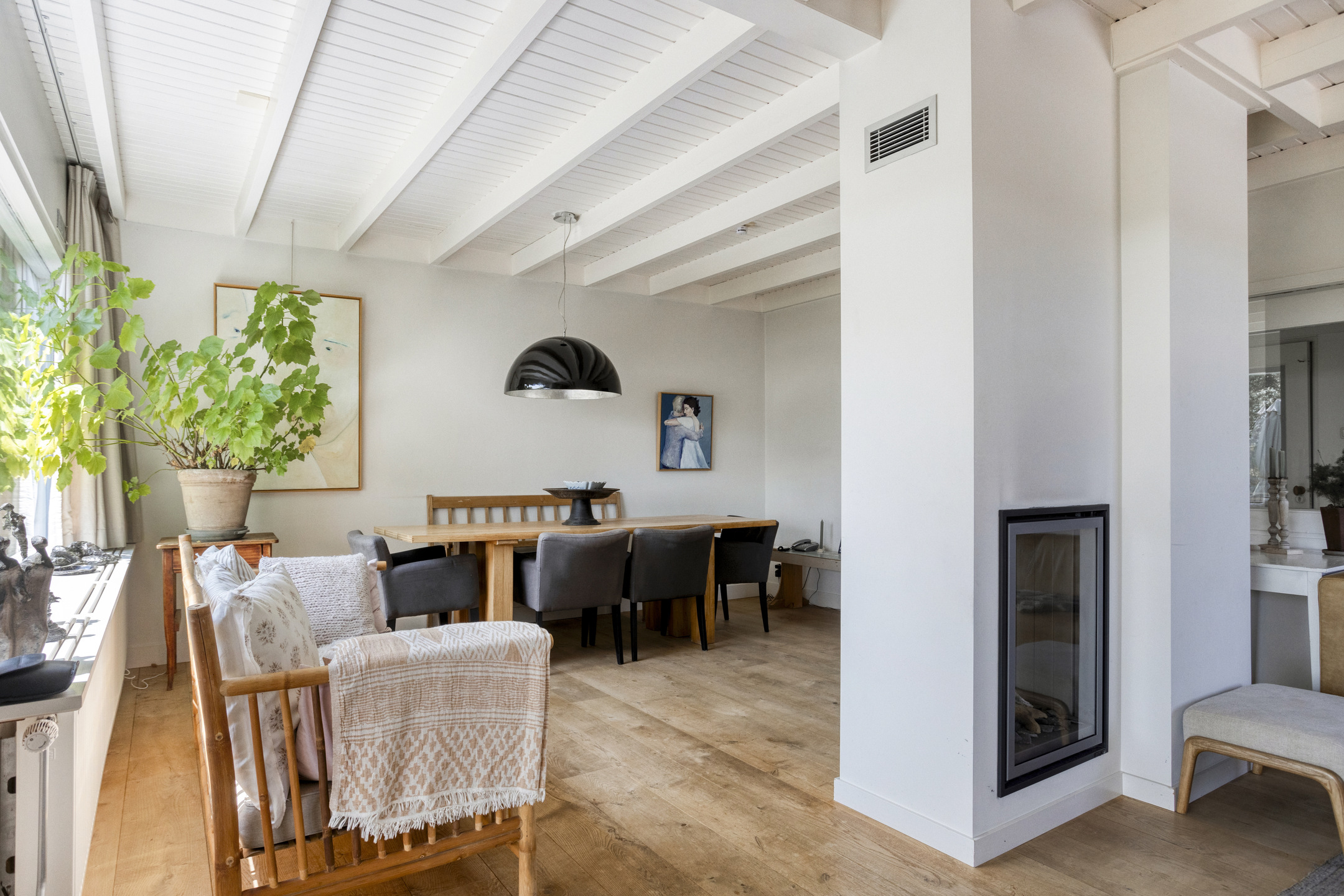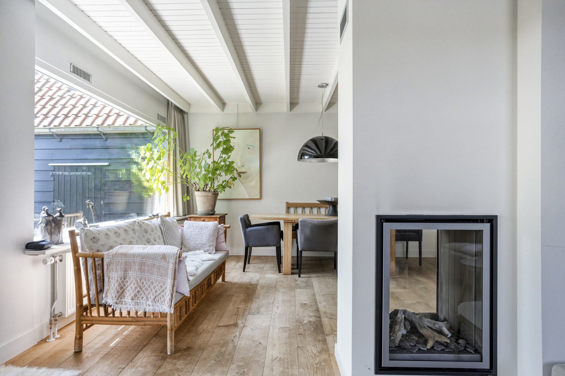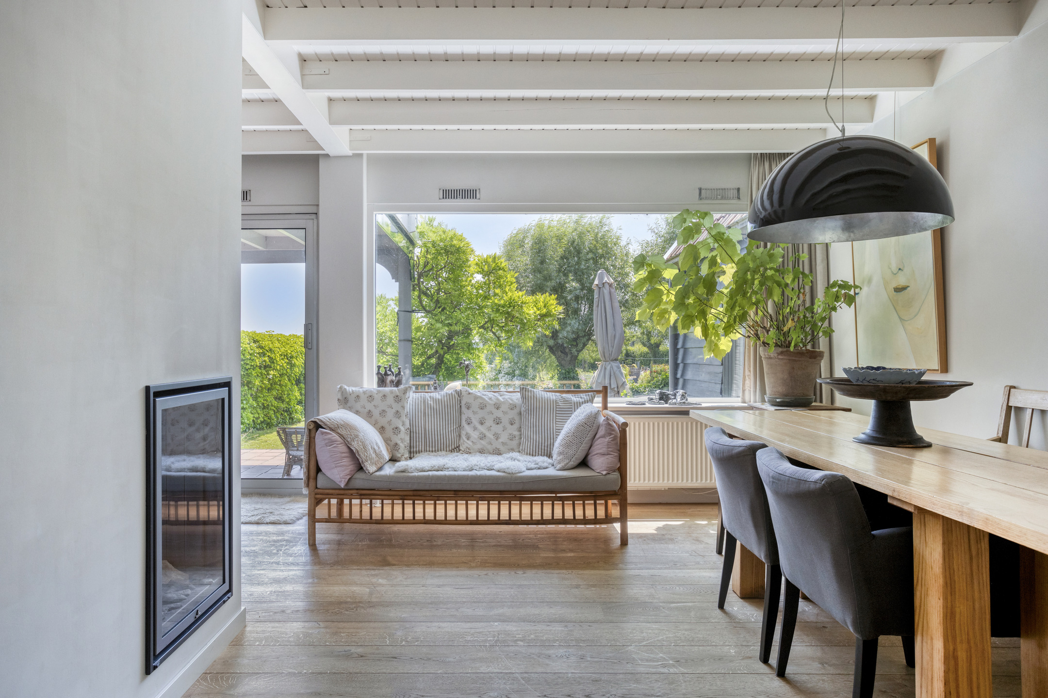 This semi-detached house Driehuizen brings together authentic architectural character and forward-thinking energy efficiency in a rare position overlooking the vast Eilandspolder reserve. The home, with 188 m² of interior space, is set across a charming 1957 front house and a substantial rear extension, renovated to an exacting standard in 2004. Red Cedar and Meranti cladding, hand-crafted oak floors, and classic shutters speak to an understated palette of materials bathed in generous natural light.