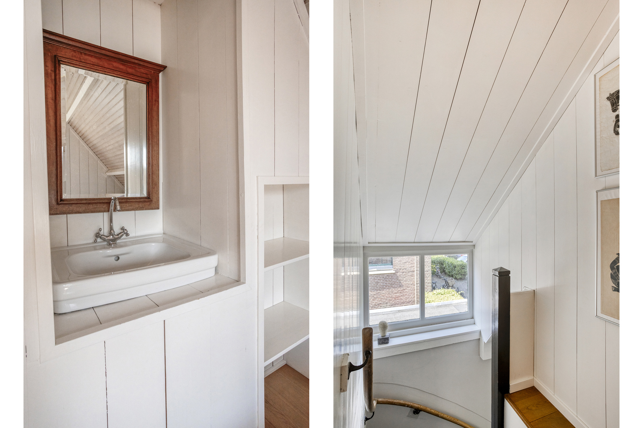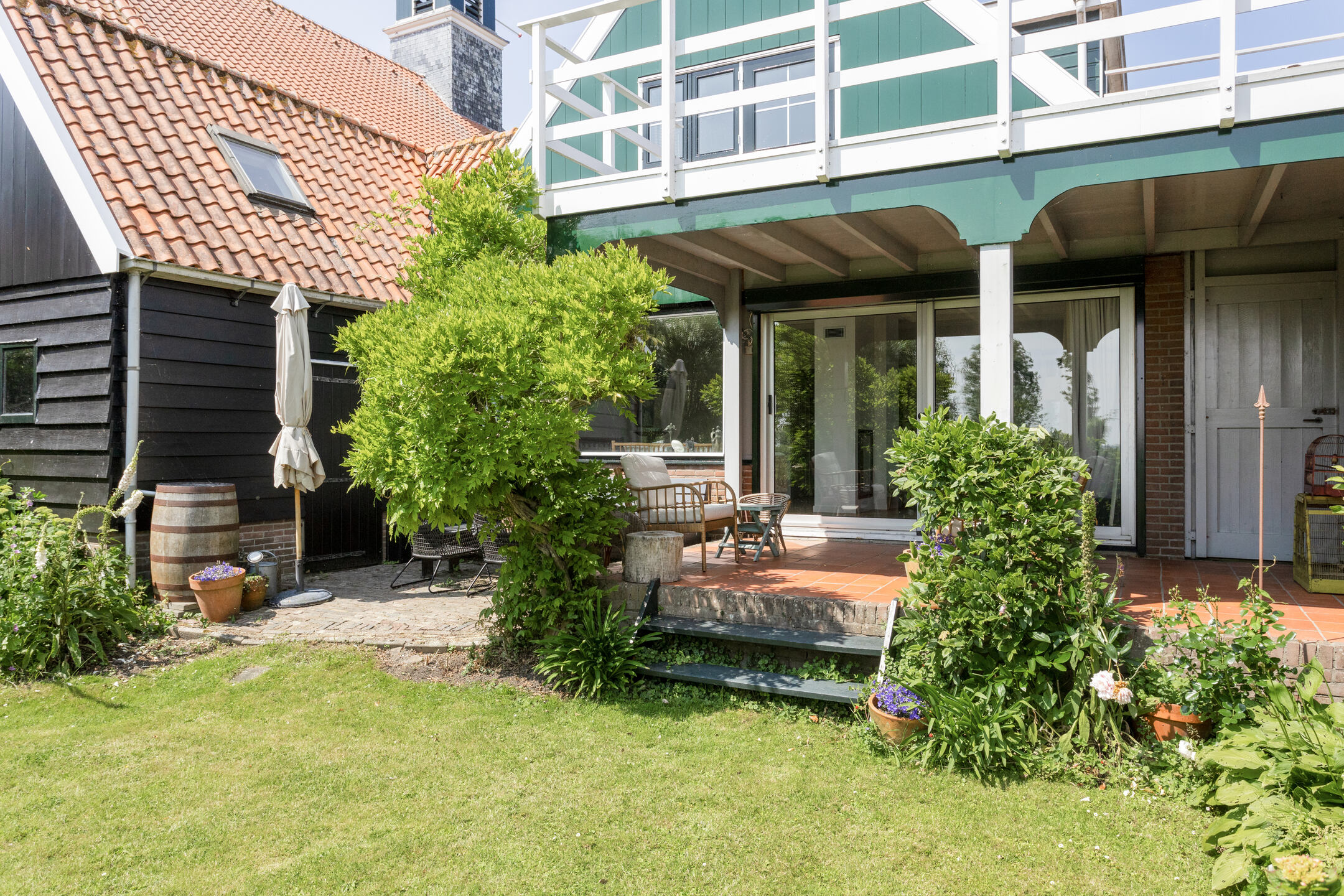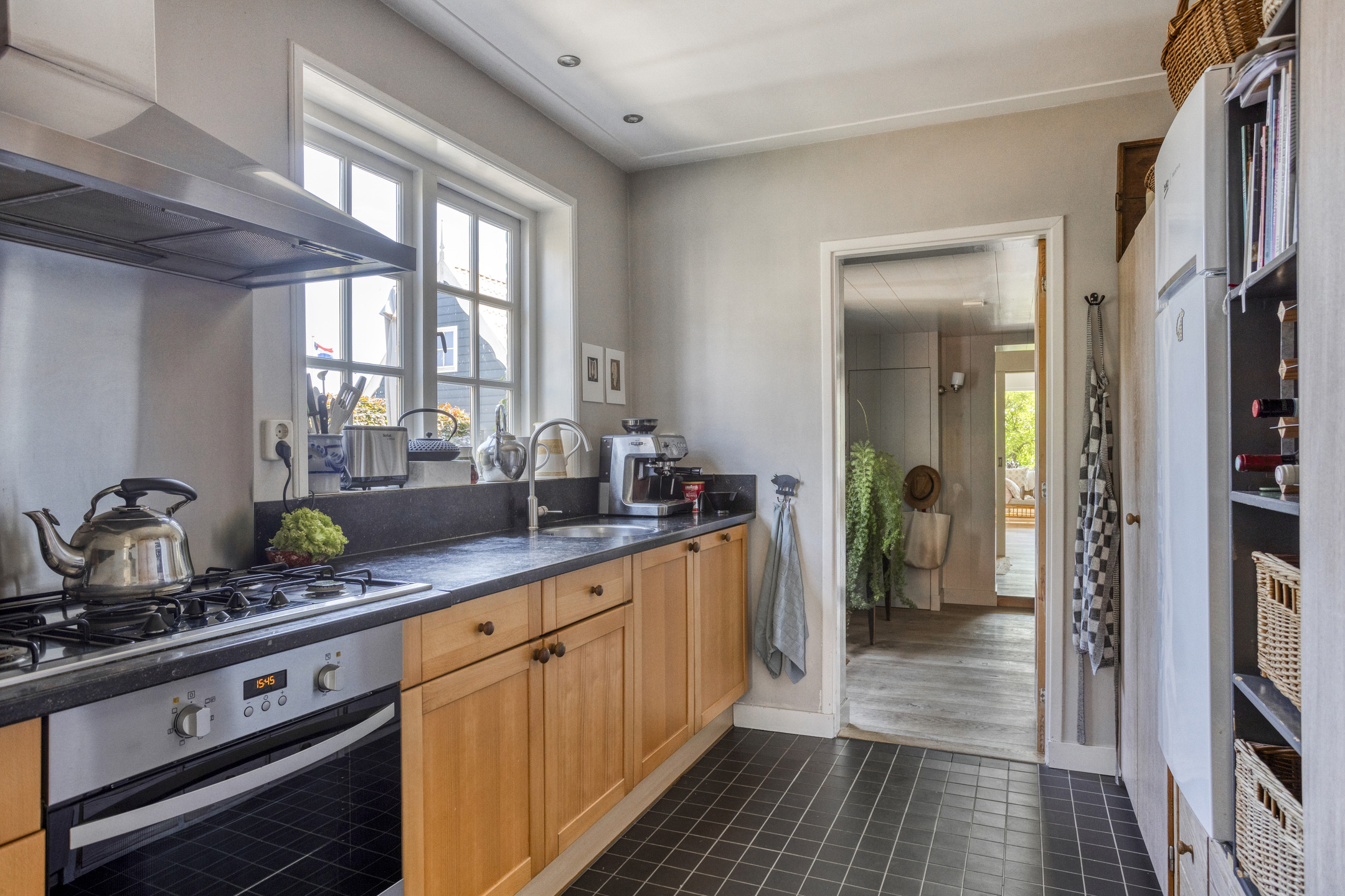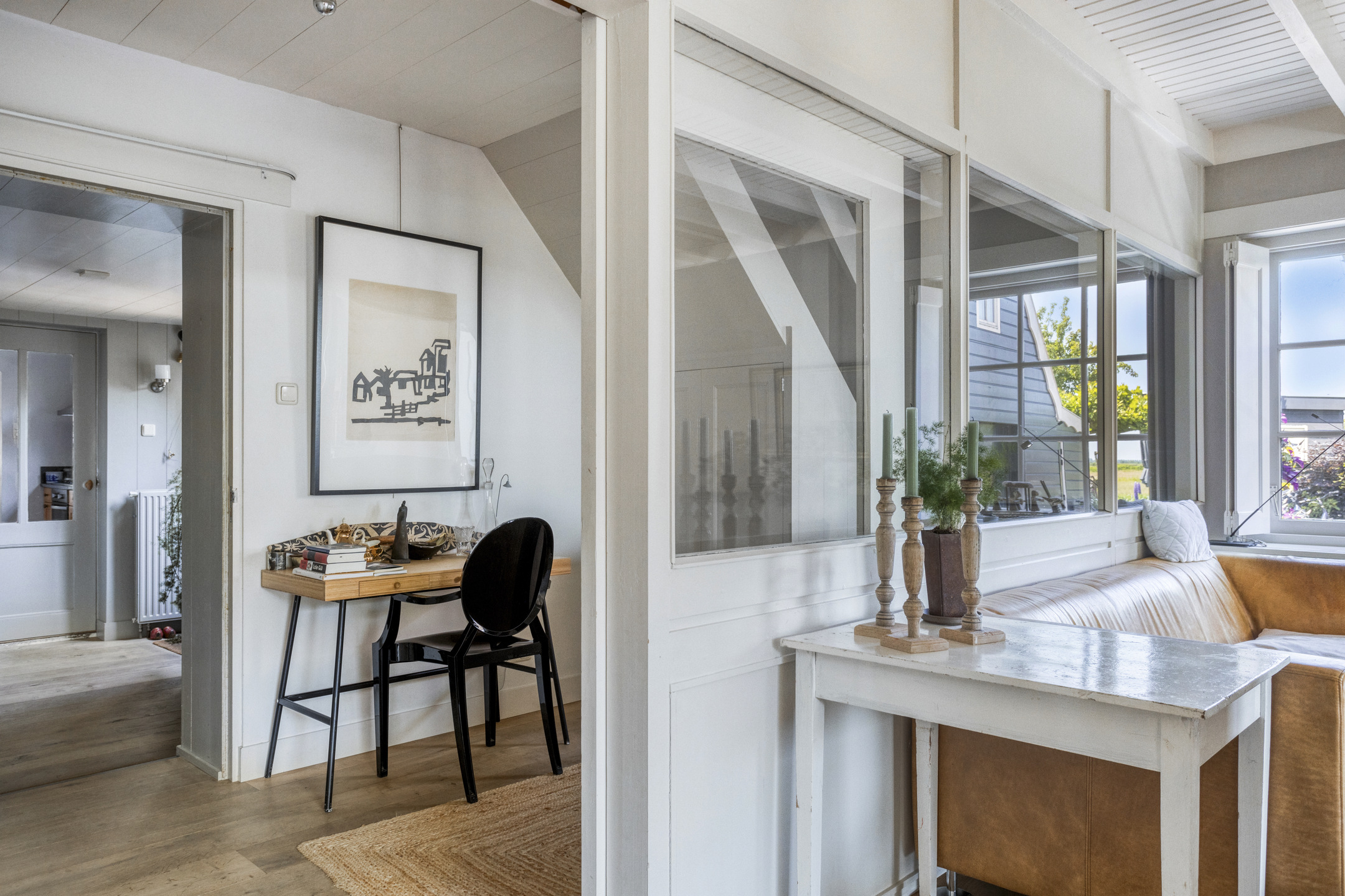 This semi-detached house Driehuizen brings together authentic architectural character and forward-thinking energy efficiency in a rare position overlooking the vast Eilandspolder reserve. The home, with 188 m² of interior space, is set across a charming 1957 front house and a substantial rear extension, renovated to an exacting standard in 2004. Red Cedar and Meranti cladding, hand-crafted oak floors, and classic shutters speak to an understated palette of materials bathed in generous natural light.