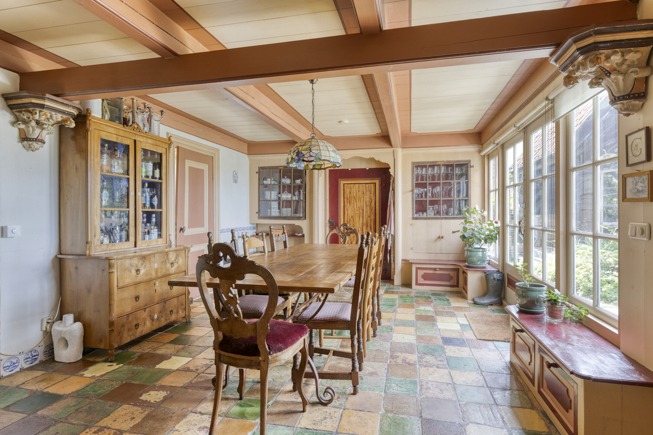 The waterfront garden is without doubt one of the highlights of this home. Located directly on open water, it offers complete privacy and uninterrupted views over the polder landscape. A covered outdoor seating area with a wood-burning stove – featuring original oven doors from the former bakery once located on this site – adds a unique and characterful touch.