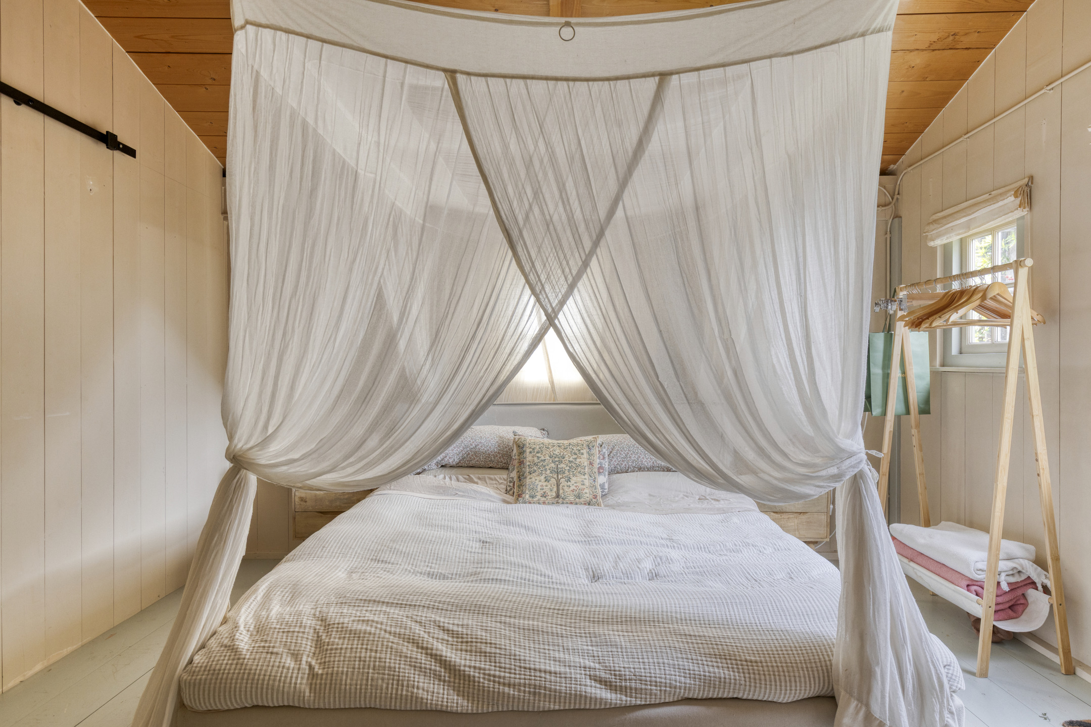 What truly sets this property apart is the experience. From your own garden you step onto your private jetty and head straight out onto the water. Inside, the spacious living room features wooden floors, exposed beams and a characterful wood-burning stove. The generous open-plan kitchen forms the heart of the home: a place for cooking, dining and spending time together, with French doors opening onto the sunny waterfront garden.