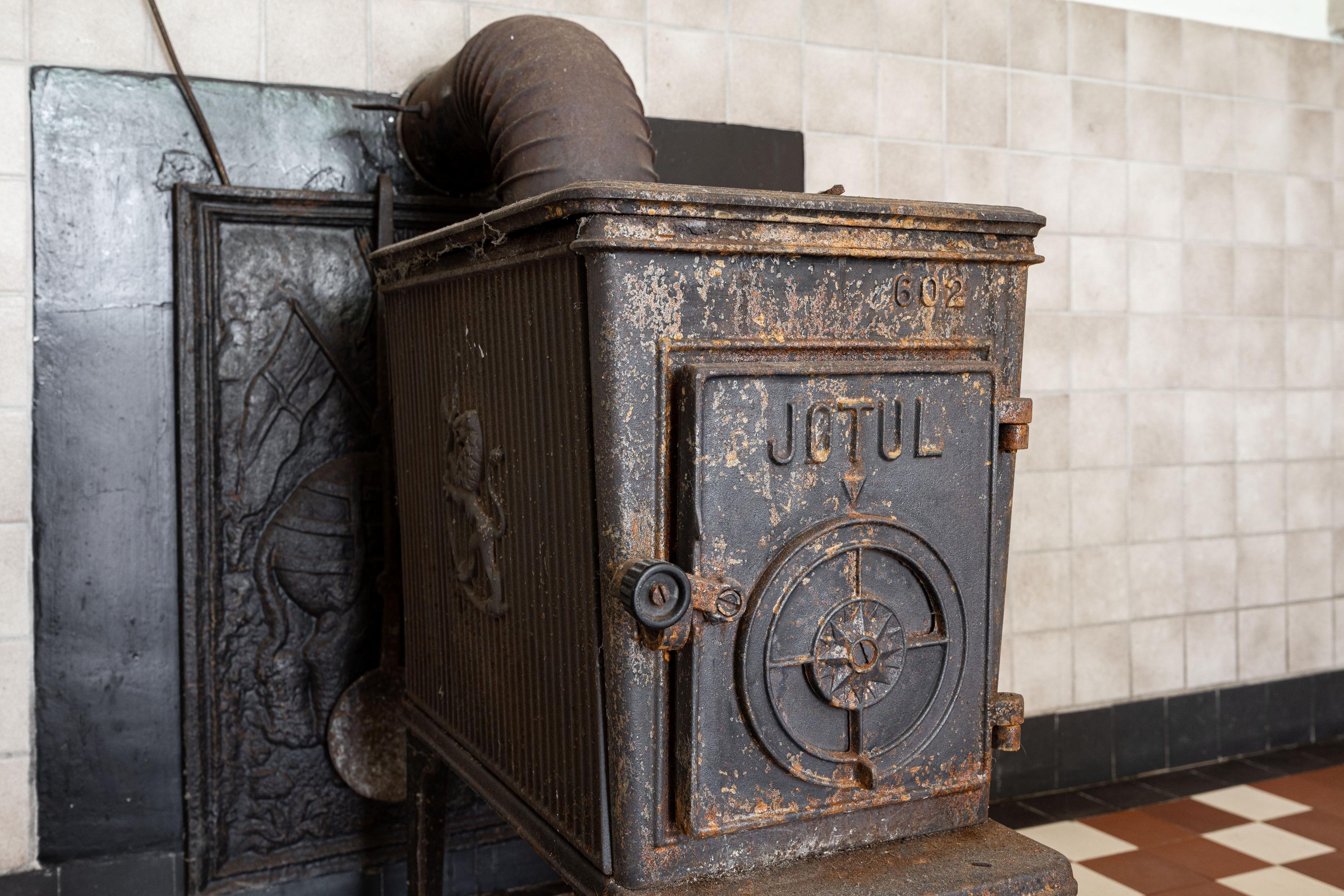 On the ground floor you will find an entry hall with stairs, a spacious kitchen with access to the cellar and a magnificent monumetal living room with an original fireplace, unique earthenware floor and high ceilings. There are also three rooms, one currently used as a temporary bathroom and one as an office. Between the two wings of the farmhouse, there is an additional shower, a storage room with washing machine and dryer connections and access to a cozy patio.