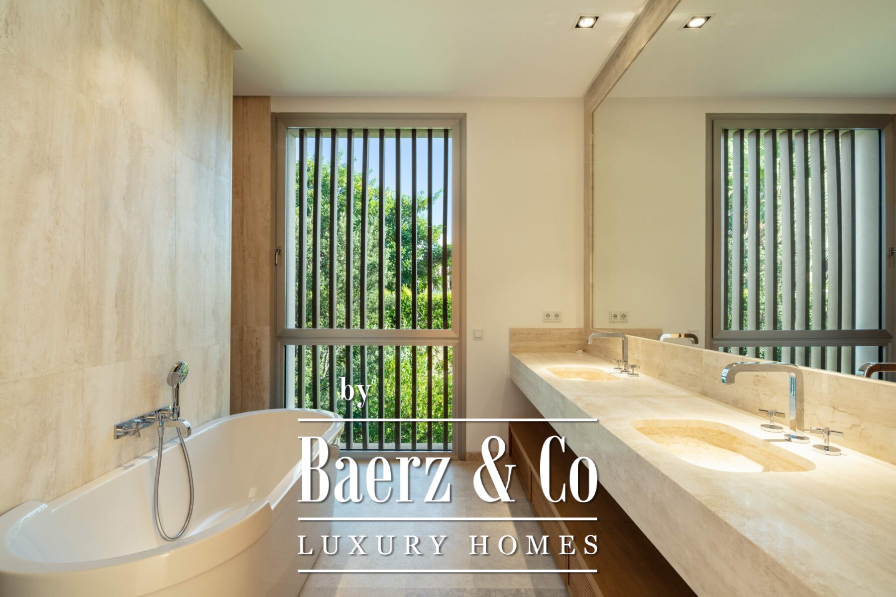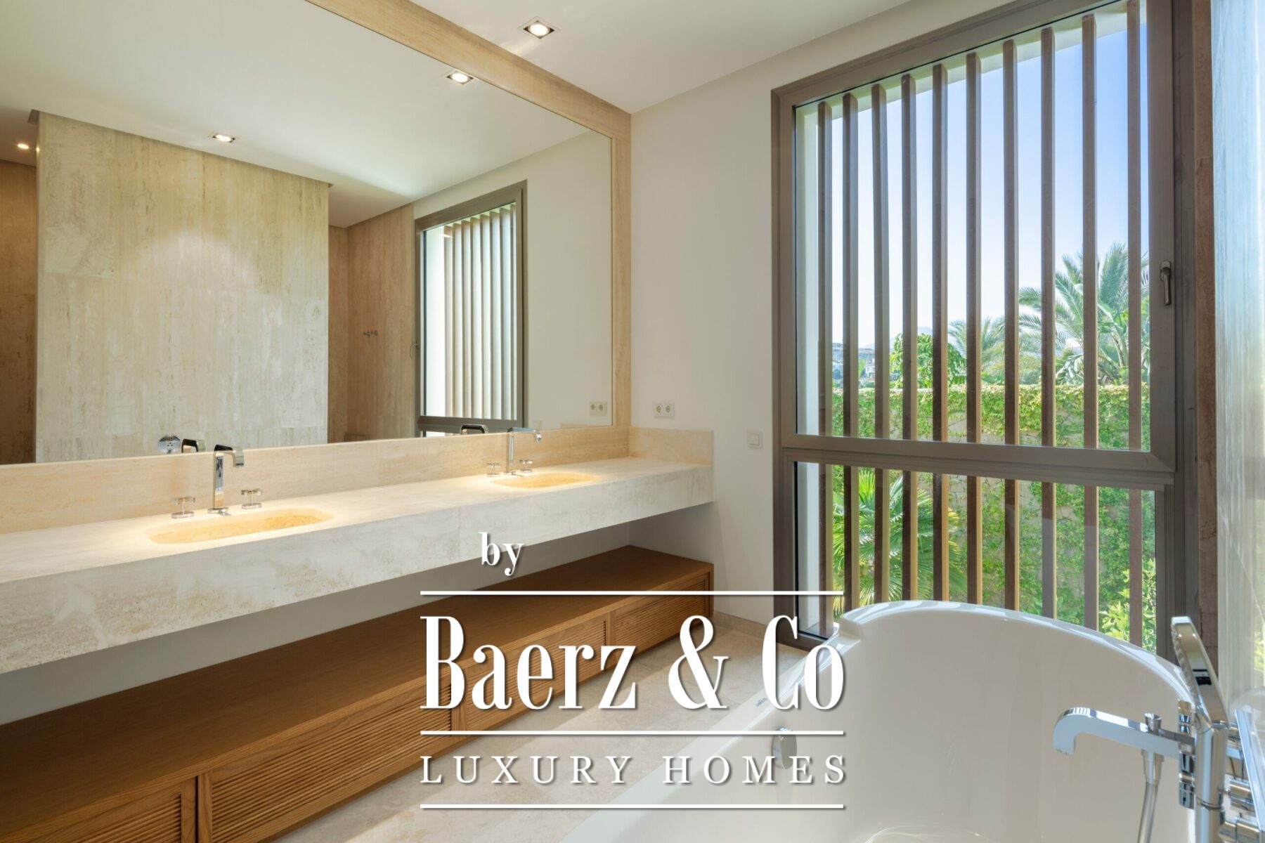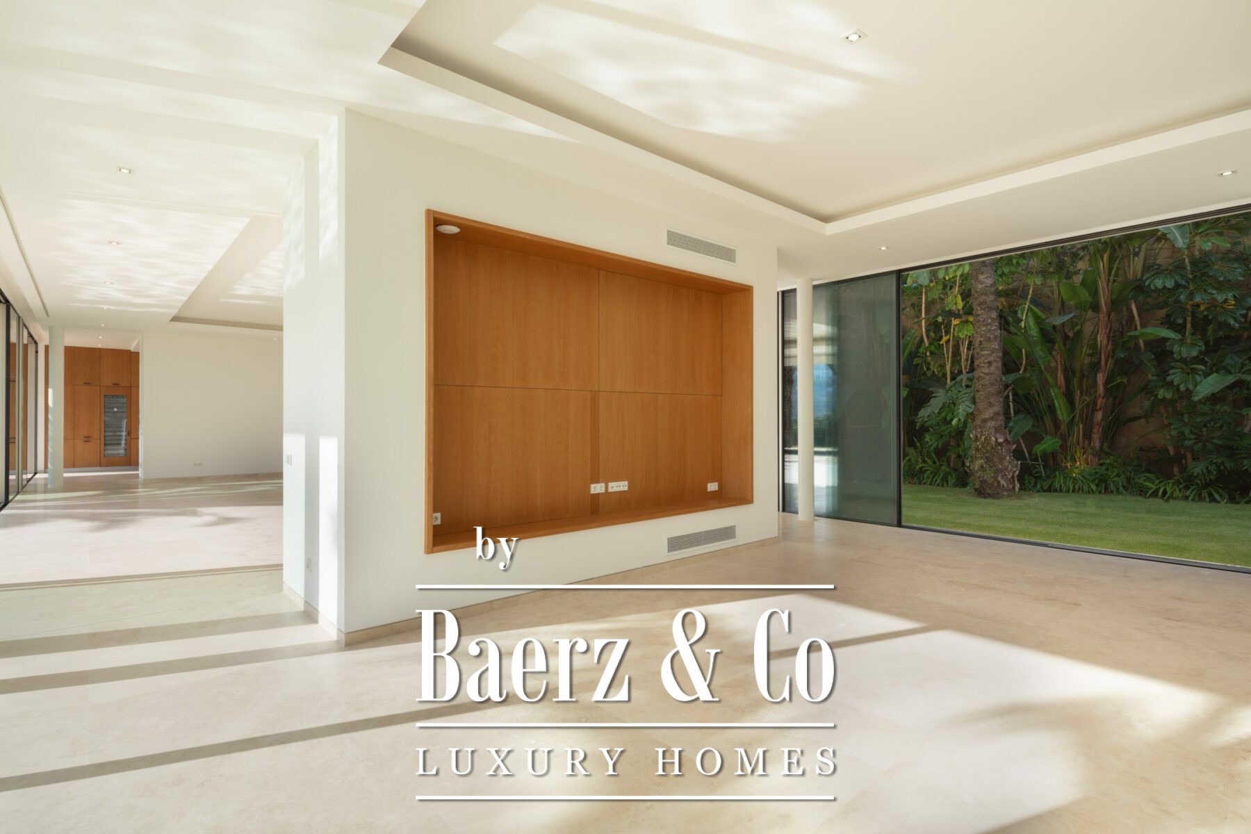 Outside, various terraces and al-fresco spaces support an understated outdoor lifestyle, anchored by a private pool. The secure gated community positions you along the golf course, with proximity to amenities, the shoreline, and mountain landscapes. This property quietly defines the benchmark for a luxury villa for sale in Estepona.