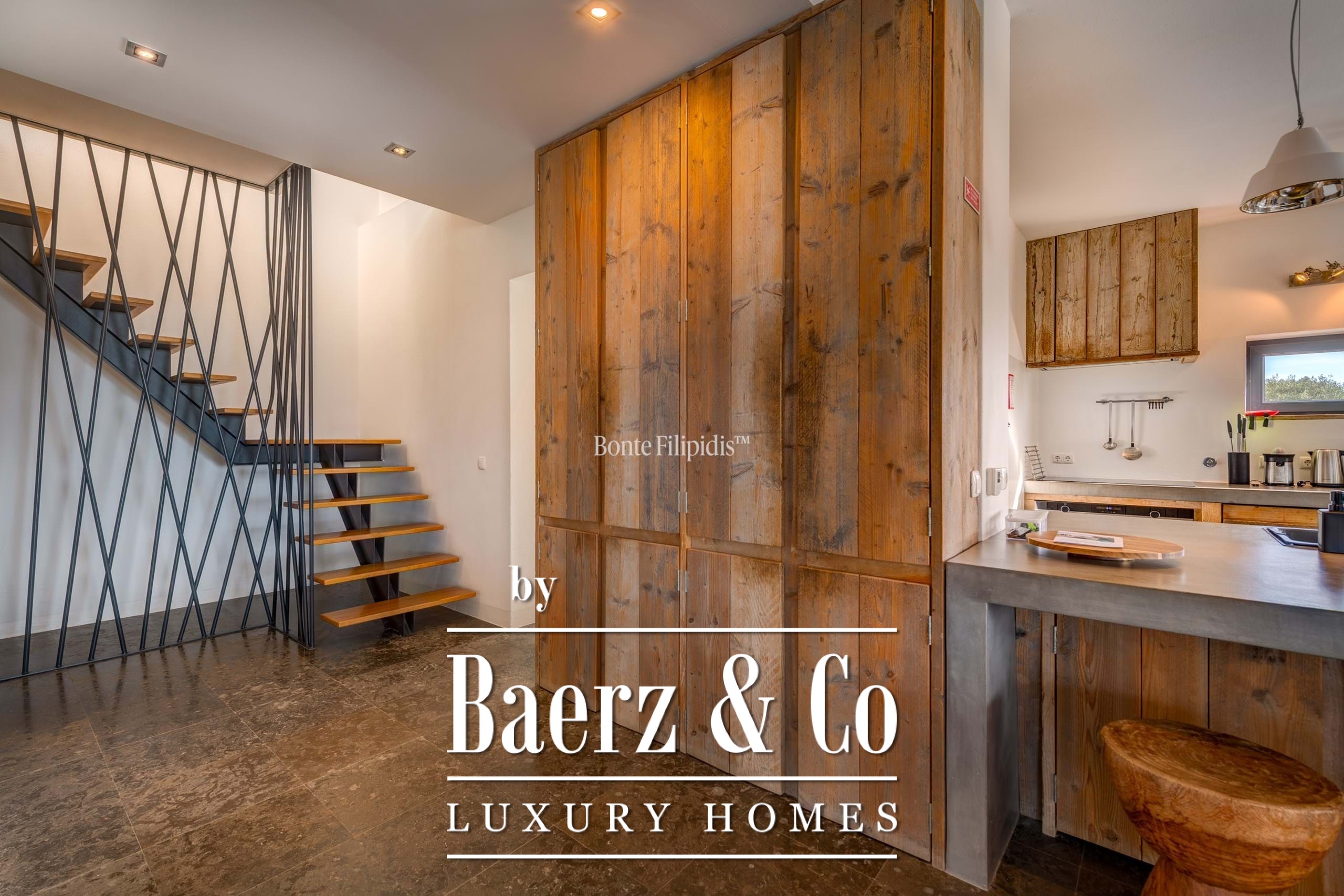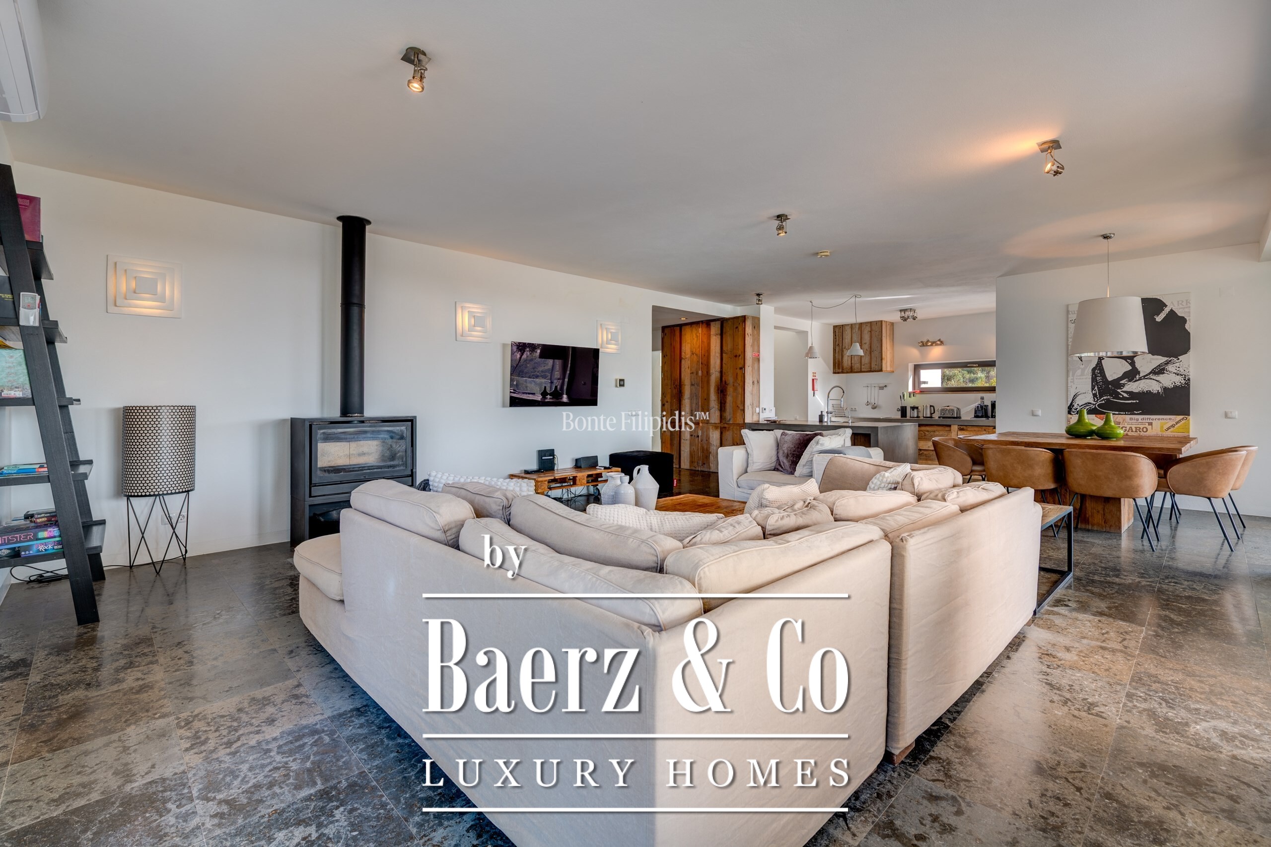 Set on a 2,440 m² plot, mature olive groves and vineyards frame landscaped gardens, while a private pool and jacuzzi for six evoke privacy and ease. Energy efficiency defines the experience, with a 48-panel photovoltaic system, underfloor heating, and a Salamander fireplace offering year-round comfort. Indoors and out, fully equipped kitchens anticipate both quiet mornings and convivial gatherings.