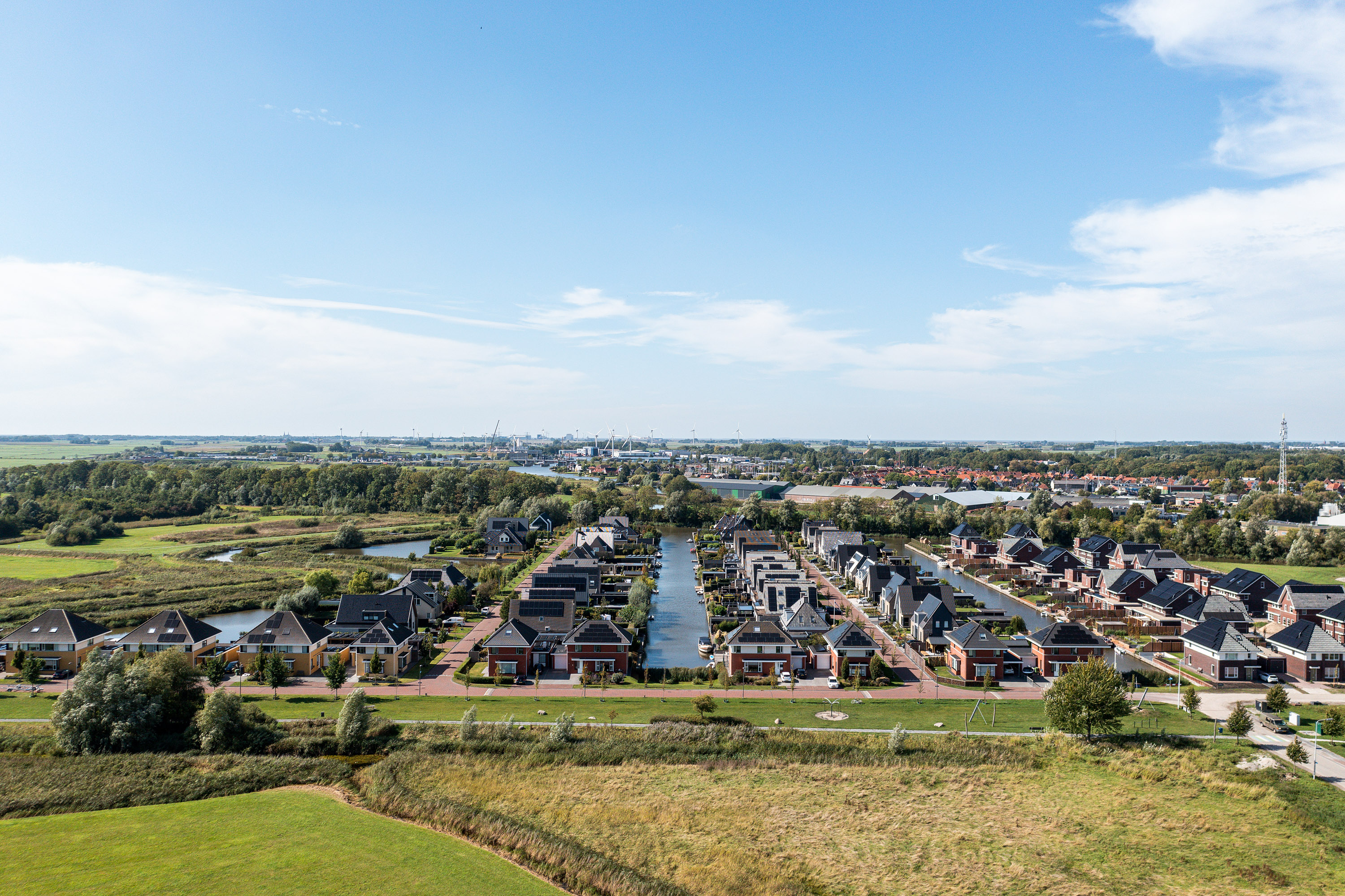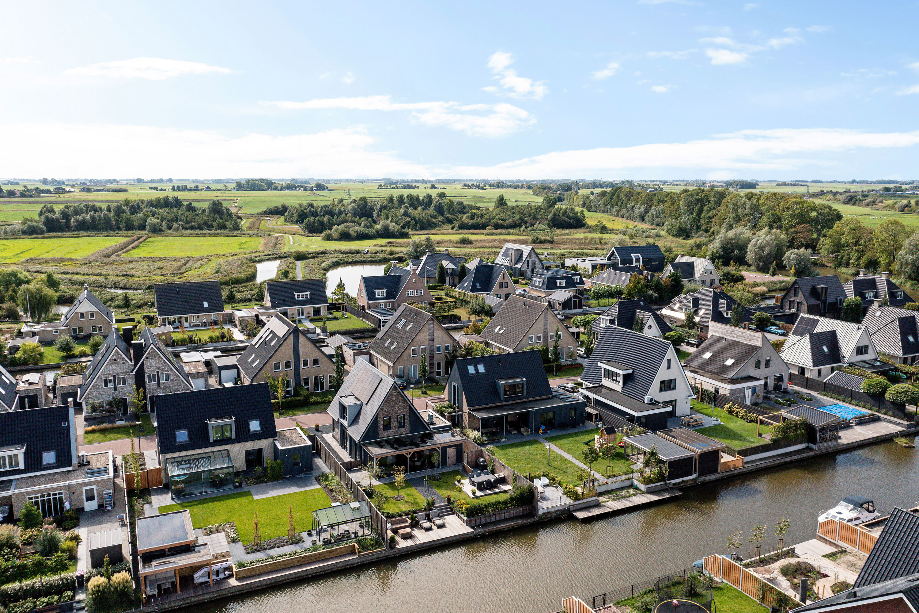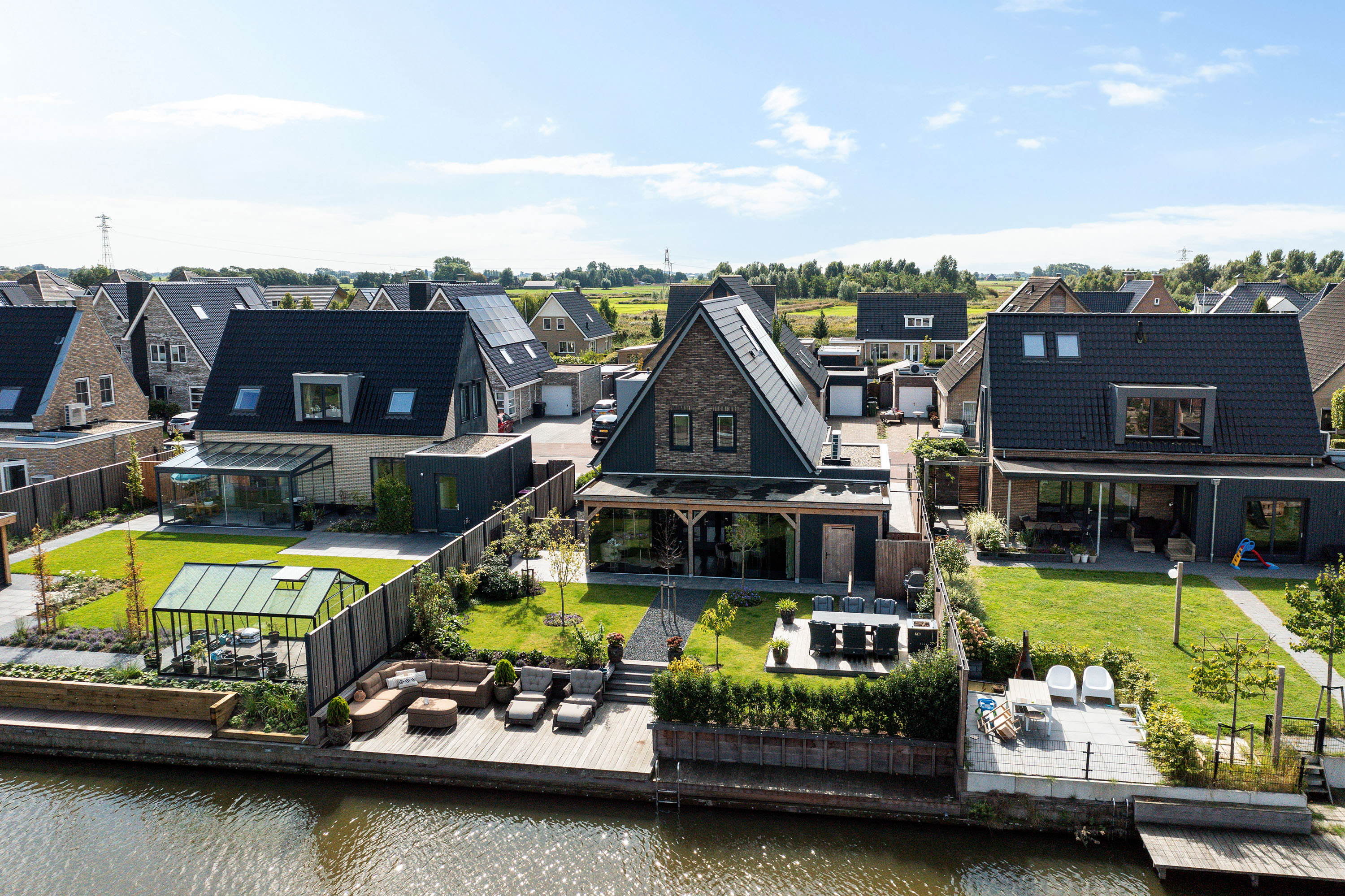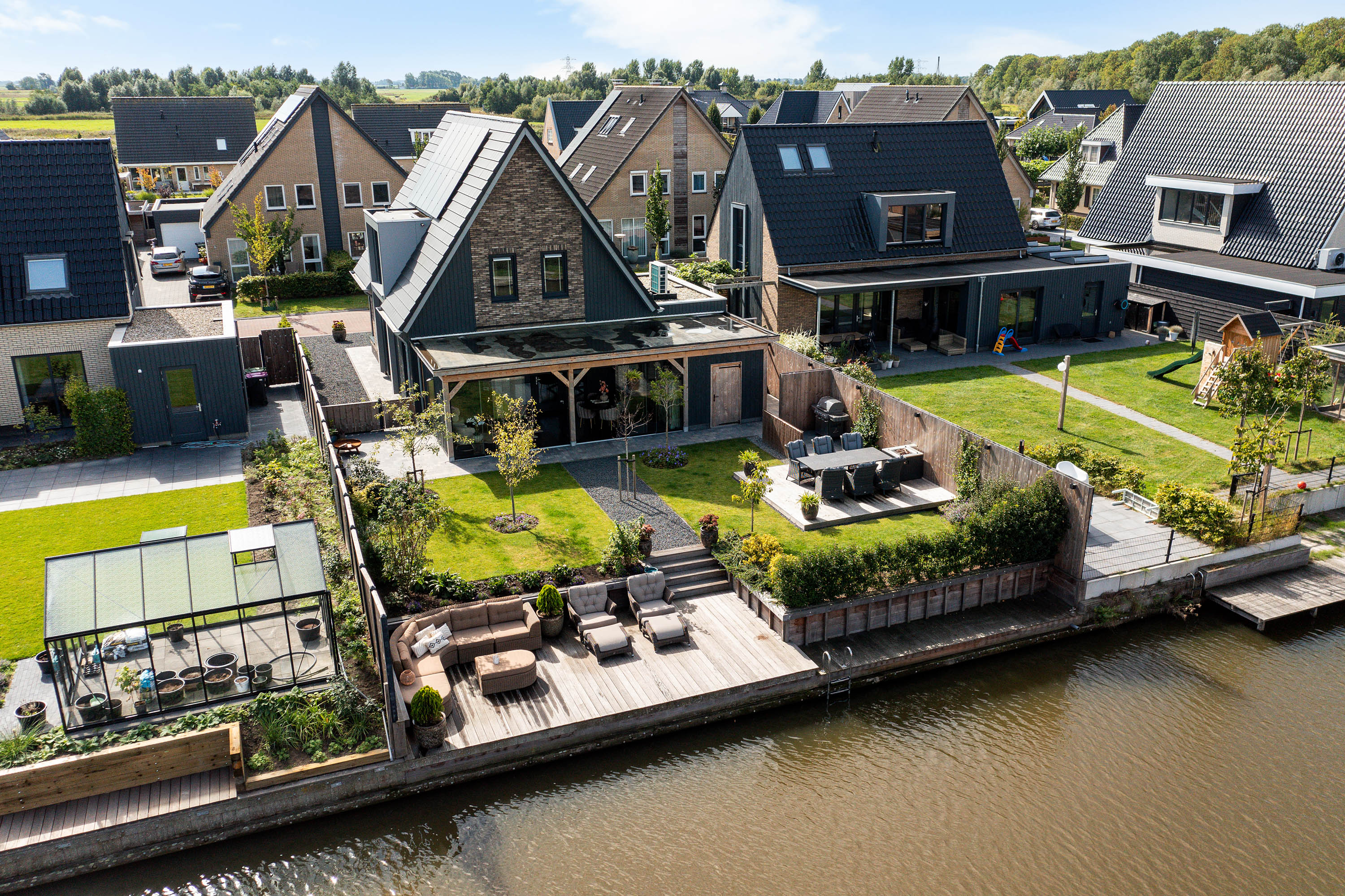 Villa Franeker is a striking example of contemporary waterfront living, set directly on open water in the refined new district of Franeker-Zuid. This villa harmonises architectural precision with energy neutrality, achieving label A++++ through a heat pump system and 24 solar panels. With 188 m² of living space across three levels, the property includes four bedrooms and one luxuriously finished bathroom, ensuring a sense of spacious discretion. A generous entrance hall leads to an open-concept living area, where sleek tilt-and-turn windows invite natural light across underfloor-heated floors. The bespoke designer kitchen features robust ceramic countertops and integrated top-tier appliances, while a garden room with a fully opening glass façade extends the living space into the professionally landscaped outdoors.