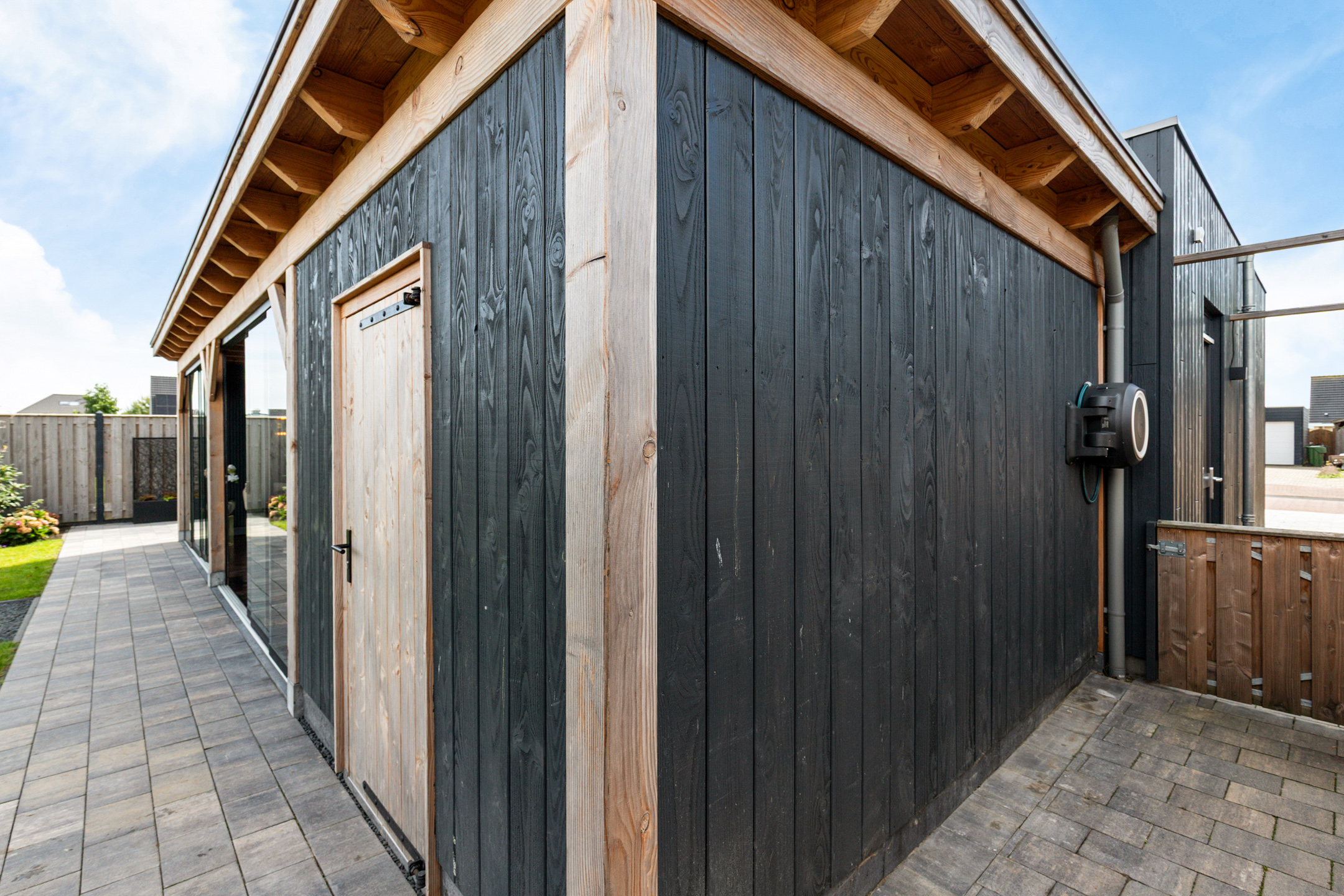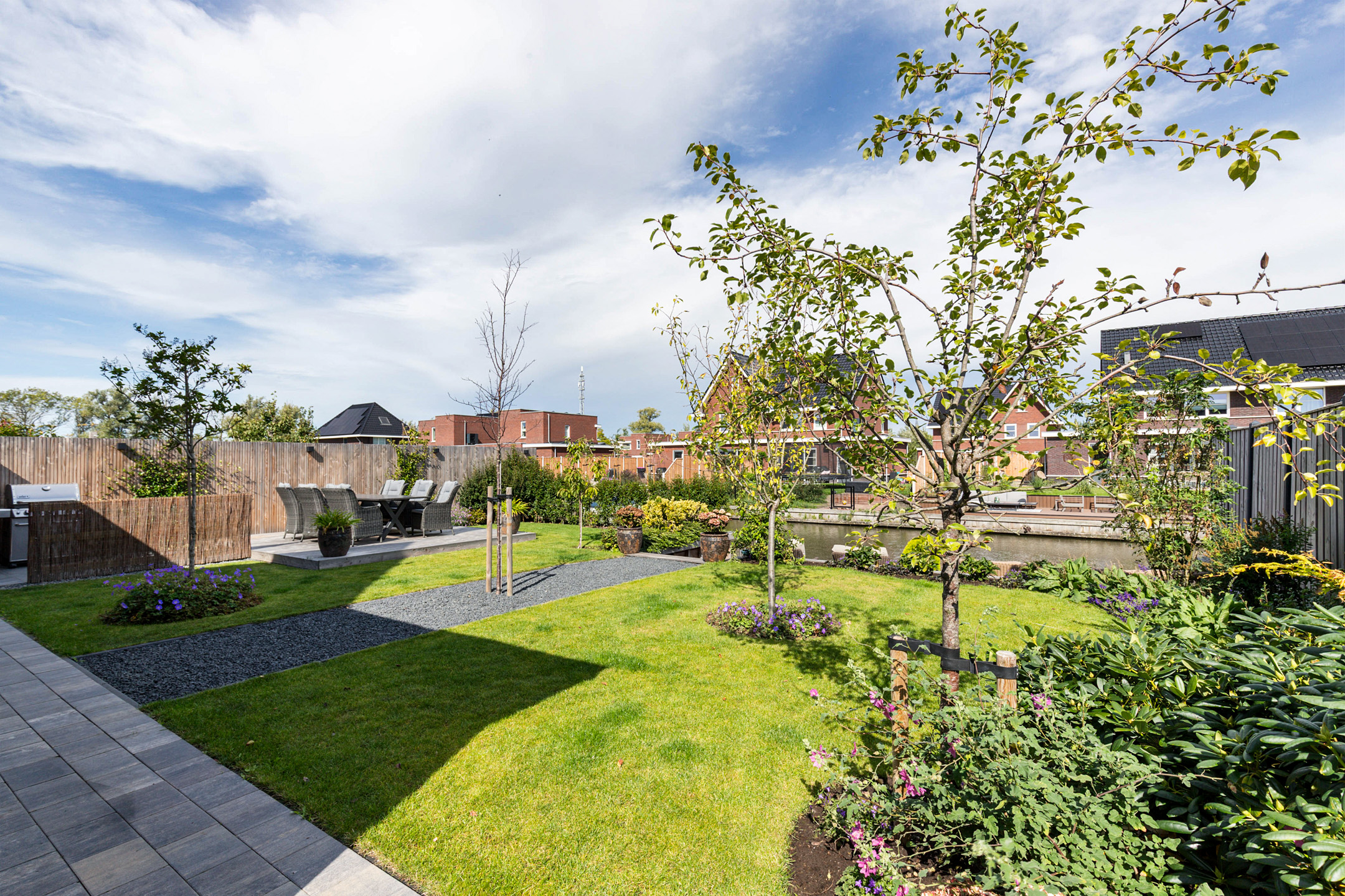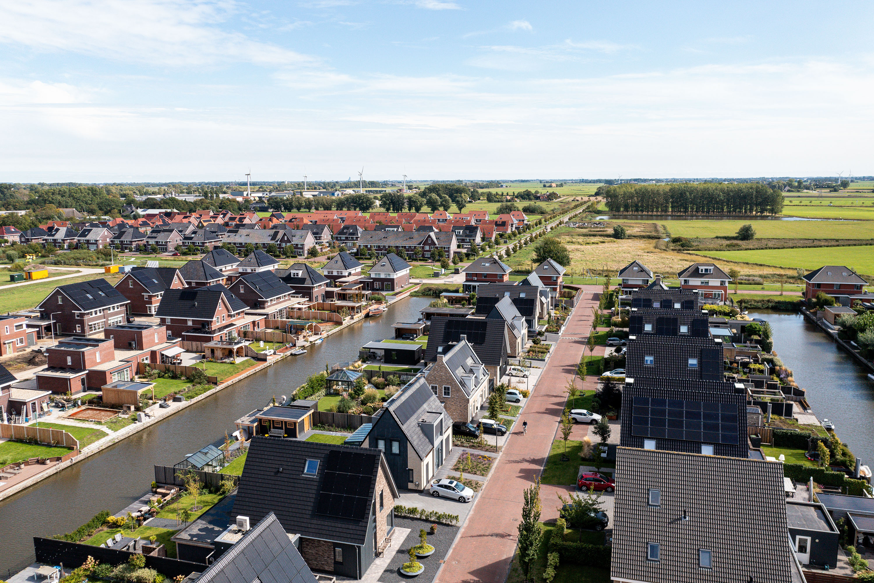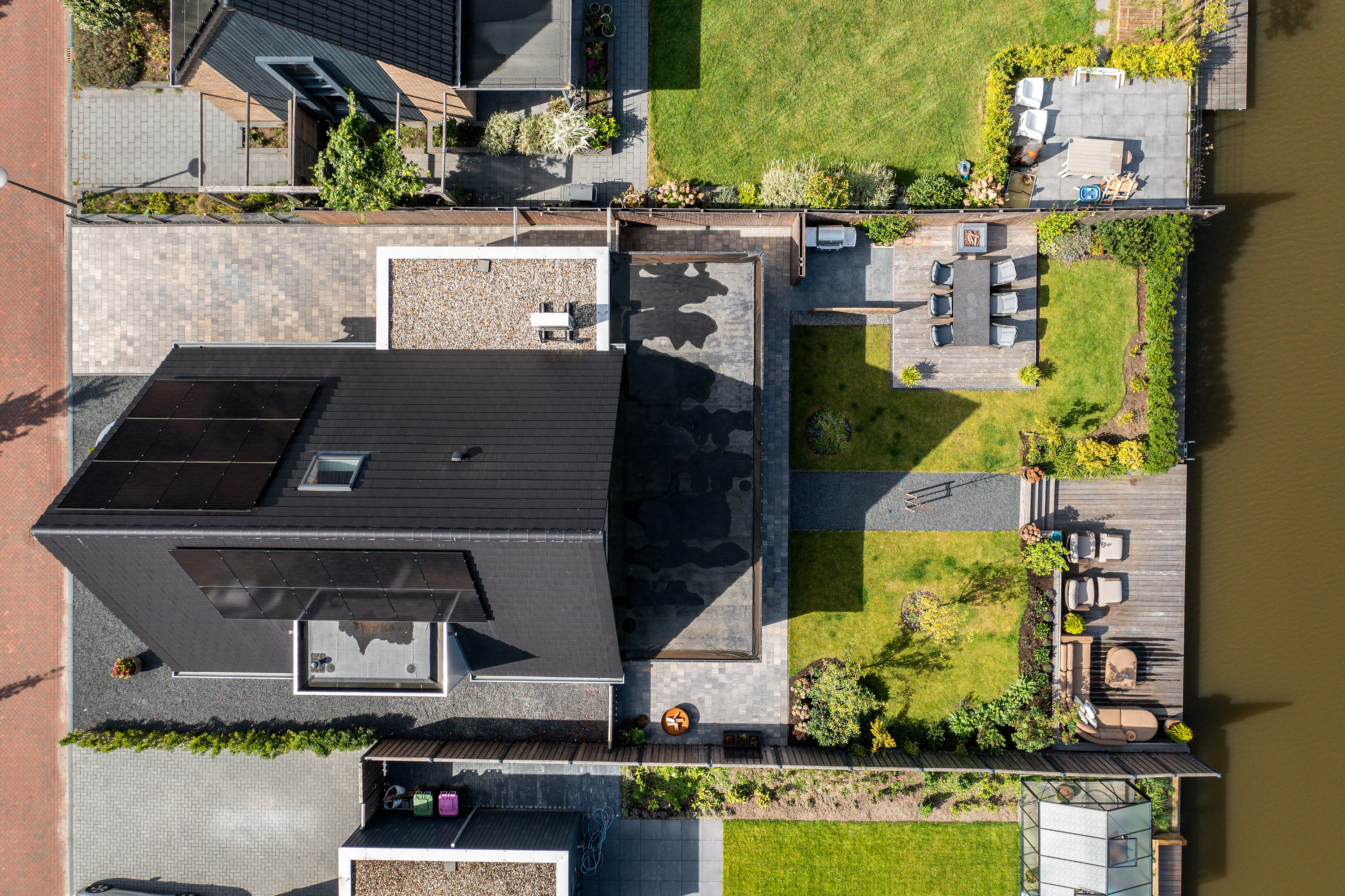Villa Franeker is a striking example of contemporary waterfront living, set directly on open water in the refined new district of Franeker-Zuid. This villa harmonises architectural precision with energy neutrality, achieving label A++++ through a heat pump system and 24 solar panels. With 188 m² of living space across three levels, the property includes four bedrooms and one luxuriously finished bathroom, ensuring a sense of spacious discretion. A generous entrance hall leads to an open-concept living area, where sleek tilt-and-turn windows invite natural light across underfloor-heated floors. The bespoke designer kitchen features robust ceramic countertops and integrated top-tier appliances, while a garden room with a fully opening glass façade extends the living space into the professionally landscaped outdoors.