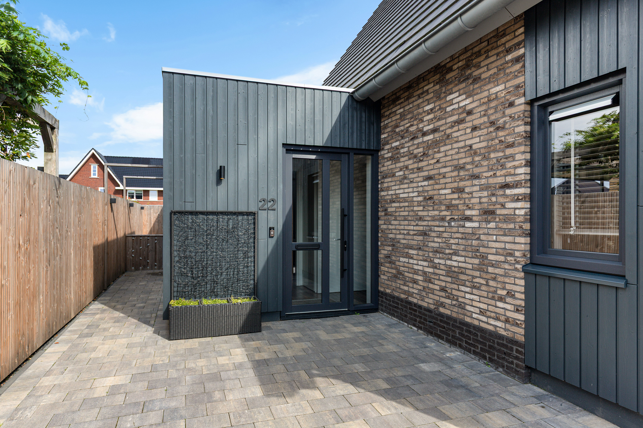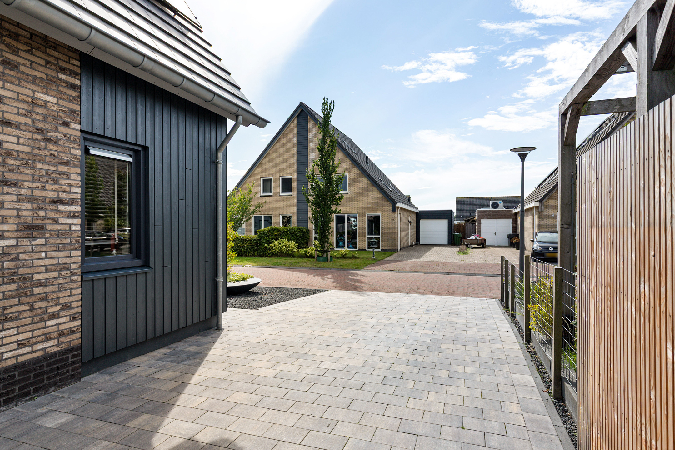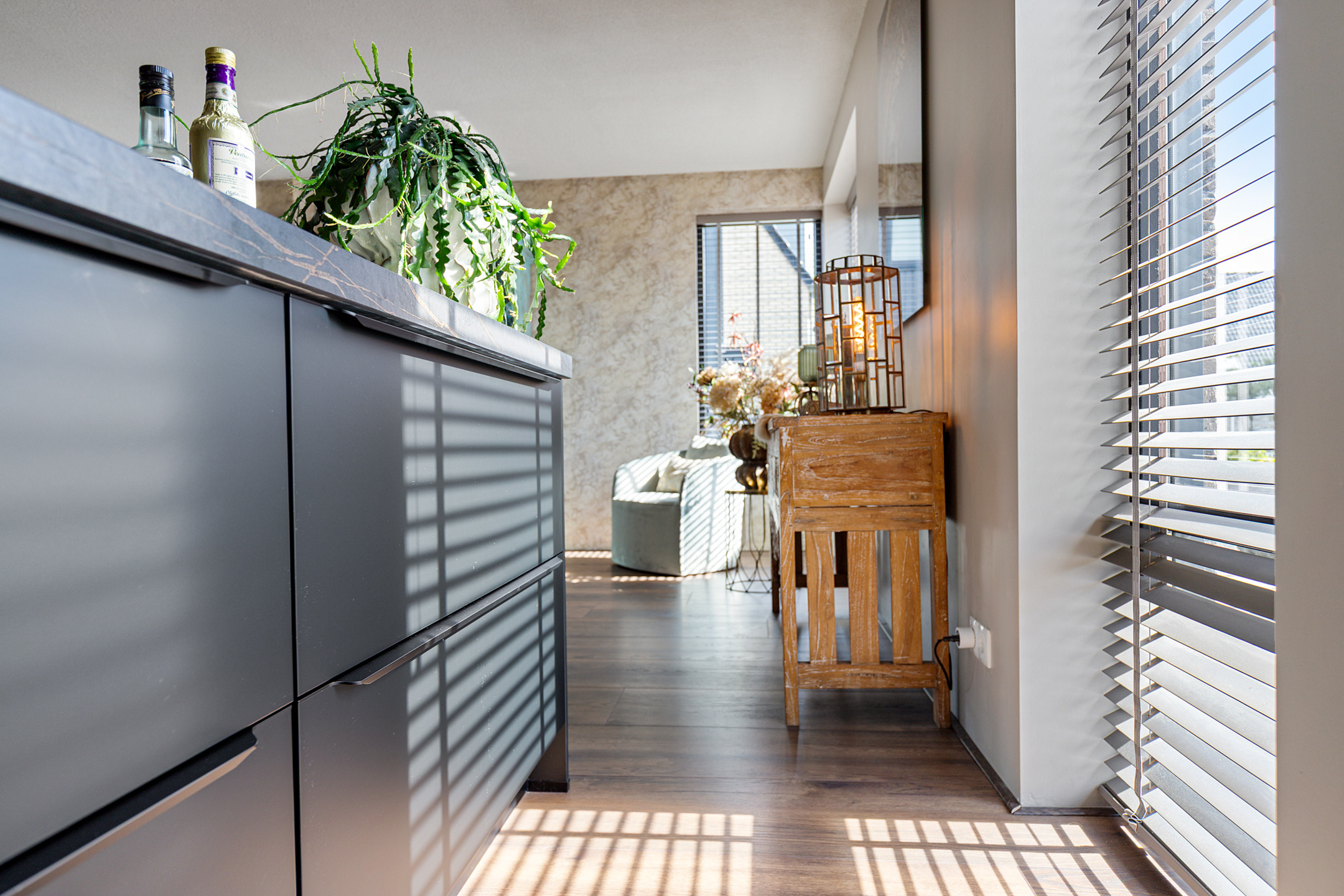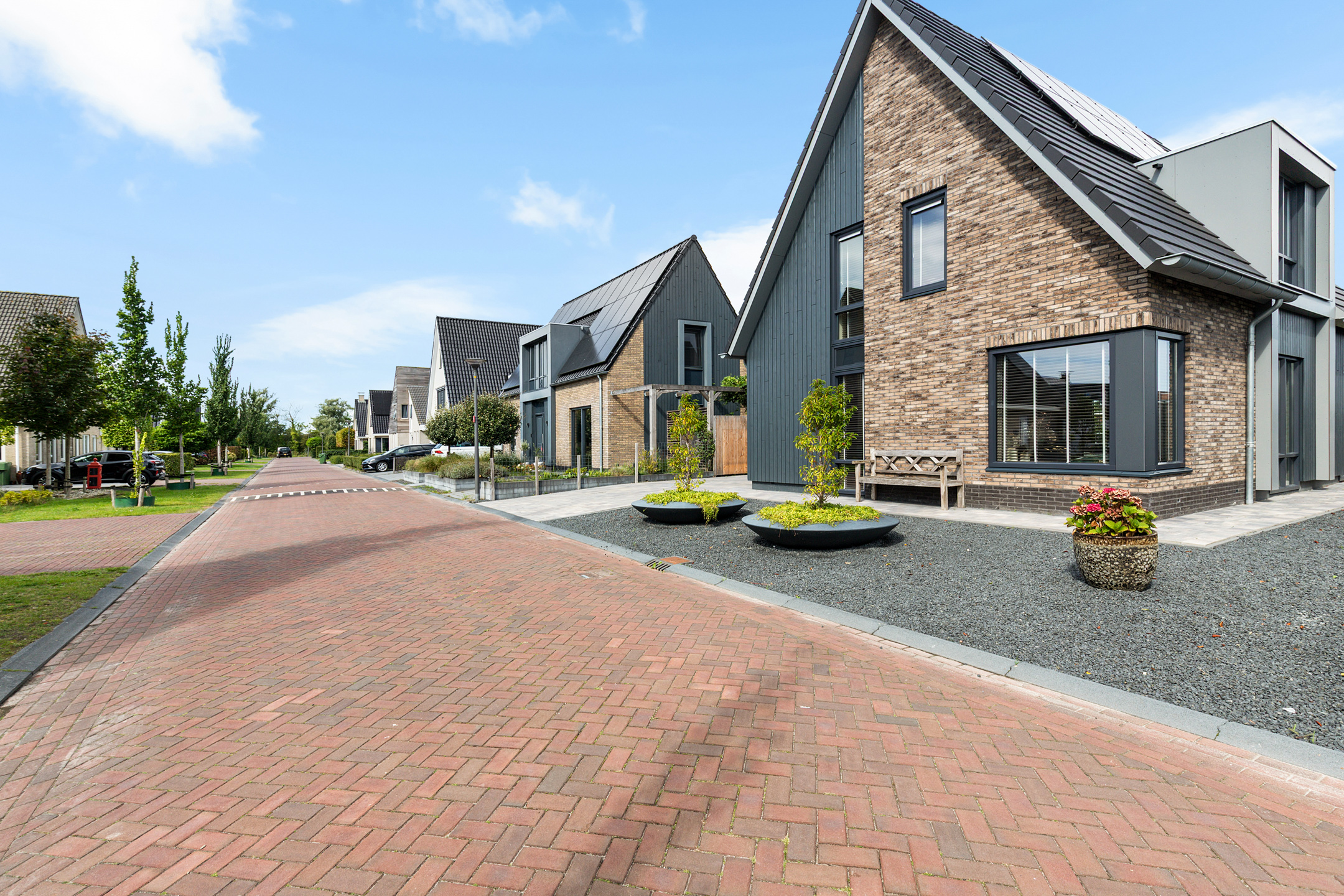 Villa Franeker is a striking example of contemporary waterfront living, set directly on open water in the refined new district of Franeker-Zuid. This villa harmonises architectural precision with energy neutrality, achieving label A++++ through a heat pump system and 24 solar panels. With 188 m² of living space across three levels, the property includes four bedrooms and one luxuriously finished bathroom, ensuring a sense of spacious discretion. A generous entrance hall leads to an open-concept living area, where sleek tilt-and-turn windows invite natural light across underfloor-heated floors. The bespoke designer kitchen features robust ceramic countertops and integrated top-tier appliances, while a garden room with a fully opening glass façade extends the living space into the professionally landscaped outdoors.