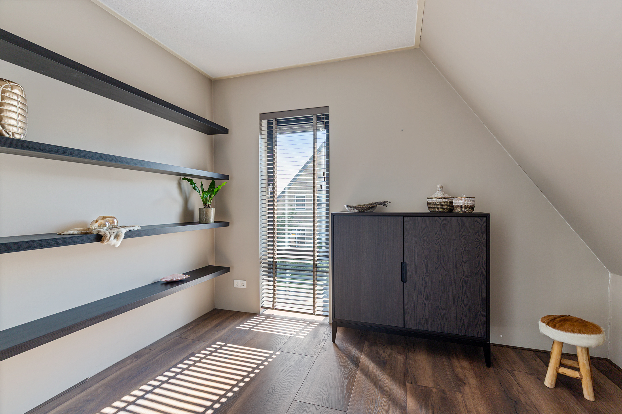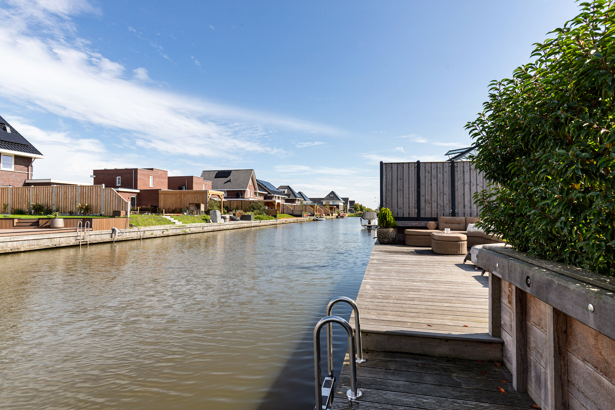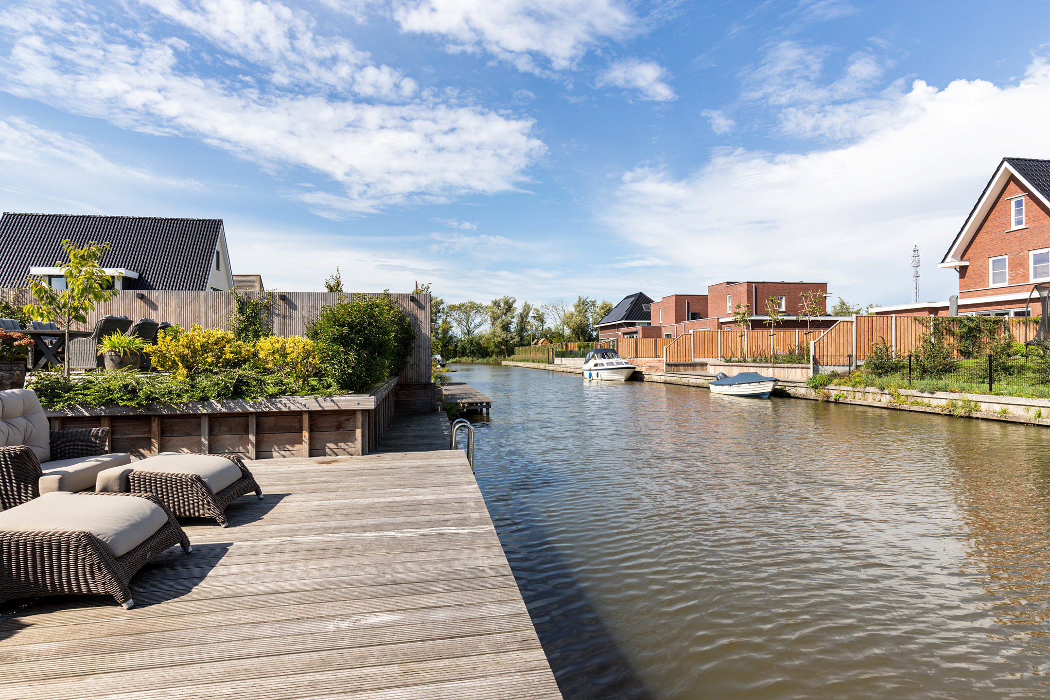 The master suite offers a walk-in dressing room, complemented by boutique-hotel detailing in the bathroom. An expansive second floor, illuminated by a large Velux skylight, offers opportunity for additional bedrooms or a private study. The villa’s 600 m² plot is shaped by mature plantings, inviting terraces, and a 15-metre hardwood jetty, providing direct access to the open water. Amenities such as fibre optic internet, a double car driveway, and secure storage merge practicality with elegance. The setting combines privacy and tranquillity, amidst waterways, green space, and walking routes, all within effortless reach of Franeker’s historic centre, railway station, and the cultural richness of the Frisian Eleven Cities. This luxury villa for sale in Franeker offers a rare combination of modern comfort, architectural integrity, and water-connected lifestyle.