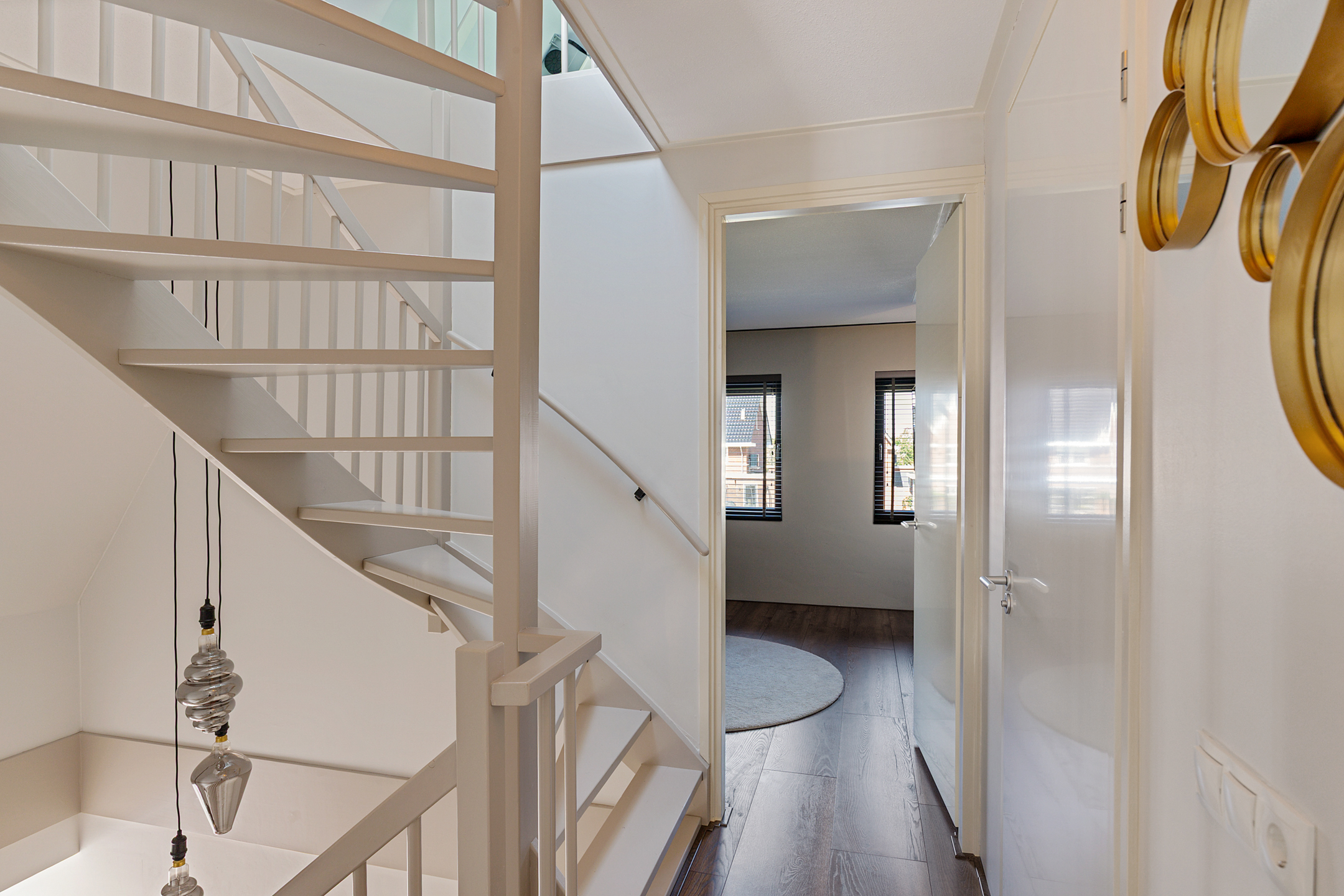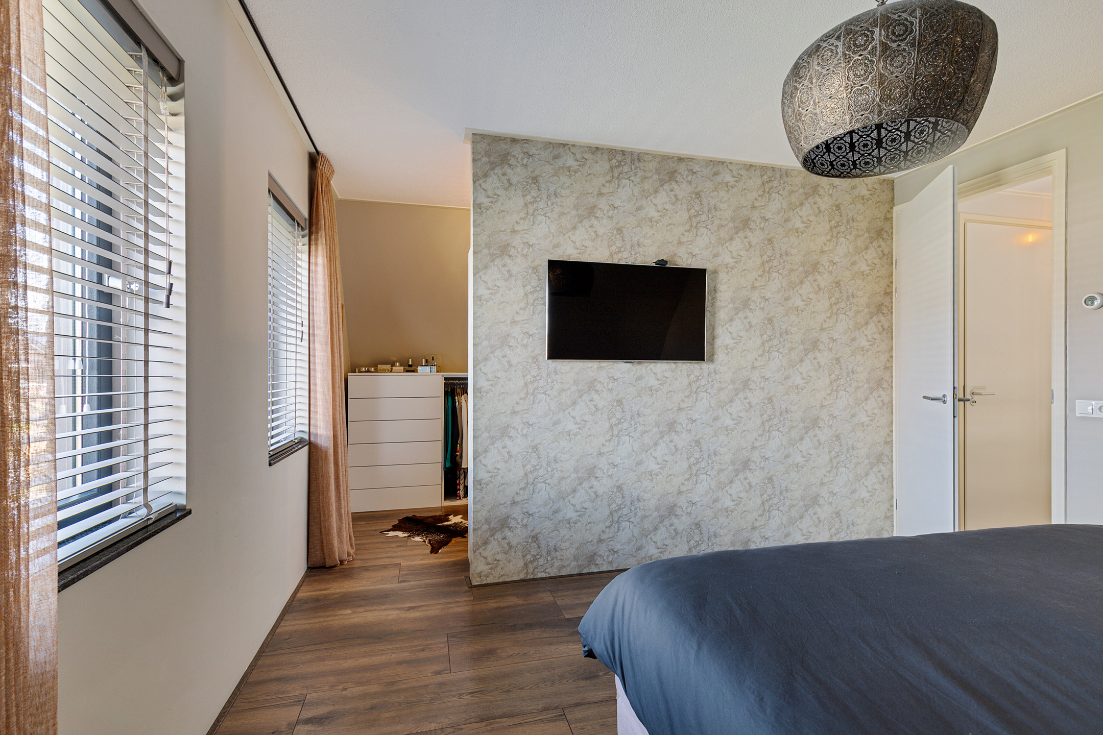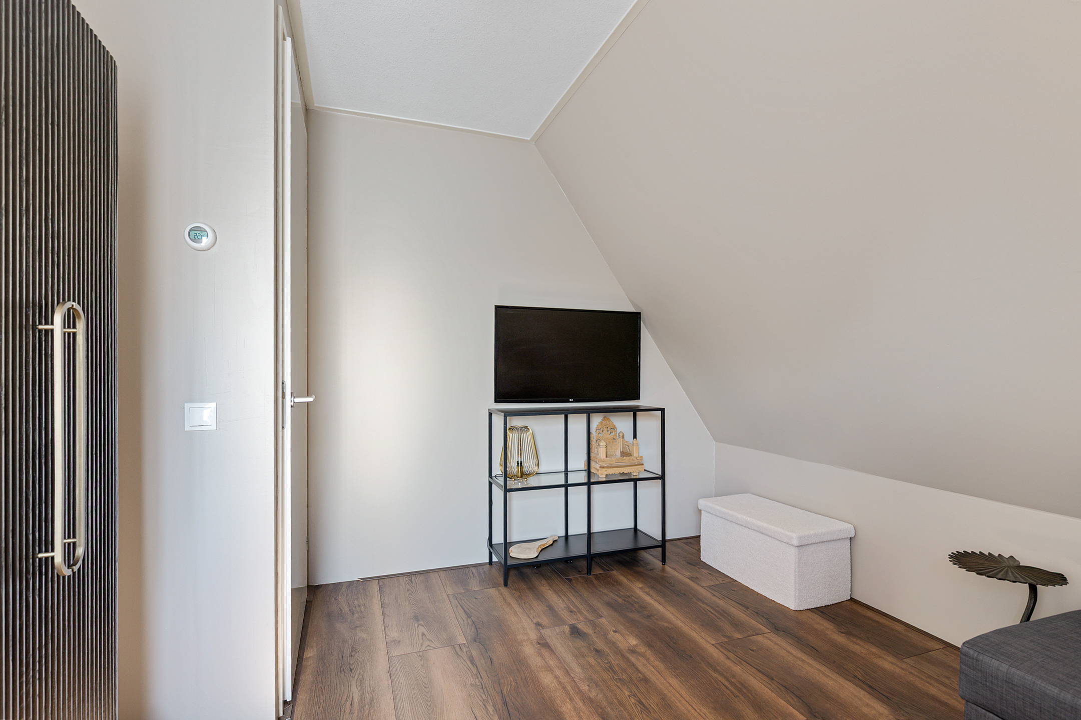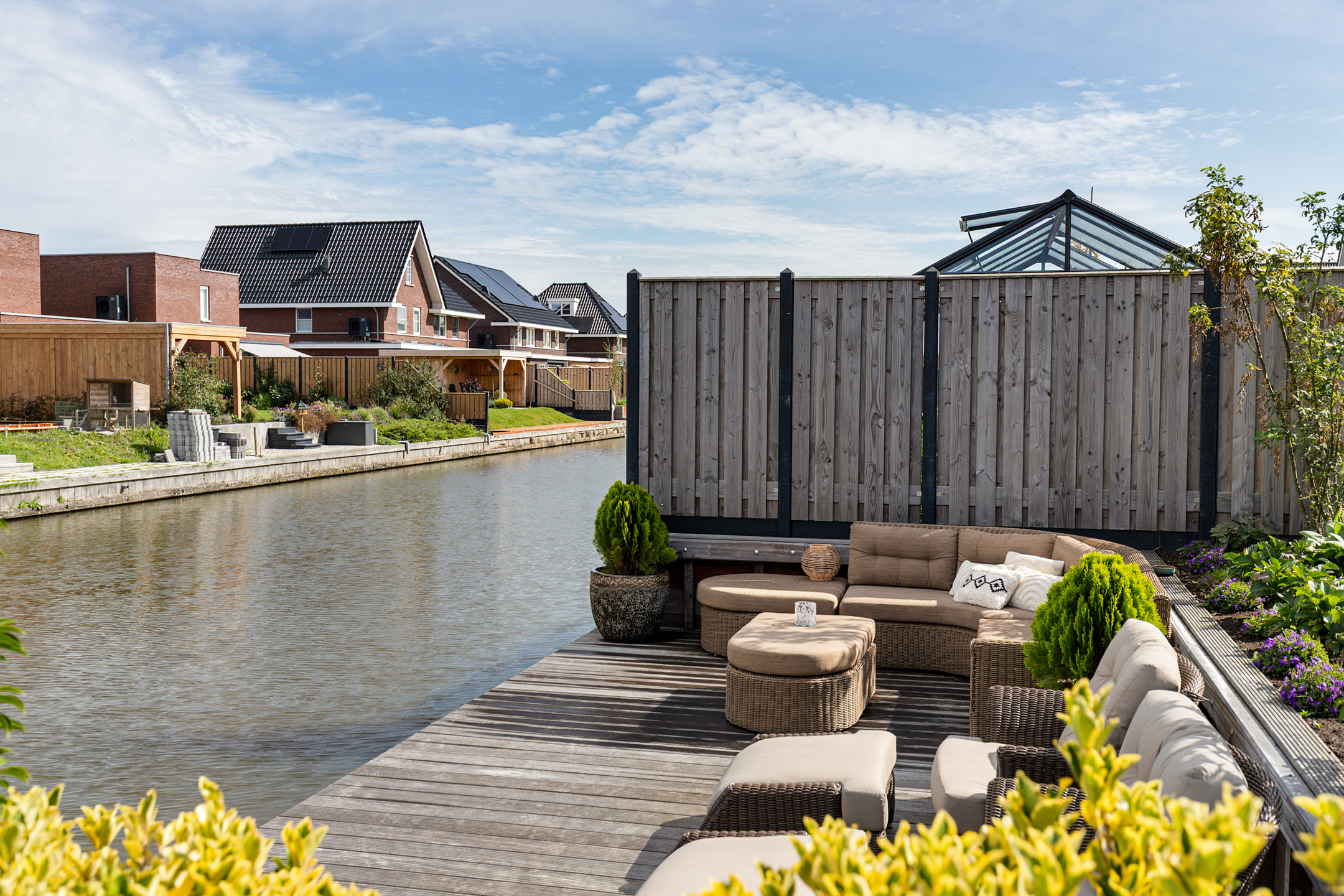 The master suite offers a walk-in dressing room, complemented by boutique-hotel detailing in the bathroom. An expansive second floor, illuminated by a large Velux skylight, offers opportunity for additional bedrooms or a private study. The villa’s 600 m² plot is shaped by mature plantings, inviting terraces, and a 15-metre hardwood jetty, providing direct access to the open water. Amenities such as fibre optic internet, a double car driveway, and secure storage merge practicality with elegance. The setting combines privacy and tranquillity, amidst waterways, green space, and walking routes, all within effortless reach of Franeker’s historic centre, railway station, and the cultural richness of the Frisian Eleven Cities. This luxury villa for sale in Franeker offers a rare combination of modern comfort, architectural integrity, and water-connected lifestyle.