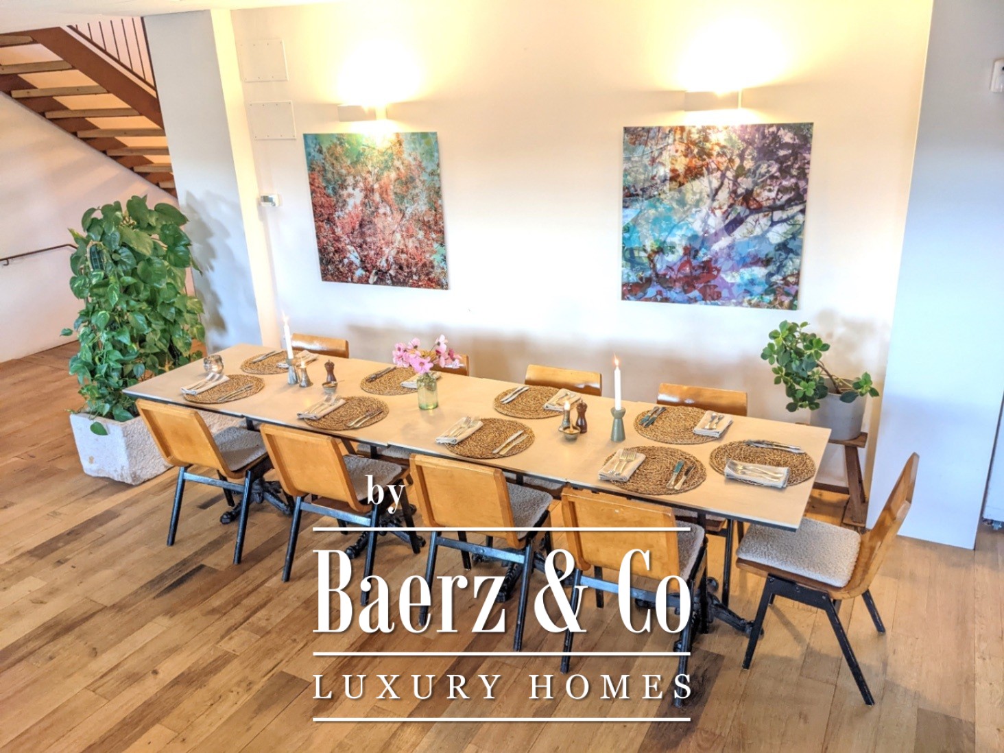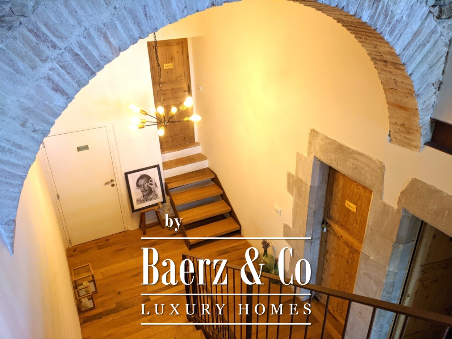 Within the 1,000 m² of living space, the main farmhouse breathes with vaulted ceilings, polished concrete, natural stone, and solid oak. Antique stone floors ground the entrance, giving way to open-plan spaces that foster calm and connection. The estate is divided into three distinct sections: the original 650 m² farmhouse, a private 150 m² residence, and a caretaker’s 200 m² apartment. Across nine bedrooms and eight bathrooms, multiple guest suites offer private terraces and garden access. A covered and an open terrace, a professional kitchen, and original fireplaces transcend seasonal boundaries.