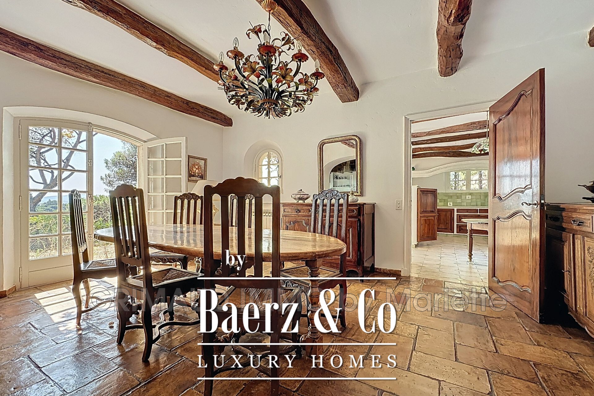 Villa Grimaud sits in a peaceful, verdant setting, capturing panoramic views across the village and surrounding hills. This Provençal style villa, with 308 m² of living space, is arranged on a generous 4,086 m² plot and features a private garage. Offering both privacy and versatility, the villa is divided into two distinct living spaces, well-suited for family gatherings or independent living.