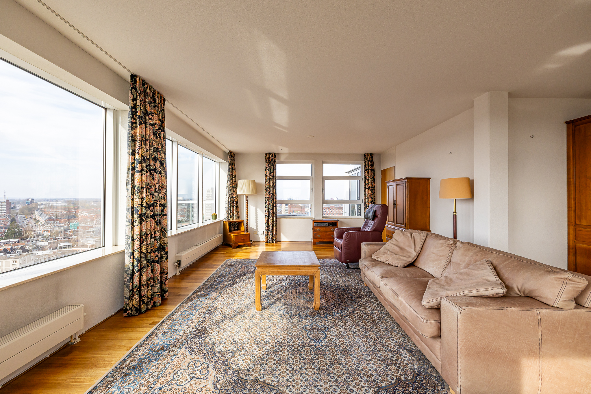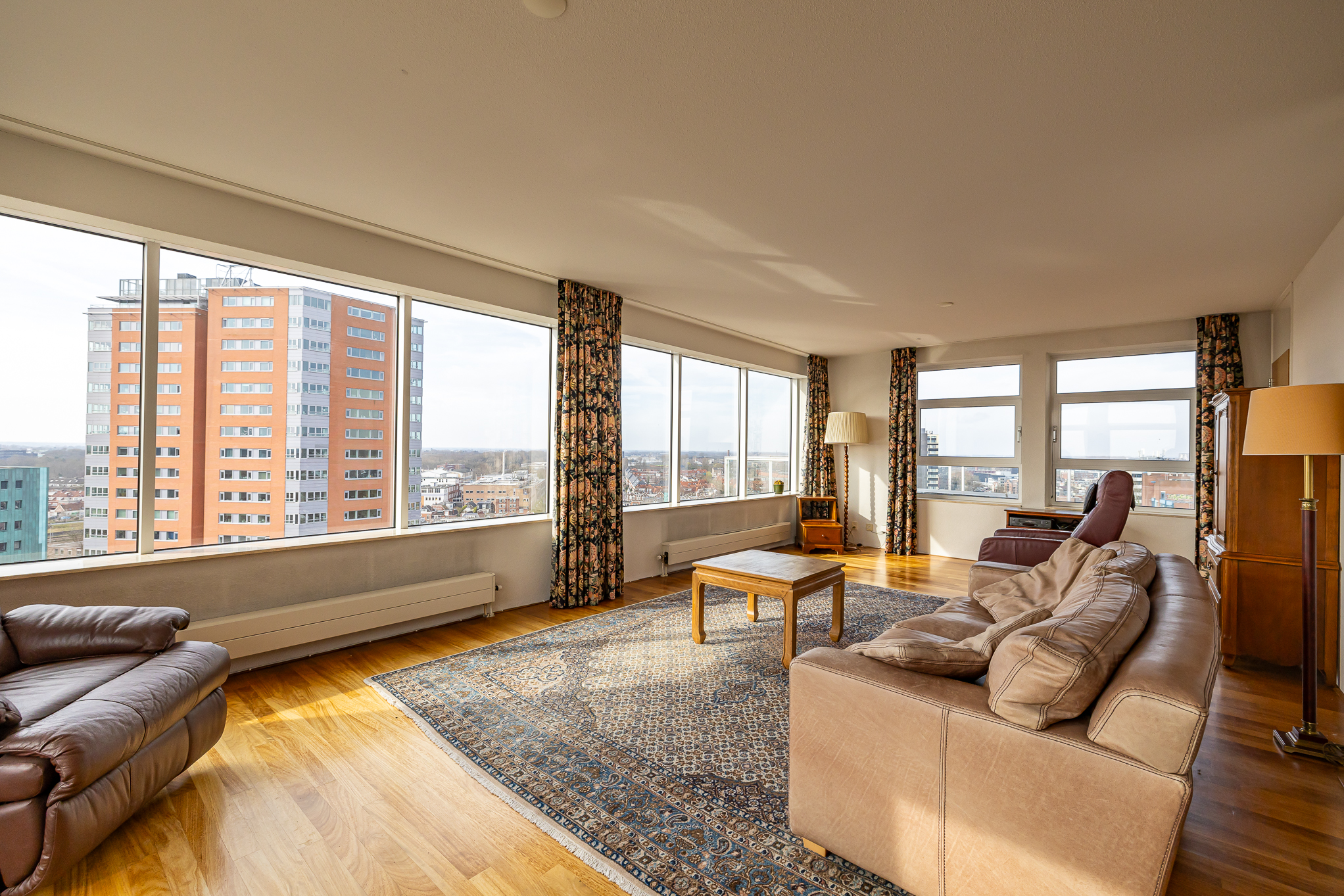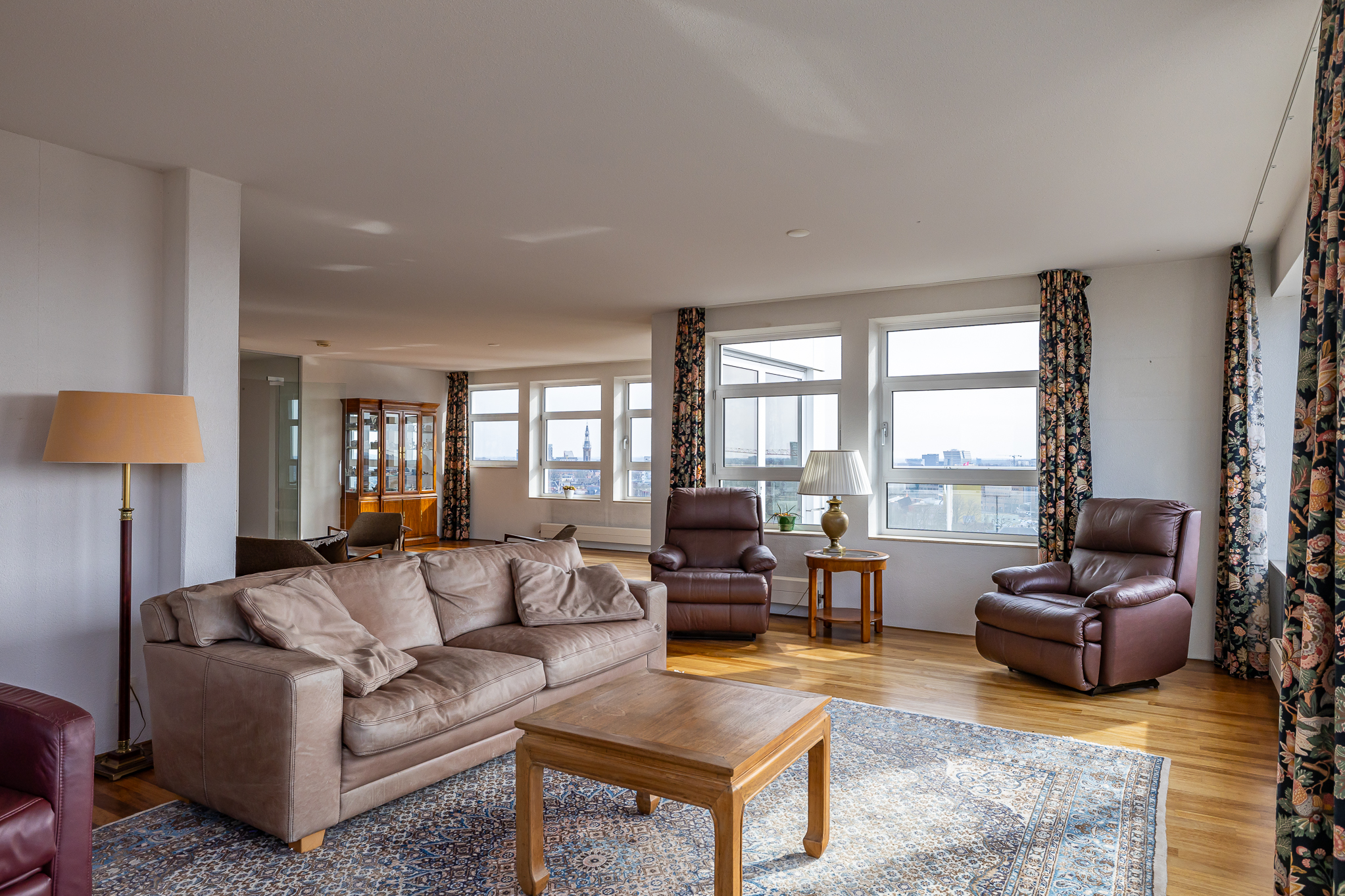Penthouse Groningen is a rare residence offering refined urban living at the edge of the city’s historic heart. This exclusive penthouse provides 263 m² of living space, where floor-to-ceiling views extend over the Verbindingskanaal, the Zuiderhaven, and the tree-lined Praediniussingel. The property’s distinctive design, achieved by uniting two penthouses, creates a spacious layout with four bedrooms and two bathrooms, including features such as a whirlpool, sauna, and steam cabin.