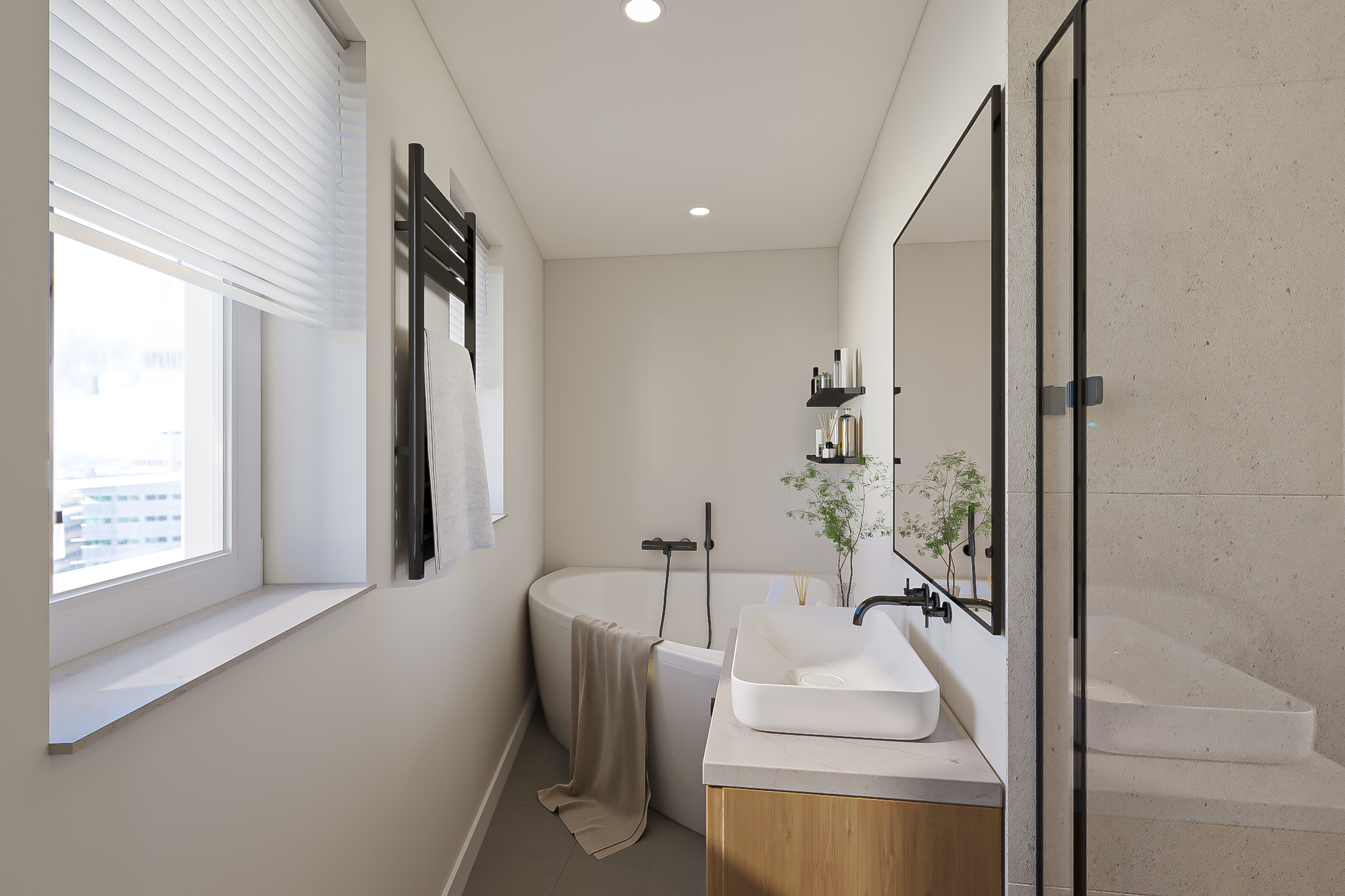A unique feature, supported by preliminary municipality approval, is the potential to divide the penthouse into two independent apartments, each with its own entrance and flexible layout.