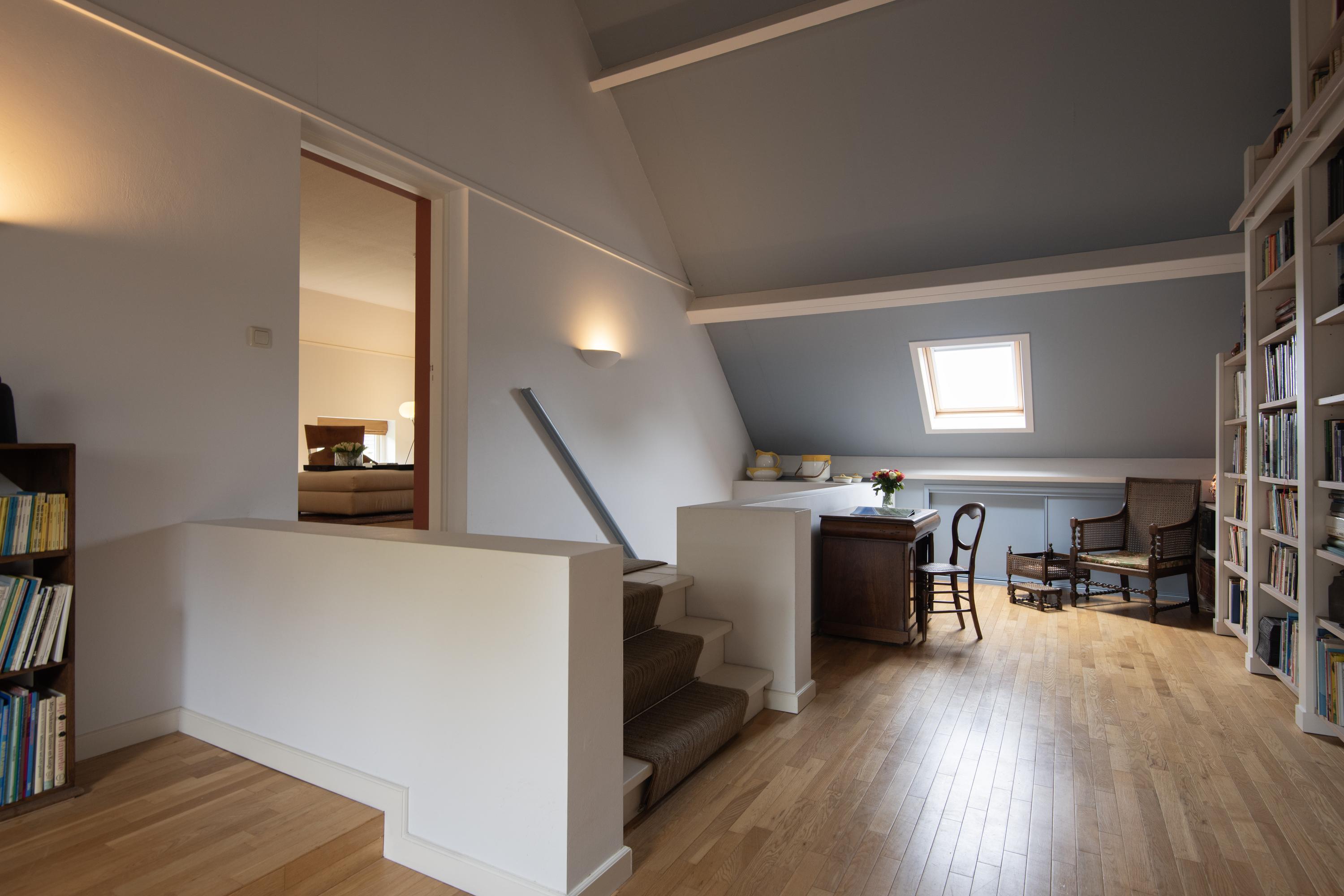 This floor has two entrances. In the front house, the staircase leads to a beautiful, bright room which is furnished as a library.