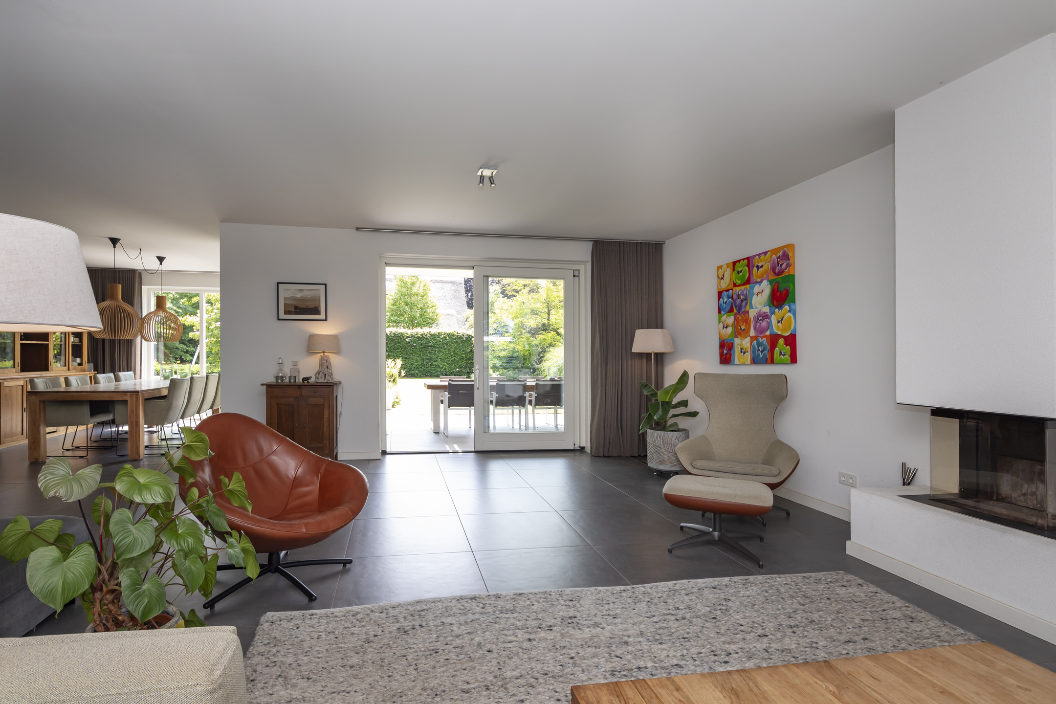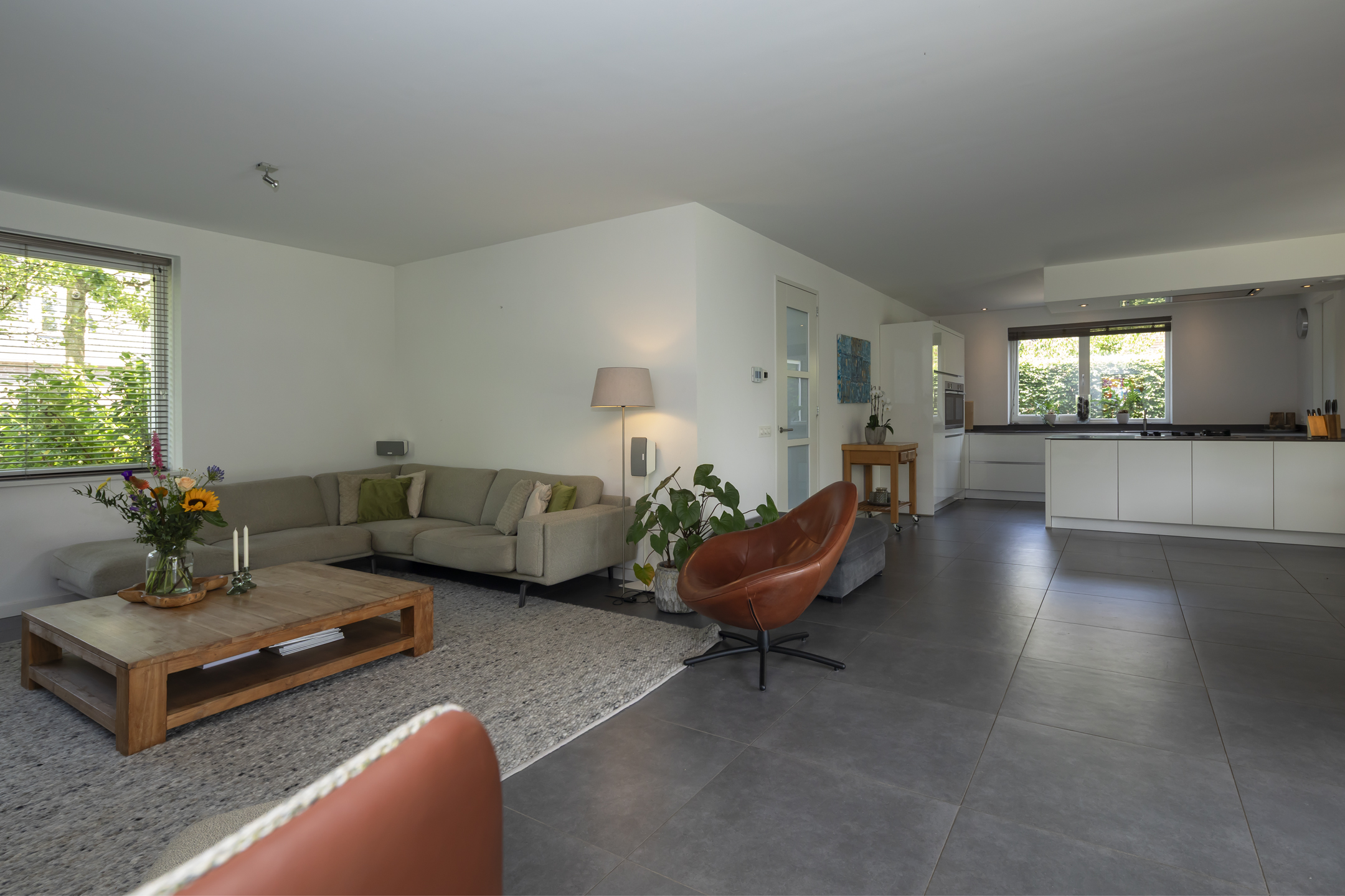 The garden is fantastic, offering wonderful privacy. The beautiful garden is bordered by green hedges, ensuring minimal views. A lovely lawn with a spacious sun terrace provides ample space for playing. In addition to the sun terrace, there is also a beautiful, spacious covered terrace adjacent to the rear of the house. The covered area has a large skylight, ensuring optimal daylight penetration into the living room. And then there's the unique sauna in the garden, where you can relax after a hard day's work. The front garden is also neatly landscaped and has a spacious driveway with space for 4 to 6 cars.