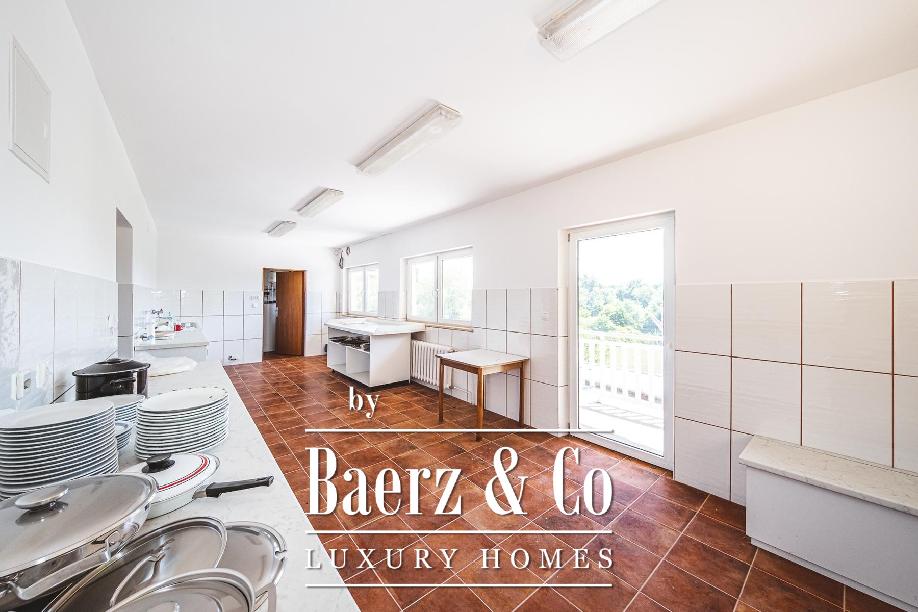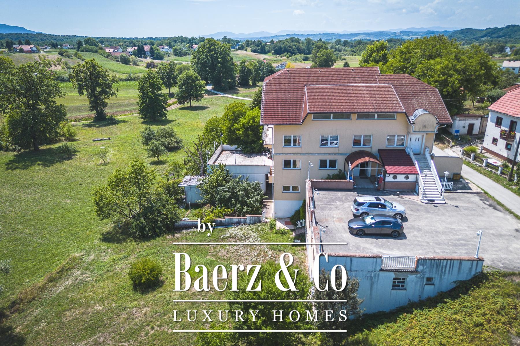 Oroslavlje, a 1861 m2 business building built in 2000 and partially renovated in 2015, on a 7823 m2 plot with great potential for conversion into a nursing home or a catering and boarding house.The building consists of a total of 52 rooms for various purposes, including kitchens, storage rooms, bathrooms, boiler rooms and bedrooms.An elevator inside the building, central