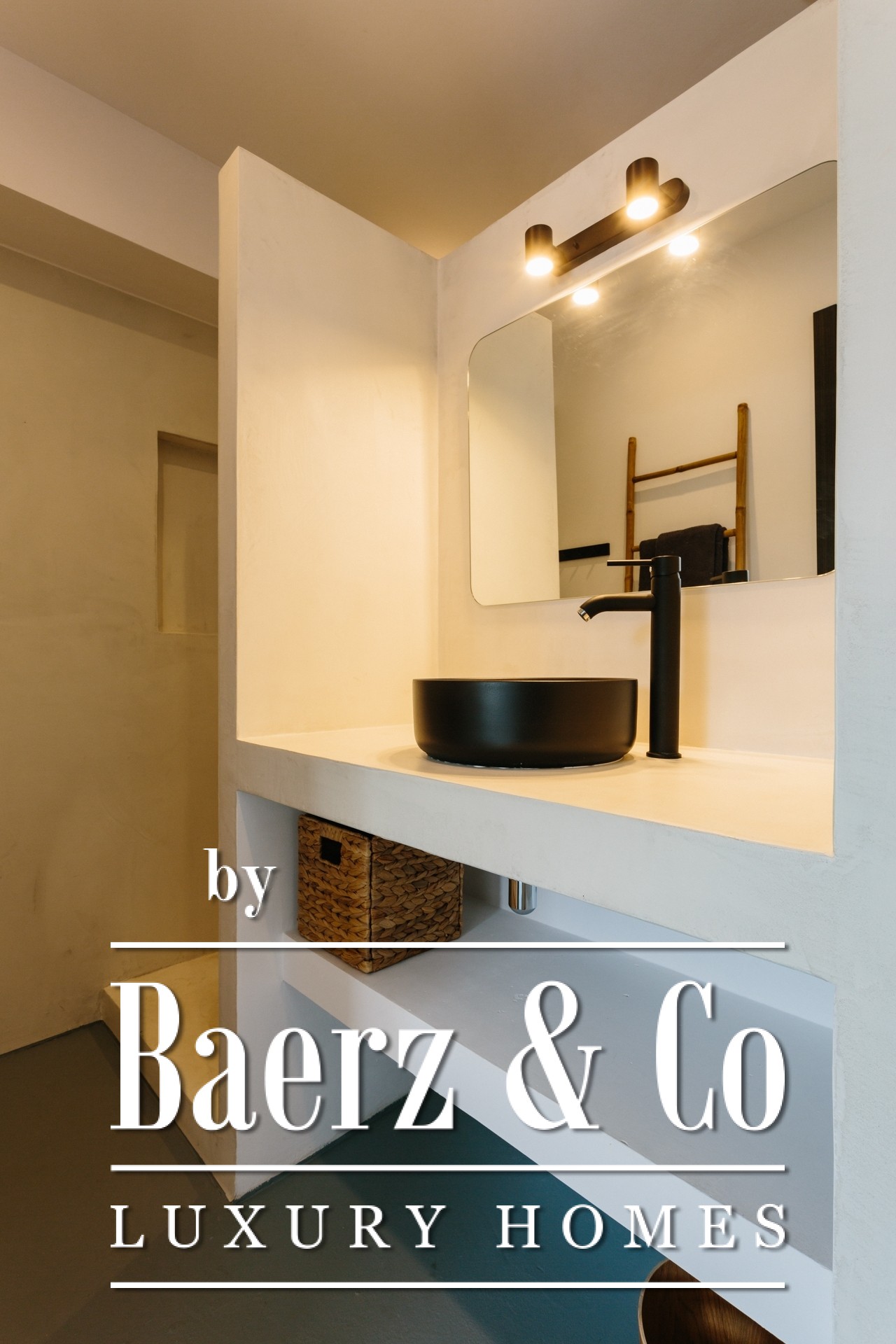 A staircase leads to the lower level of the property, where the 4 independent studio apartments are located — each designed to a high standard. All offer a private kitchenette, an en-suite bathroom and access to individual terraces that connect seamlessly to the landscaped garden.