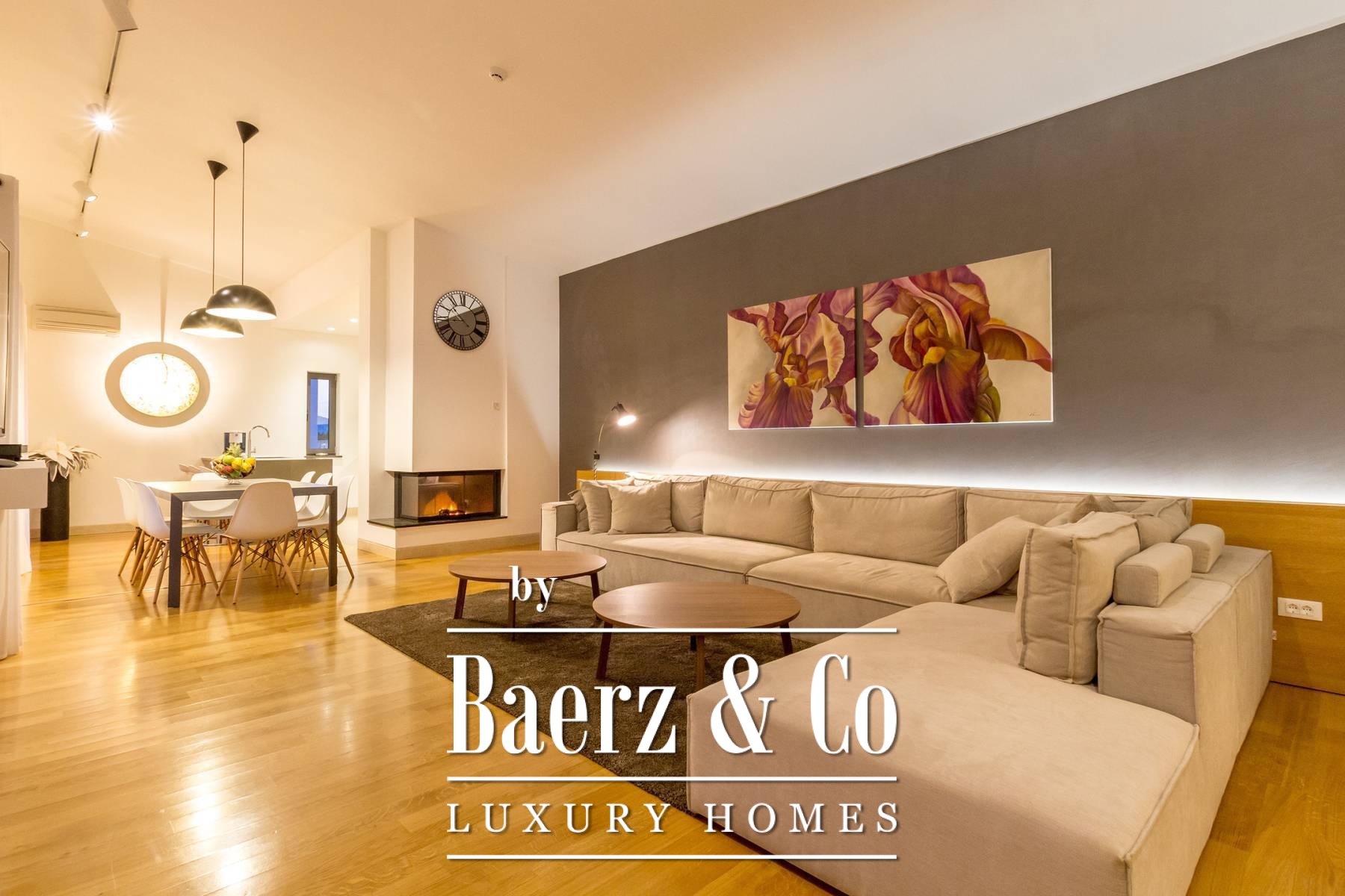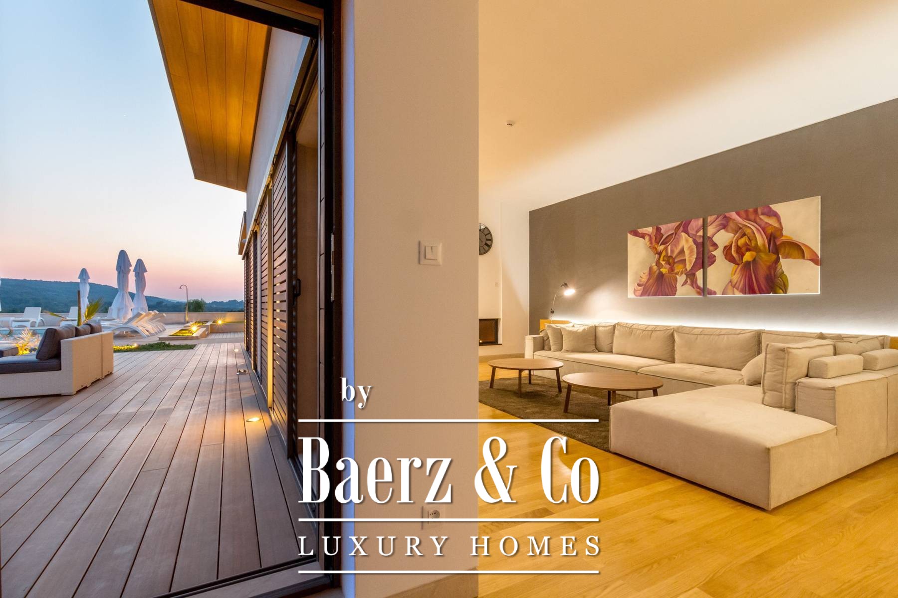 and three bedrooms, one of which has an attached bathroom. In the basement there is another room with a bathroom, a wine cellar, and a spa area (hot tub, massage table, gym and sauna).The outdoor space is refined with a barbecue, a lighted tennis court, a bowling alley and a detached garden house with a studio apartment. The facility is equipped with a high-end electronic locking system and a video surveillance system and an alarm for additional security.It is less than two kilometers from the beautiful Pokrivenik bay.