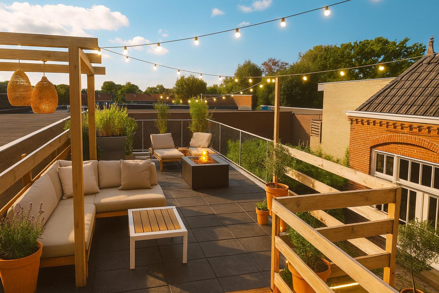 The generous 45 m² roof terrace, adjoining the living room on the garden side, offers abundant potential (see artist impression).