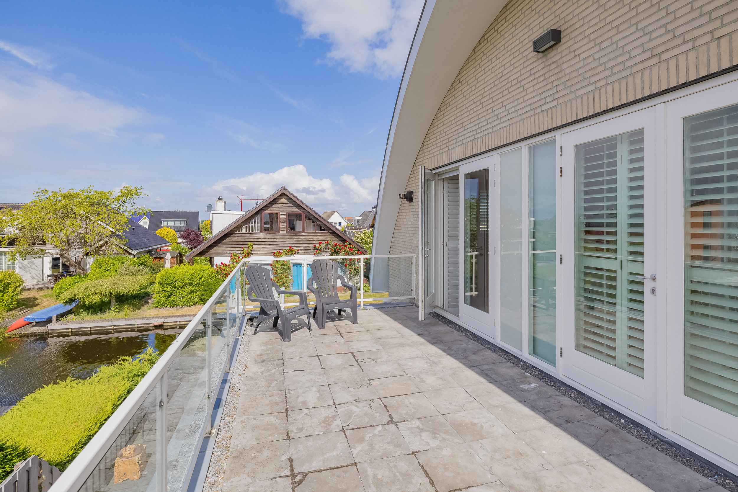 The home features three spacious bedrooms and two modern bathrooms, ideal for a family or guests. All around there is a beautiful view over the meadows or the water. Everything is stylishly decorated with an eye for detail and comfort.