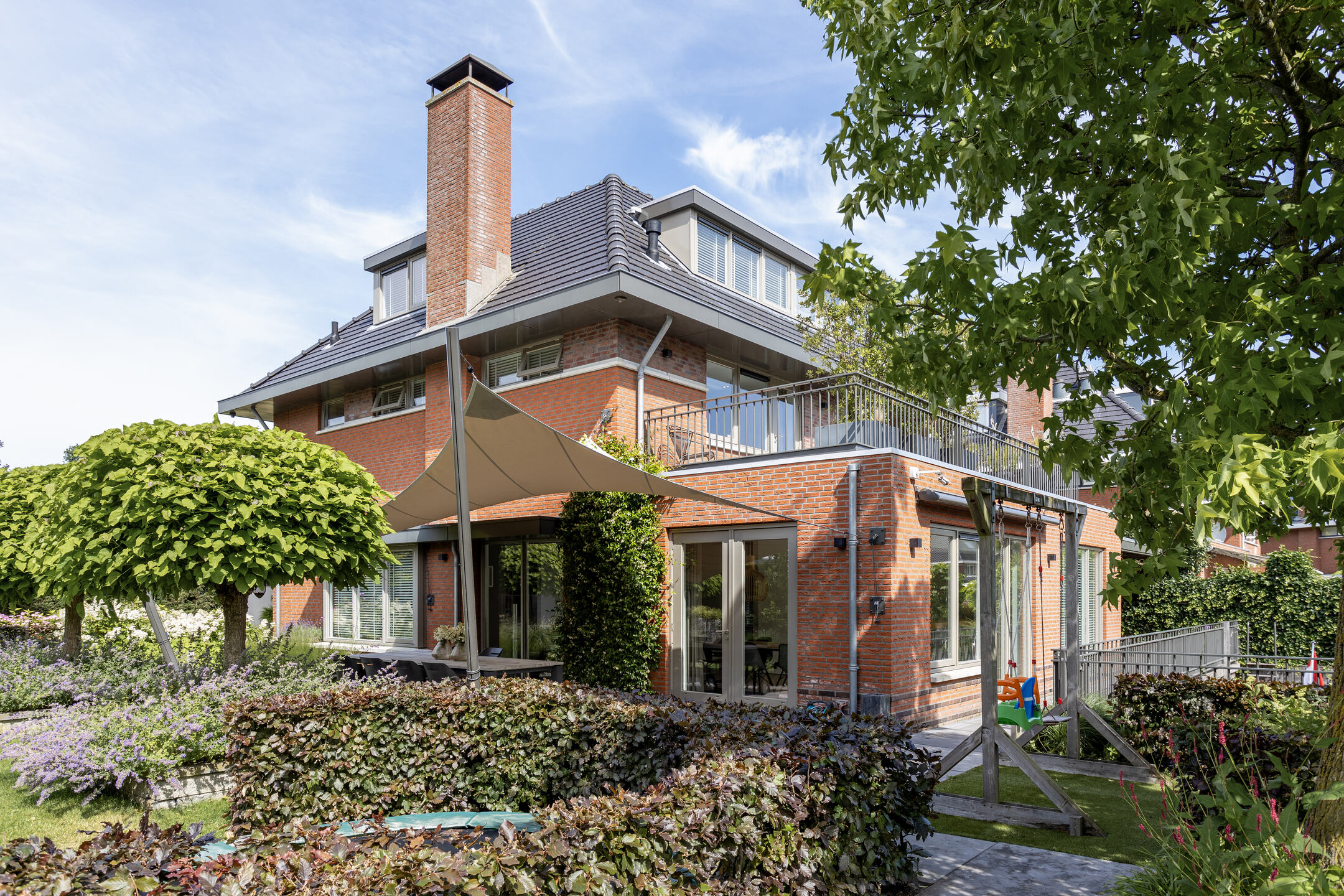 Upon entering there is a generous bright entrance with beautiful staircase and toilet room. Through the steel door we enter the generous, very bright living room with work corner and French doors to the beautiful garden. At the rear of the house is a large modern kitchen with cooking/sink island and breakfast bar; plenty of space for cozy dinners with friends and family. Again, large windows provide an abundance of light. A utility room is of course not missing; this is also where the washing equipment is located.