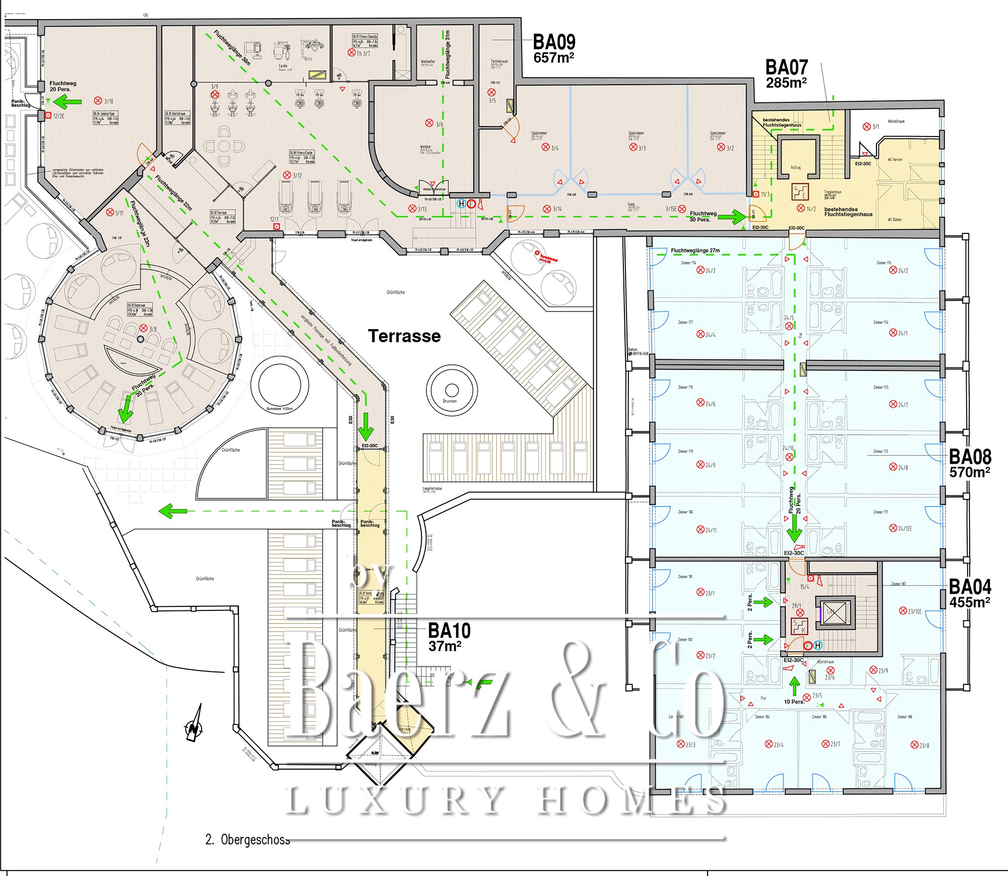 The existing building comprises a former 4-star superior hotel, currently closed, with a solid structure including extensive technical and storage areas, two stairwells, and three elevators. Facilities such as a wellness area, an indoor pool, a beauty and fitness space, and a substantial restaurant with a professional kitchen create a versatile platform for future-oriented concepts.