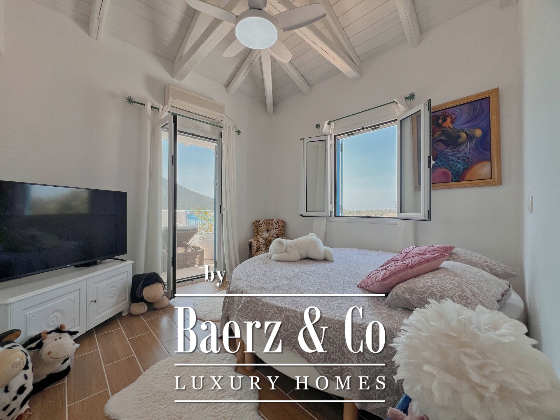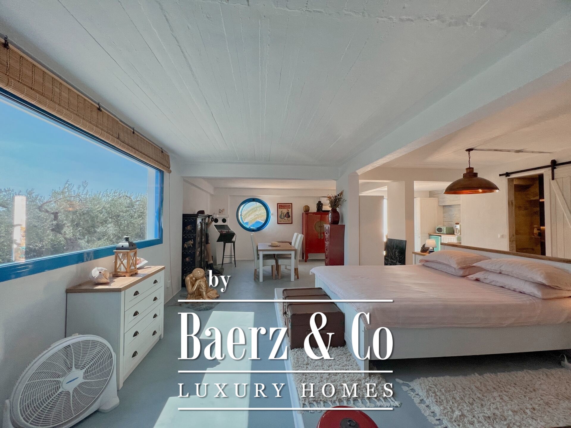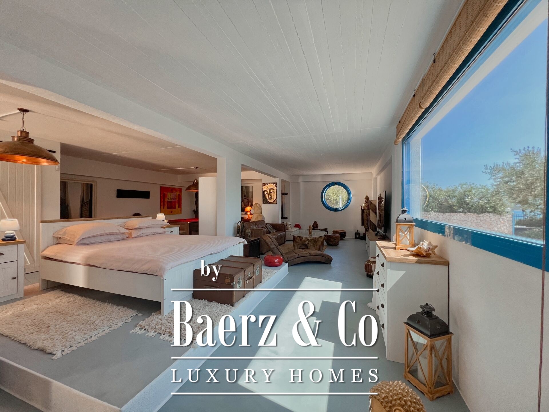 In a unique location with breathtaking views, just a few steps from the crystal-clear waters of a quiet beach and close to the historic and picturesque Ermioni, a 255 sq.m. villa on a 2,000 sq.m. plot is for sale. The residence, fully renovated in 2023 with top-quality materials and attention to every detail, combines traditional Cycladic aesthetics with modern luxury while offering unobstructed views of the surrounding natural landscape. The white surfaces, clean lines, and large openings of the villa highlight light and views, creating bright and spacious spaces that exude calm and elegance. The ground floor hosts a 105 sq.m. loft with an open kitchen, bathroom, open-plan living/dining area, and bedroom with a stunning view of the bay, while a billiard room offers moments