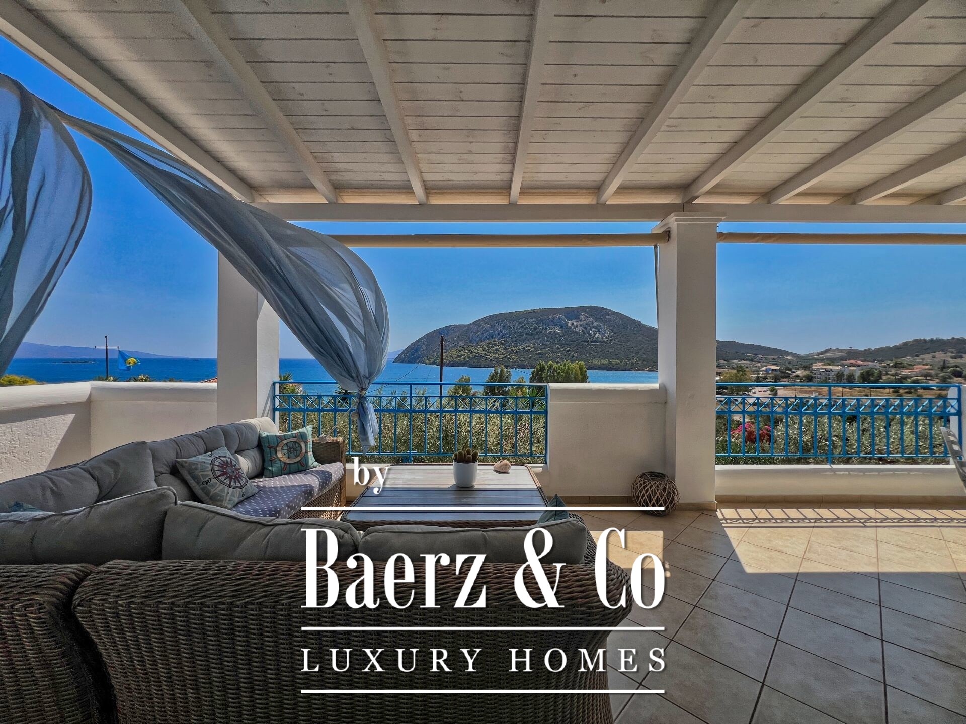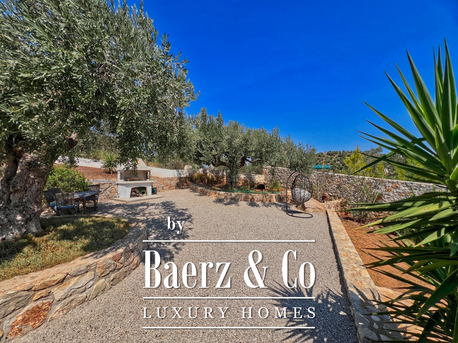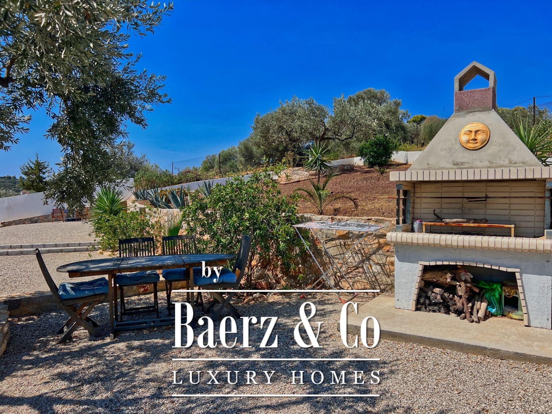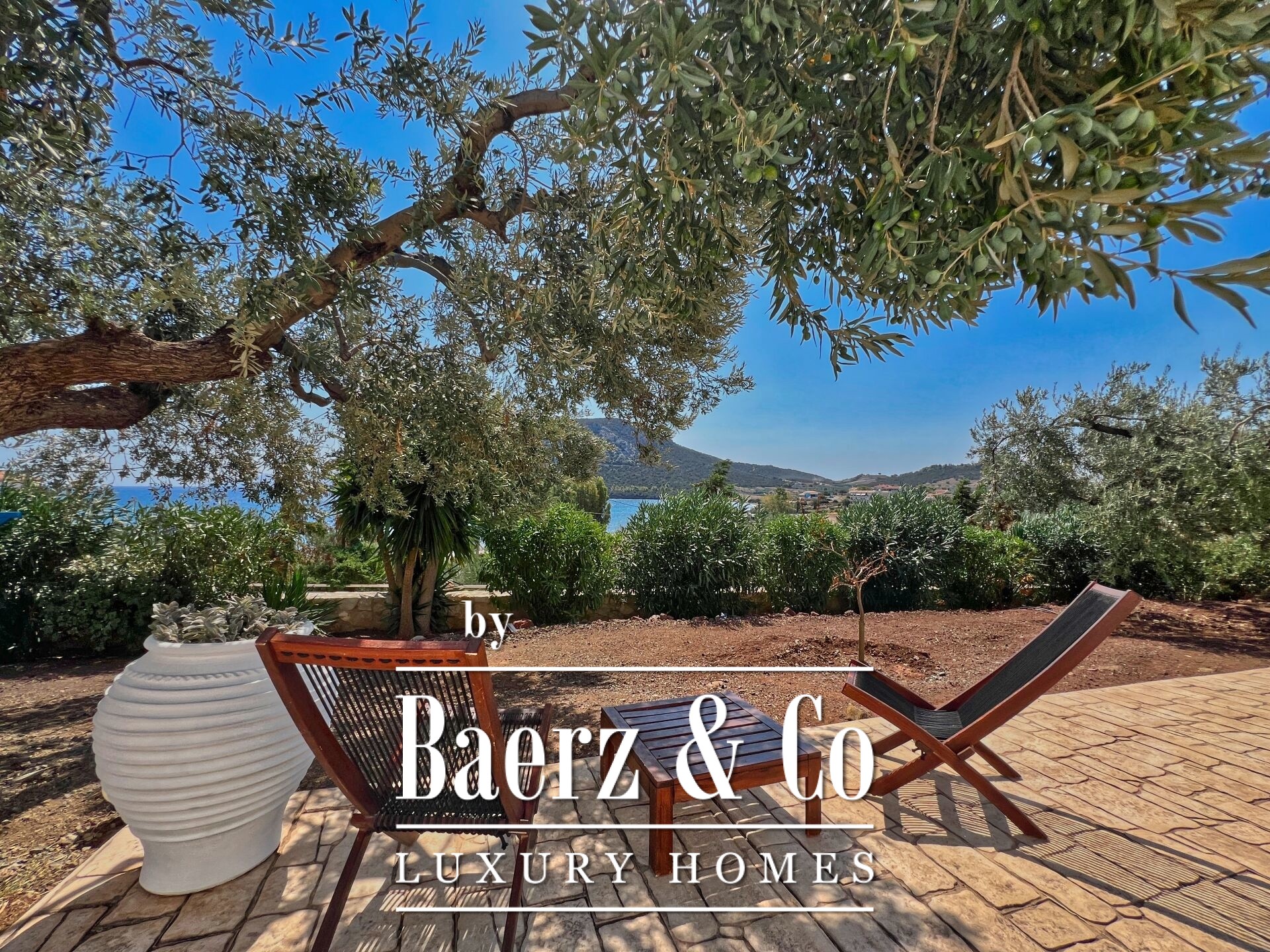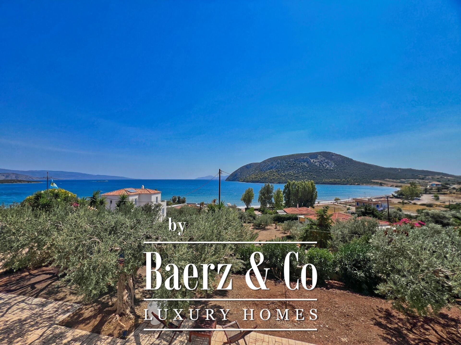 of relaxation. On the raised ground floor is the main residence, featuring a living room with fireplace, kitchen, four bedrooms, two bathrooms, WC, and a covered terrace, from which one can enjoy unobstructed panoramic views reaching the coasts of Hydra, creating a sense of complete connection with the sea and the landscape. The surrounding area completes the experience: mature olive trees, a large garden with automatic irrigation, a closed garage with storage, BBQ, and a space ideal for a pool with an outdoor seating area, all with mesmerizing views. This is a rare opportunity to acquire a residence of high aesthetic value, excellent construction, and unparalleled location – a true gem of the Aegean promising unique moments of luxurious living with endless views.