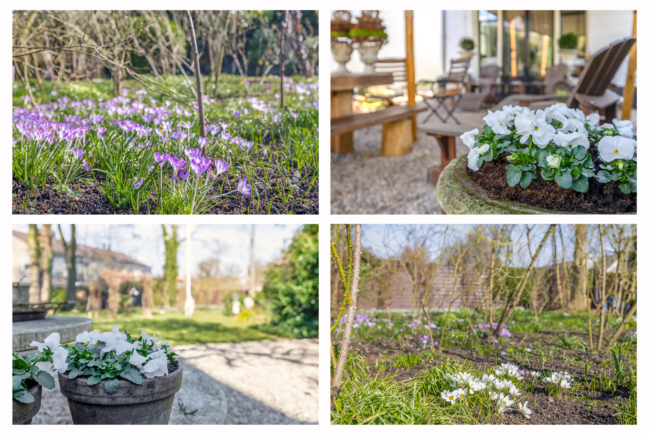 Characterful chestnut trees, winding gravel paths, a pond, and several terraces create a unique experience.