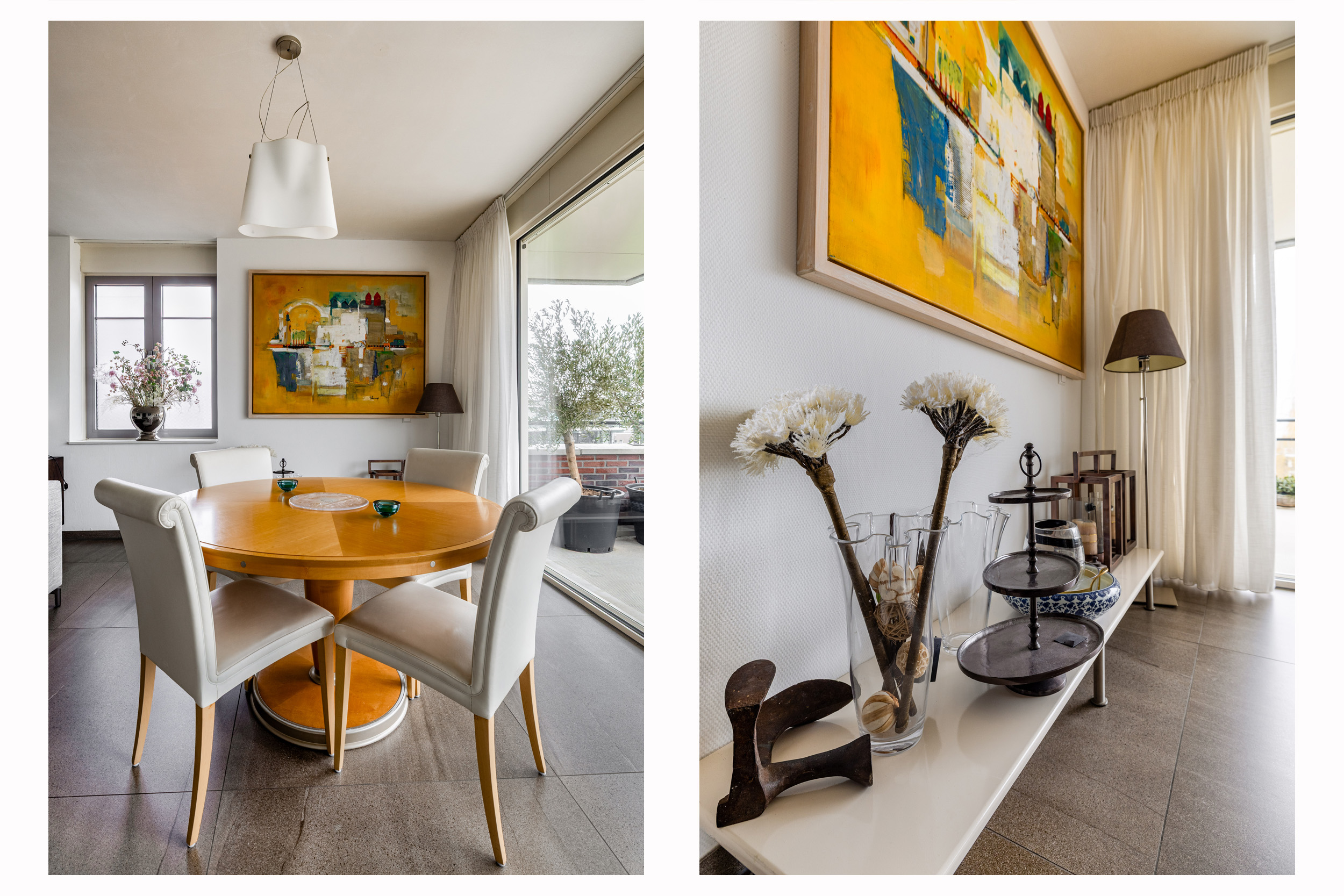 Adjacent to the living room is the very spacious open-plan kitchen, a place that invites long dinners and convivial moments. The SieMatic kitchen is sleek, timeless and fully equipped. Featuring high-quality Gaggenau appliances, generous work surfaces and a practical layout, it is a kitchen where cooking comes naturally. Whether you enjoy elaborate culinary evenings or comfortable everyday use, this kitchen offers it all.