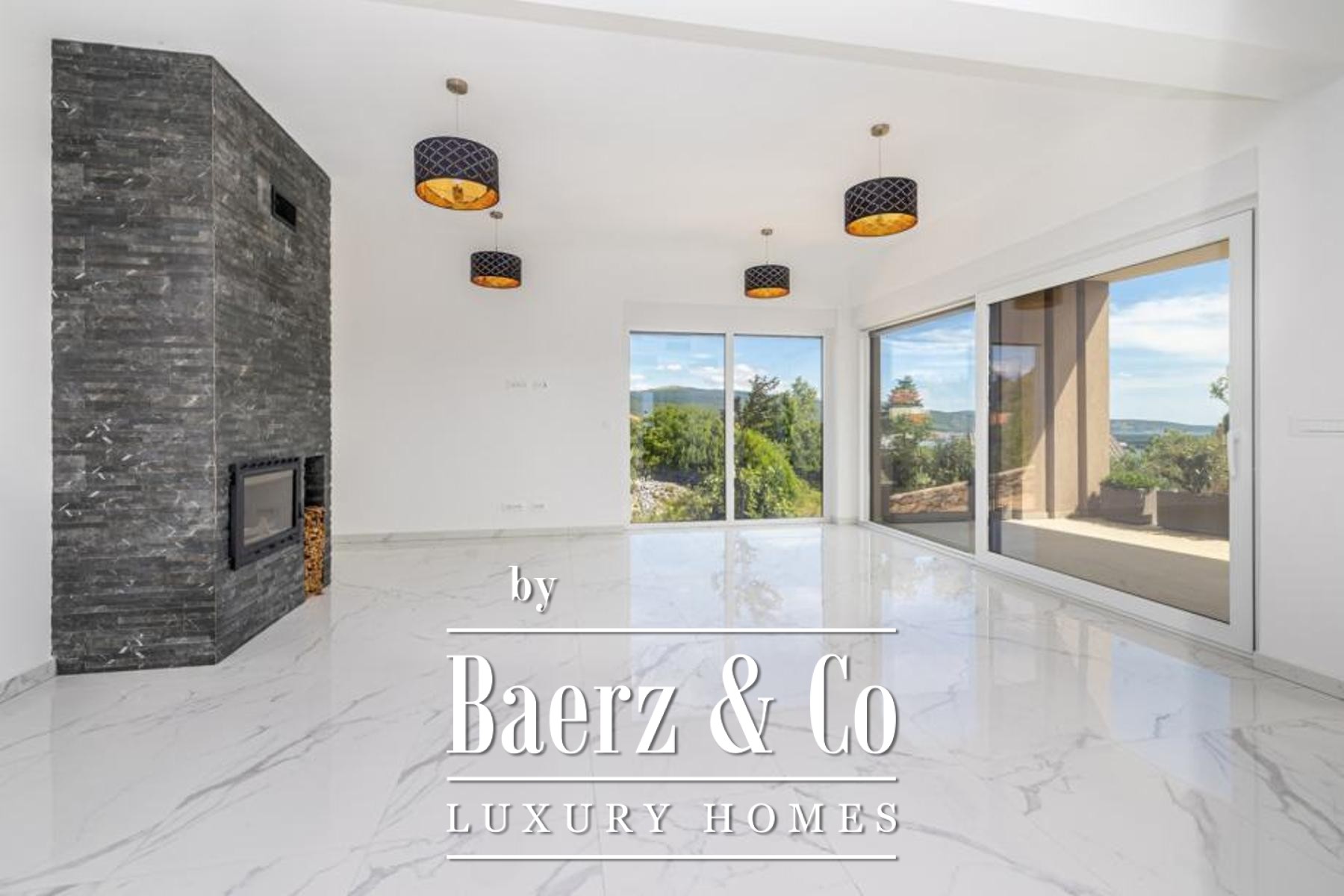 Modern newly built villa on the island of Krk, with a living area of 200 m², situated on a 614 m² plot. This property offers top-level comfort, carefully selected design, and high-quality materials, with spacious terraces that provide a stunning sea view.The ground floor features a large open-concept living space with an elegant fireplace, a kitchen, and a dining area with direct access to the terrace. There is also a wellness area with a sauna and bathroom, a guest toilet, entrance hallway, and a practical storage room.Upstairs, there are three spacious bedrooms, each with its own en-suite bathroom and access to a balcony or terrace, ensuring privacy and comfort. Additionally, there is a separate laundry room on this floor. All bathrooms are equipped with underfloor heating, providing a cozy atmosphere