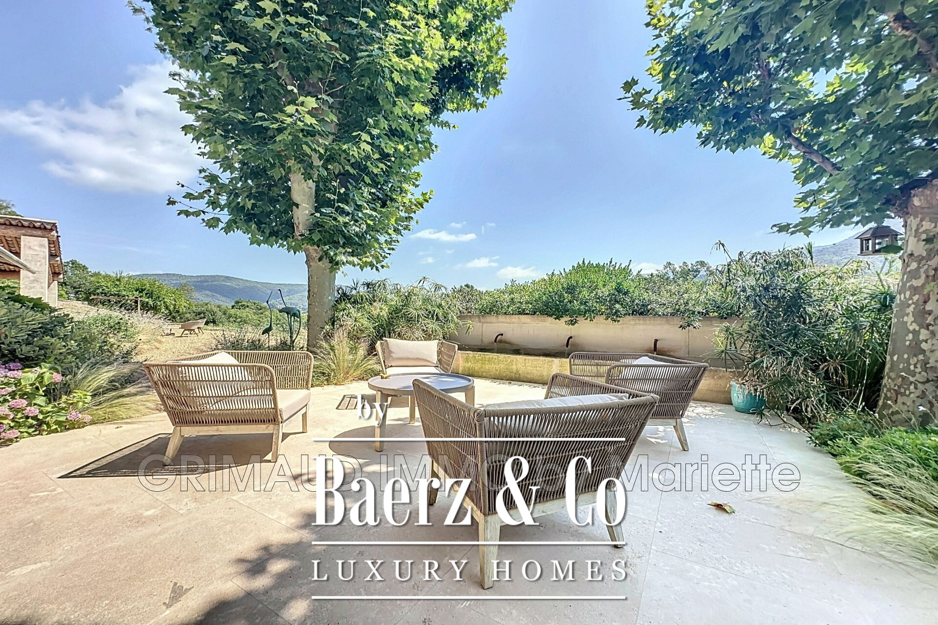Upstairs, the master suite features a private dressing and spacious bath and shower room, while two additional bedrooms share an elegantly appointed shower room. An adaptable fourth bedroom, along with an office or games room, extends to a terrace above the landscape. Practical amenities include reversible air conditioning, an alarm system, double glazing, automatic watering, laundry, and a 70 m² space to suit a garage or future apartment. This property defines South of France discretion, calm, and generous light, ready for both quiet retreat and elegant gatherings.