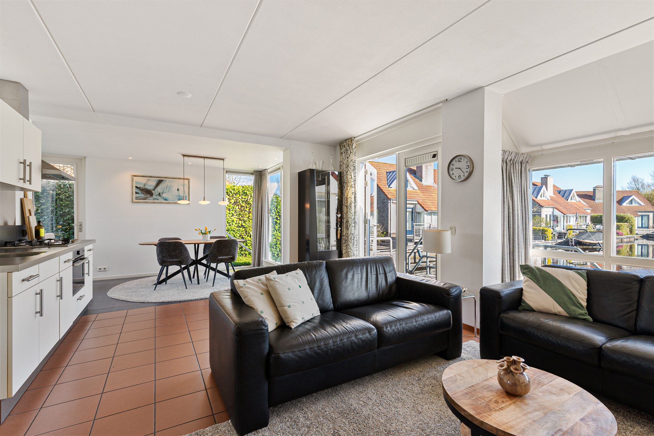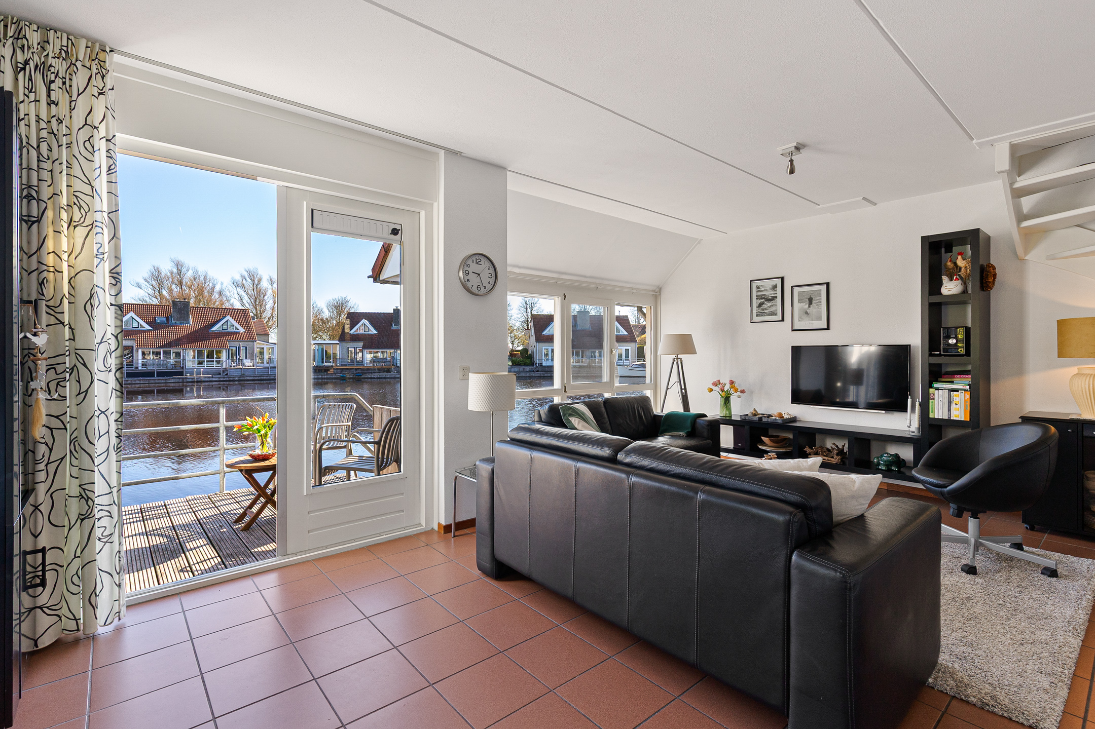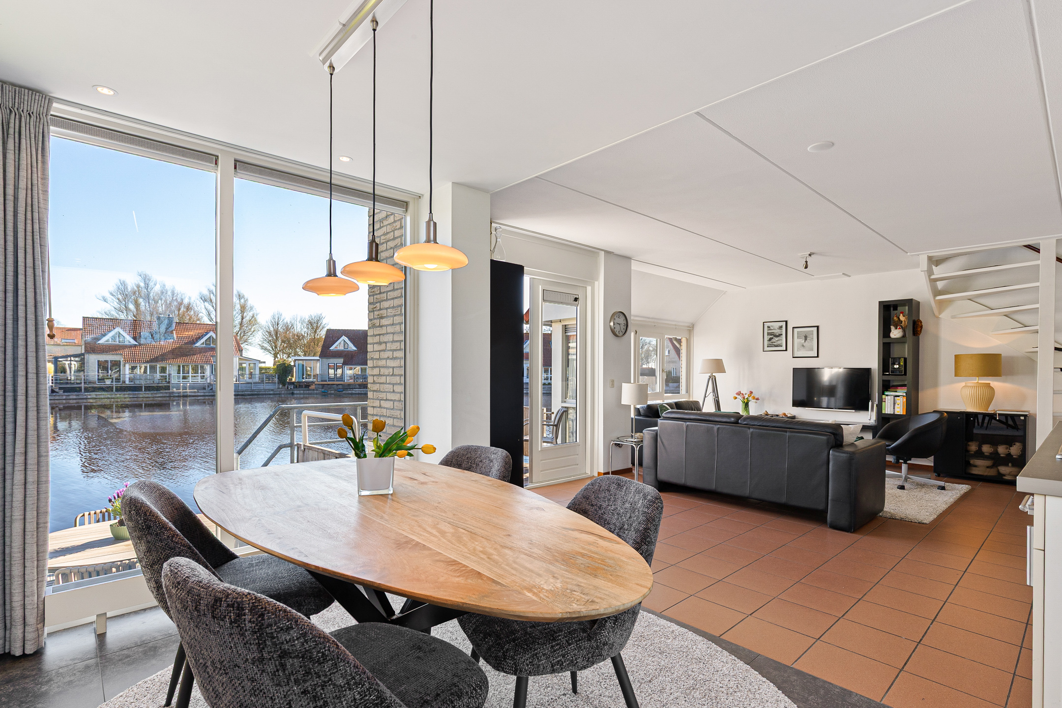 This waterfront house in Langweer captures the essence of waterside living—balancing discretion and ease with the freedom of direct water access, all in an atmosphere of understated luxury.