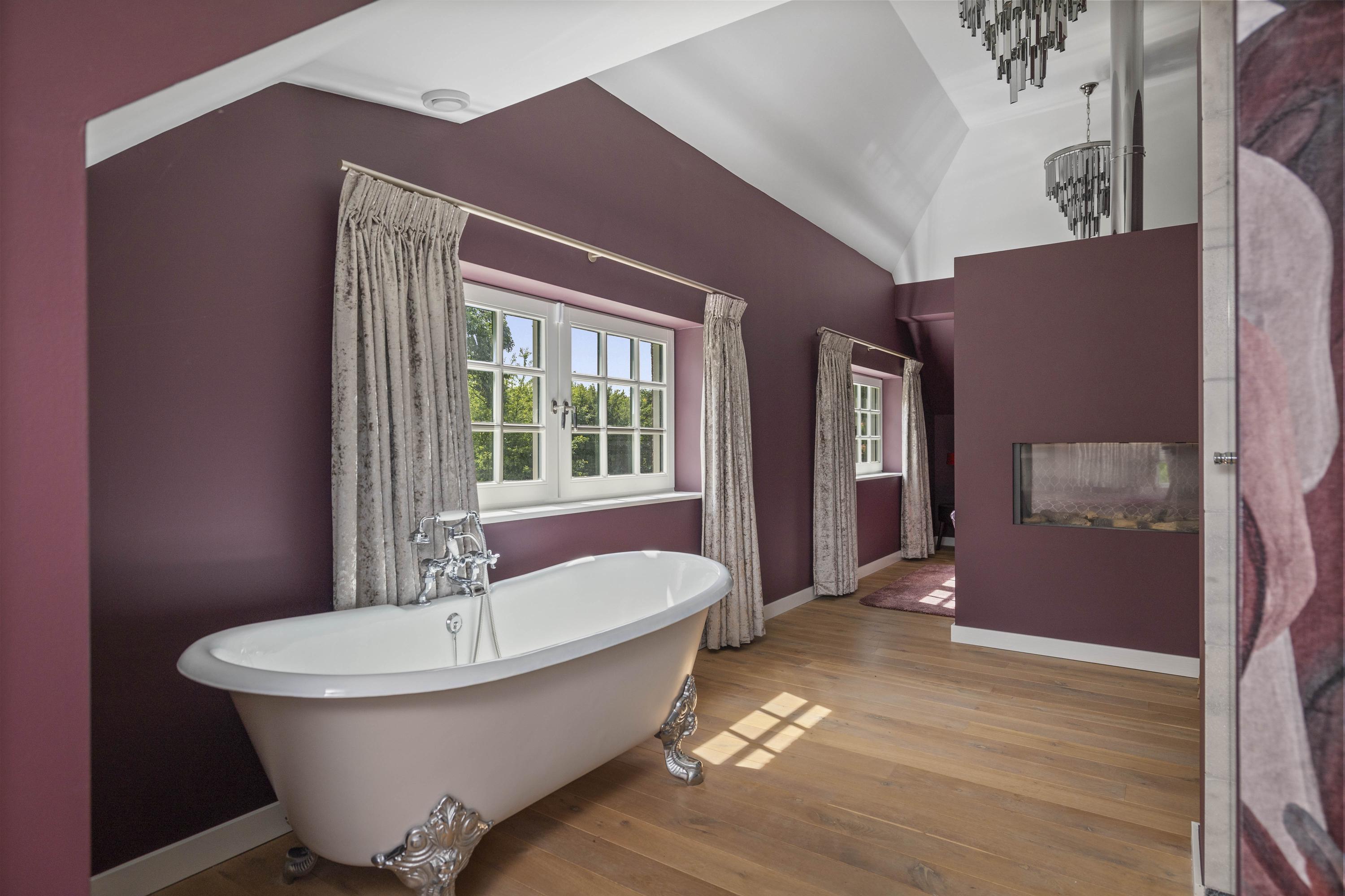 Four bedrooms include a fully self-contained apartment in the annexe, adaptable for guest accommodation or private retreat. Bathrooms showcase high-spec finishes, with the master suite evoking the quiet grace of a boutique hotel. The grounds support year-round relaxation, highlighted by a sauna, outdoor shower, and programmable irrigation system. Ample parking, advanced security, and proximity to Laren’s amenities blend convenience with complete seclusion. This luxury villa for sale in Laren epitomizes discreet countryside living with an enduring sense of place.