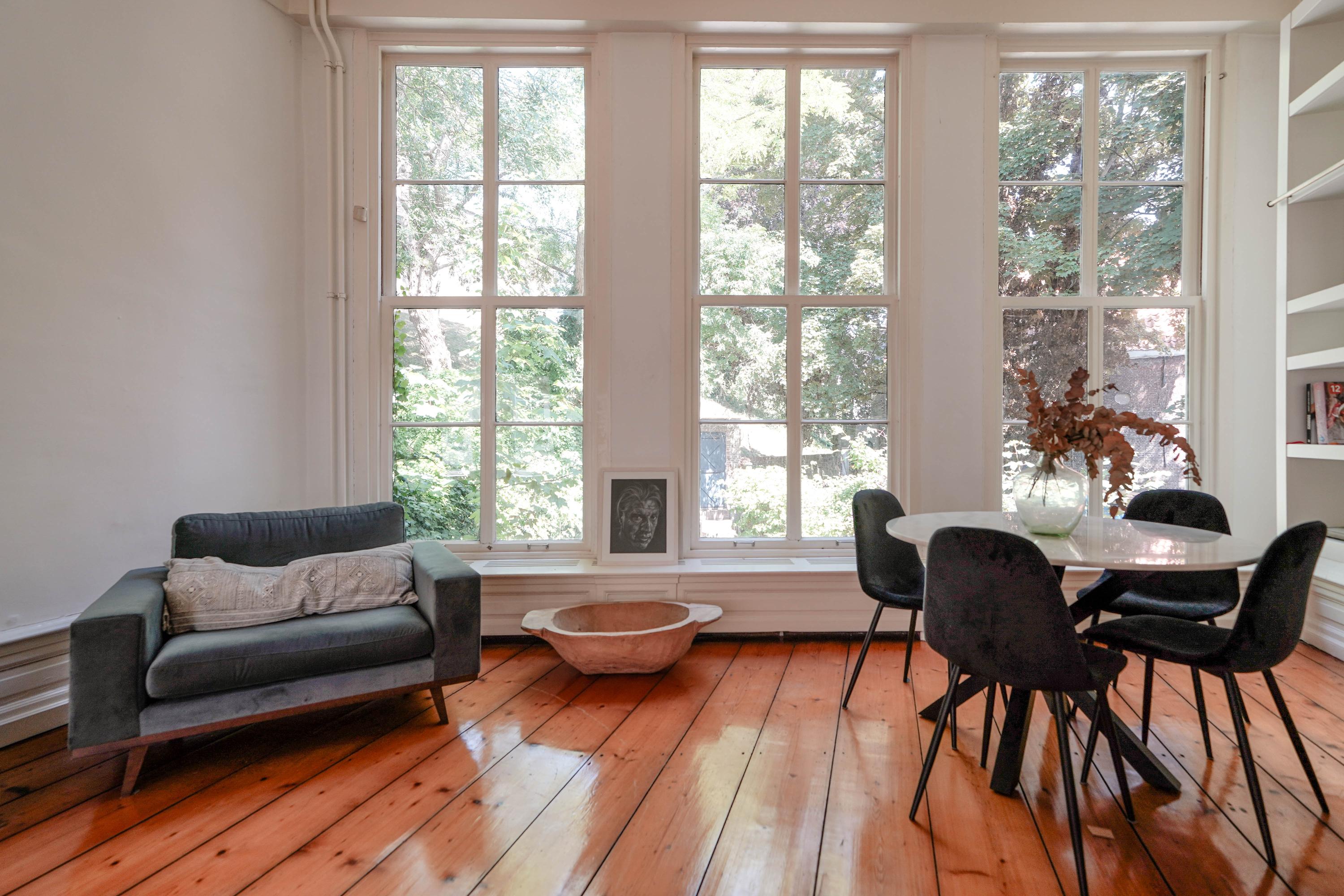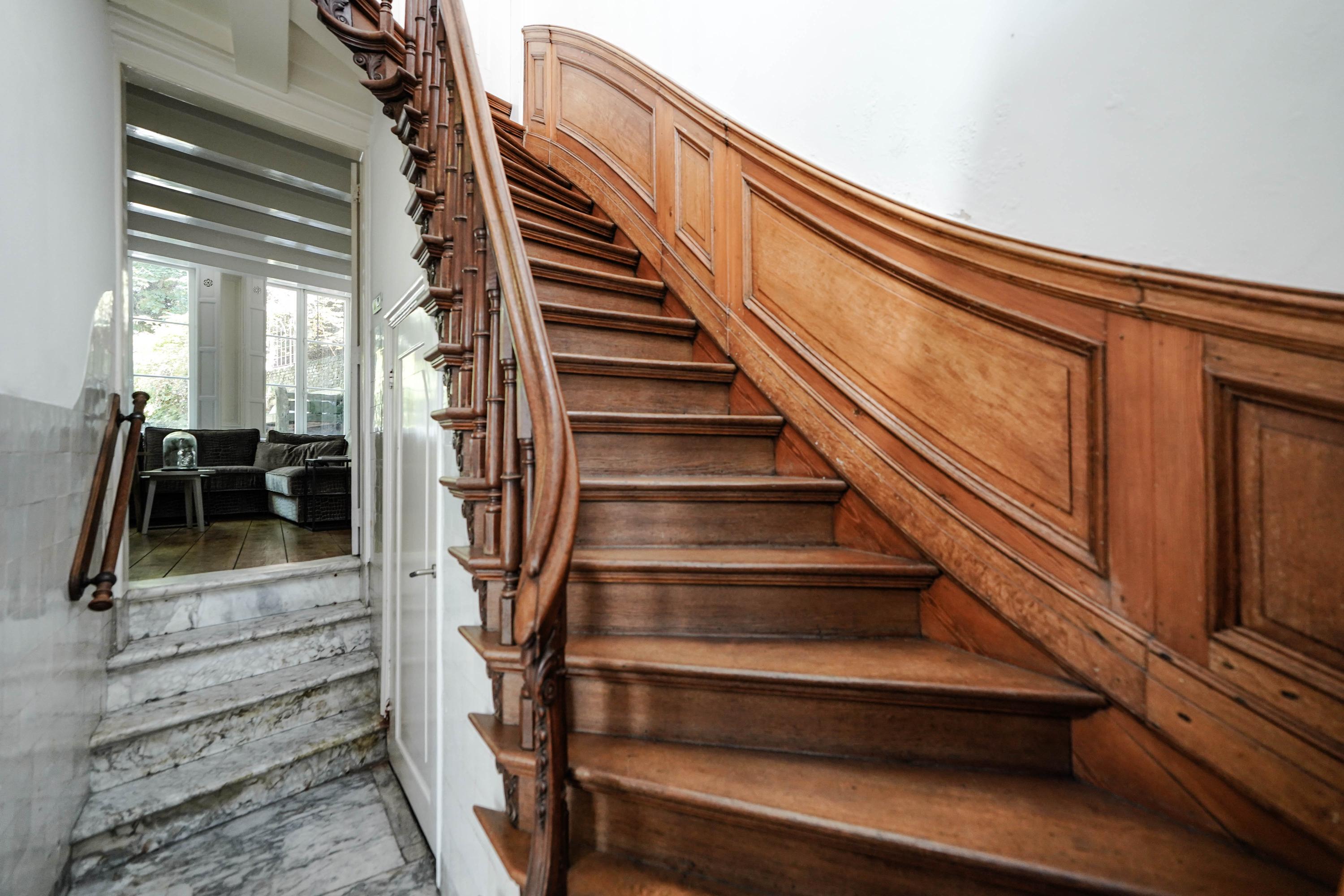 The rear house is oriented towards the garden and the castle hill. From the various rooms you can see the Burggraaf's old home through beautiful high windows: an 800-year-old oasis of greenery in the middle of the city center. Here the current owner has a garden room on the ground floor with an extra kitchen. You also need this, because having to go through the entire building every time for a snack or drink when you're sitting in the garden is a bit much to ask. There are quite some distances you can cover here. There is now a second living room on the 1st floor. with high ceilings, a fireplace and the best view of the Castle. It could also make a lovely office or library. Upstairs is a separate guesthouse with private bathroom and toilet. An aupair could also have a very nice place here.