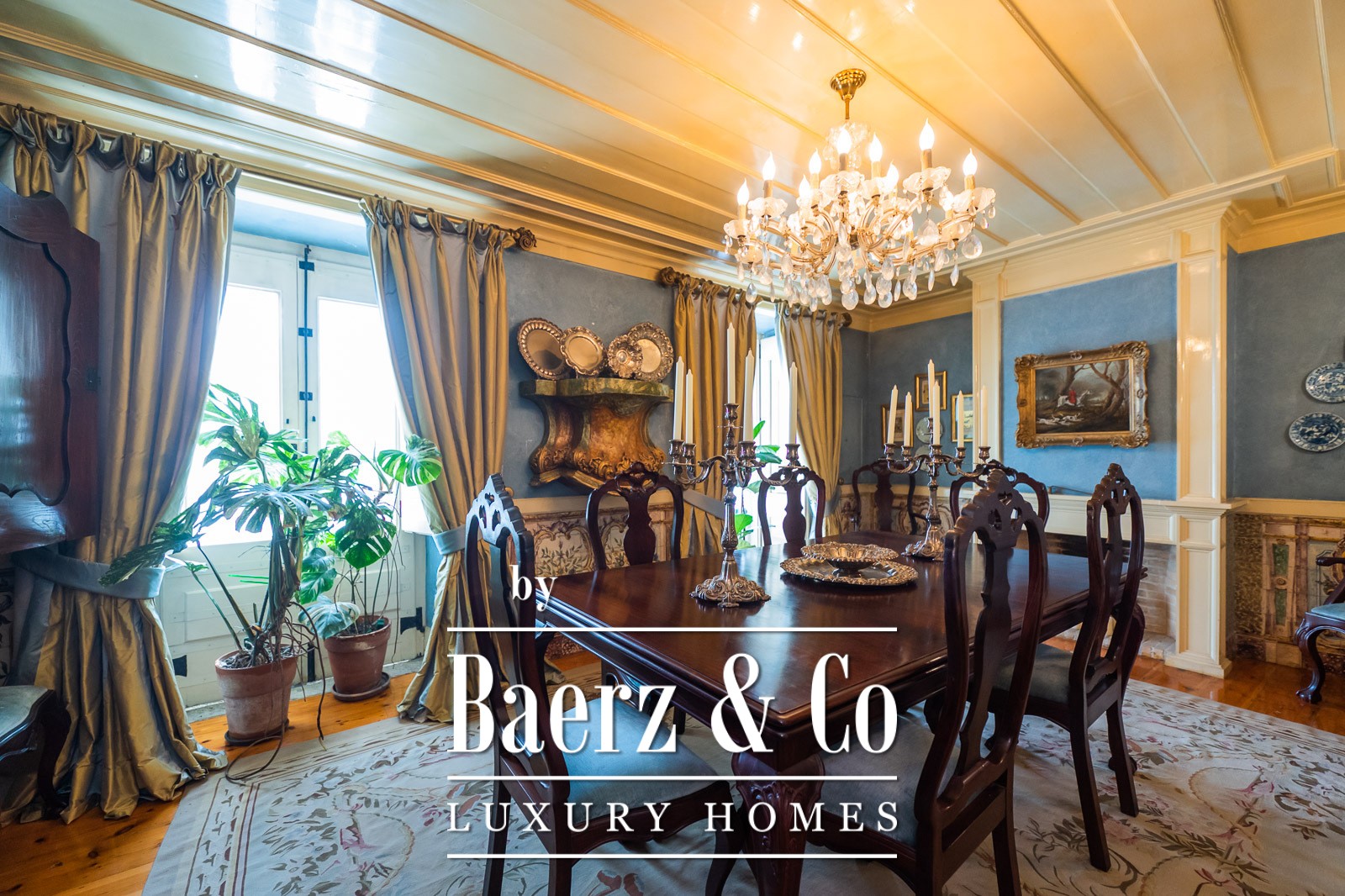 Discretion shapes each corner of this property. Six bedrooms and multiple living rooms form an adaptable spatial rhythm, while the Tudor-style kitchen, service lift, and hardwood floors reflect a thoughtful attention to quality. Details such as frescoes from the Ricardo Espírito Santo Foundation and antique tiling connect each room to the district's distinctive history.