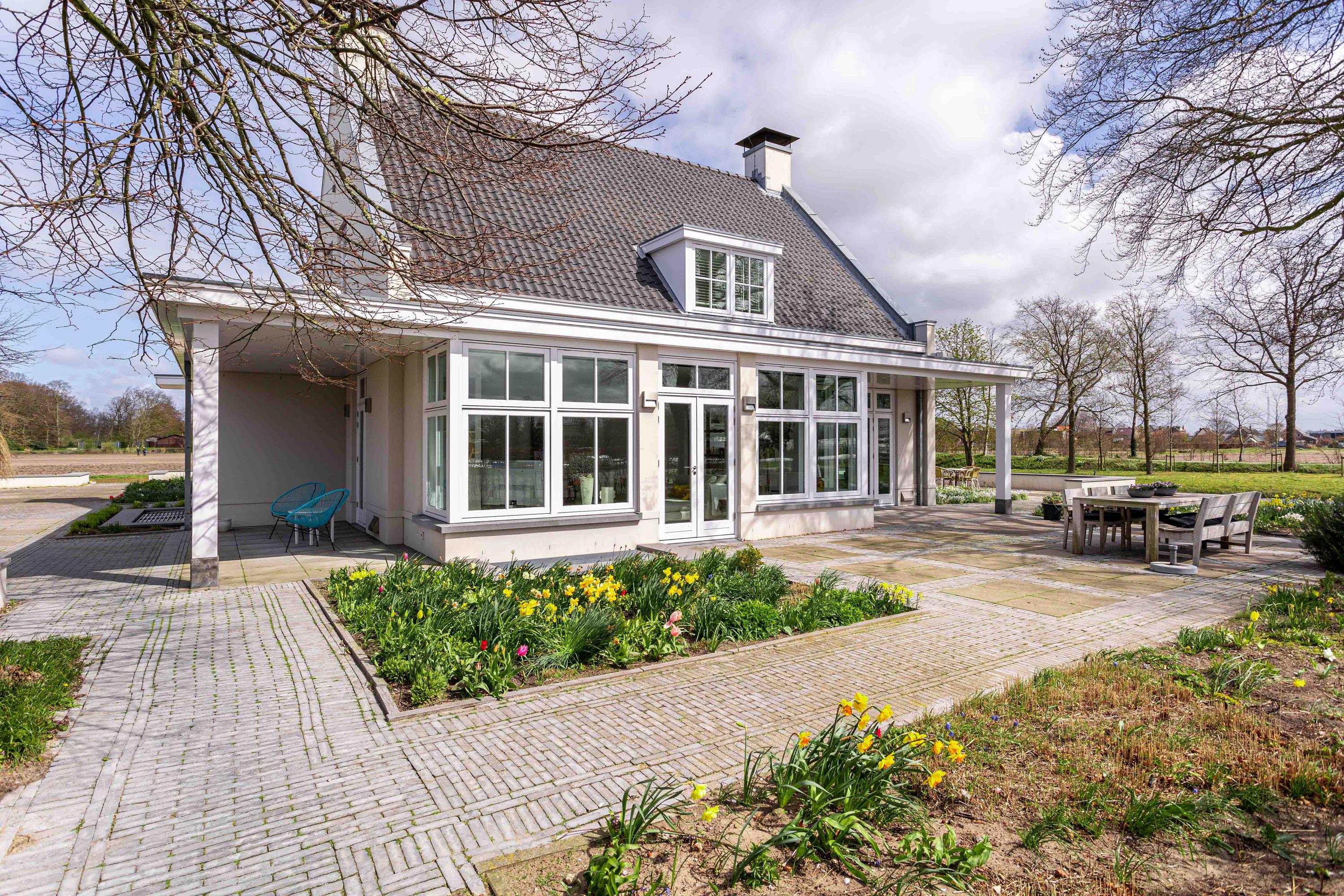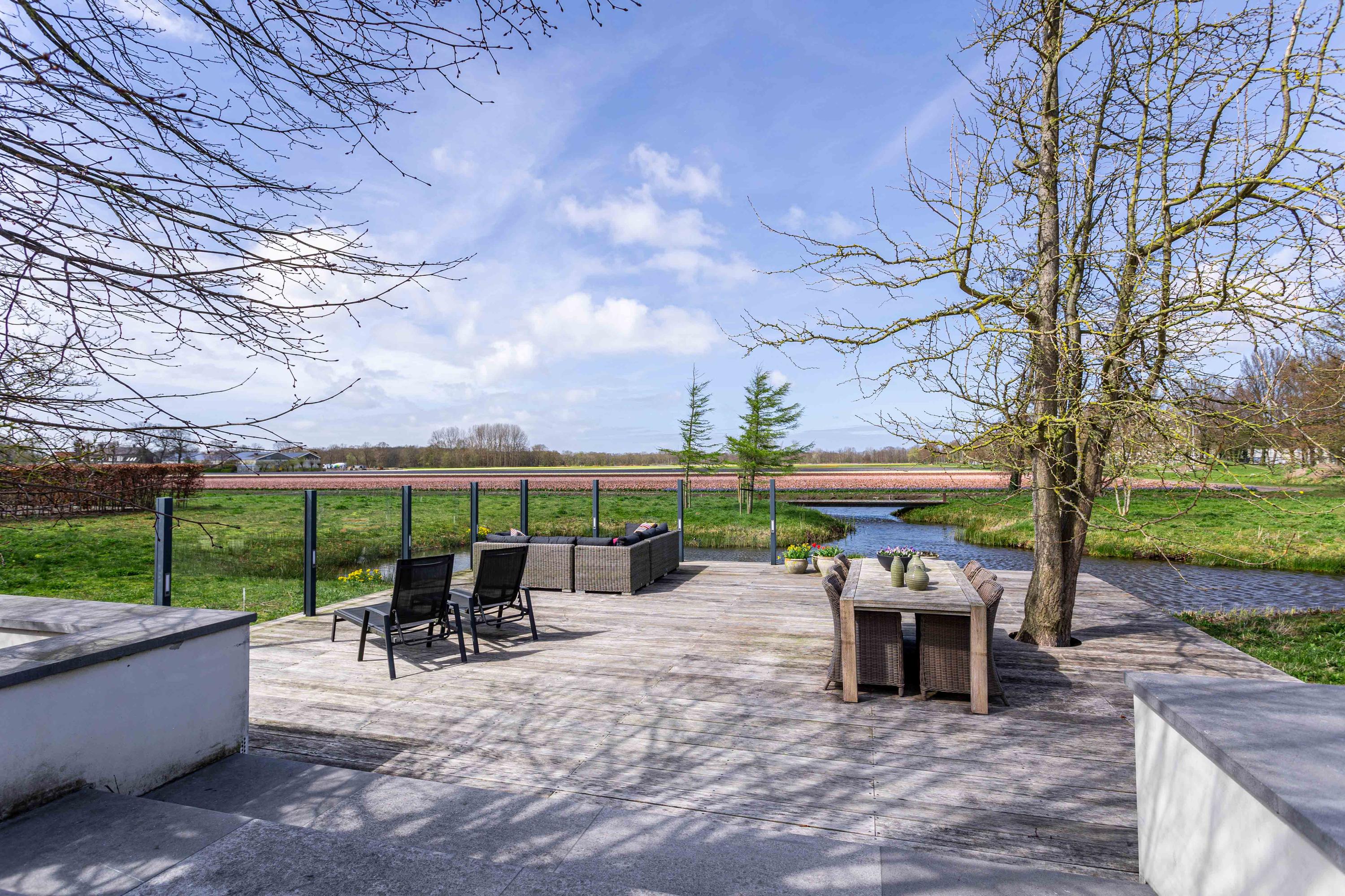 Unique and spacious country house (built in 2009) with a charm that you don't often see. This attractive country house is situated in a fantastic location in the middle of the bulb fields, a stone's throw from Keukenhof and the Keukenhof forest. The villa has been built using high-quality materials and is equipped with every luxury and comfort. Water surrounding the property, the electrically operated decorative gate with anti-intrusion bollard, the cameras, and automatic outdoor lighting provide extra security.