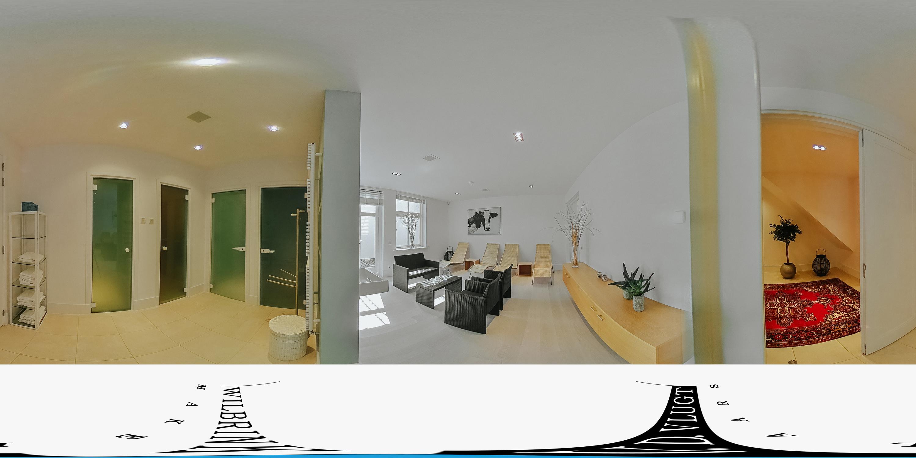 We don't even have to leave the house for wellness; in the basement, which includes a Finnish sauna, a Turkish steam bath, and a relaxation room, you can relax and unwind. There is also a fitness room, a chill room with a bar, and French doors opening onto the outdoor patio. This space can also be used for an au pair or for double occupancy.