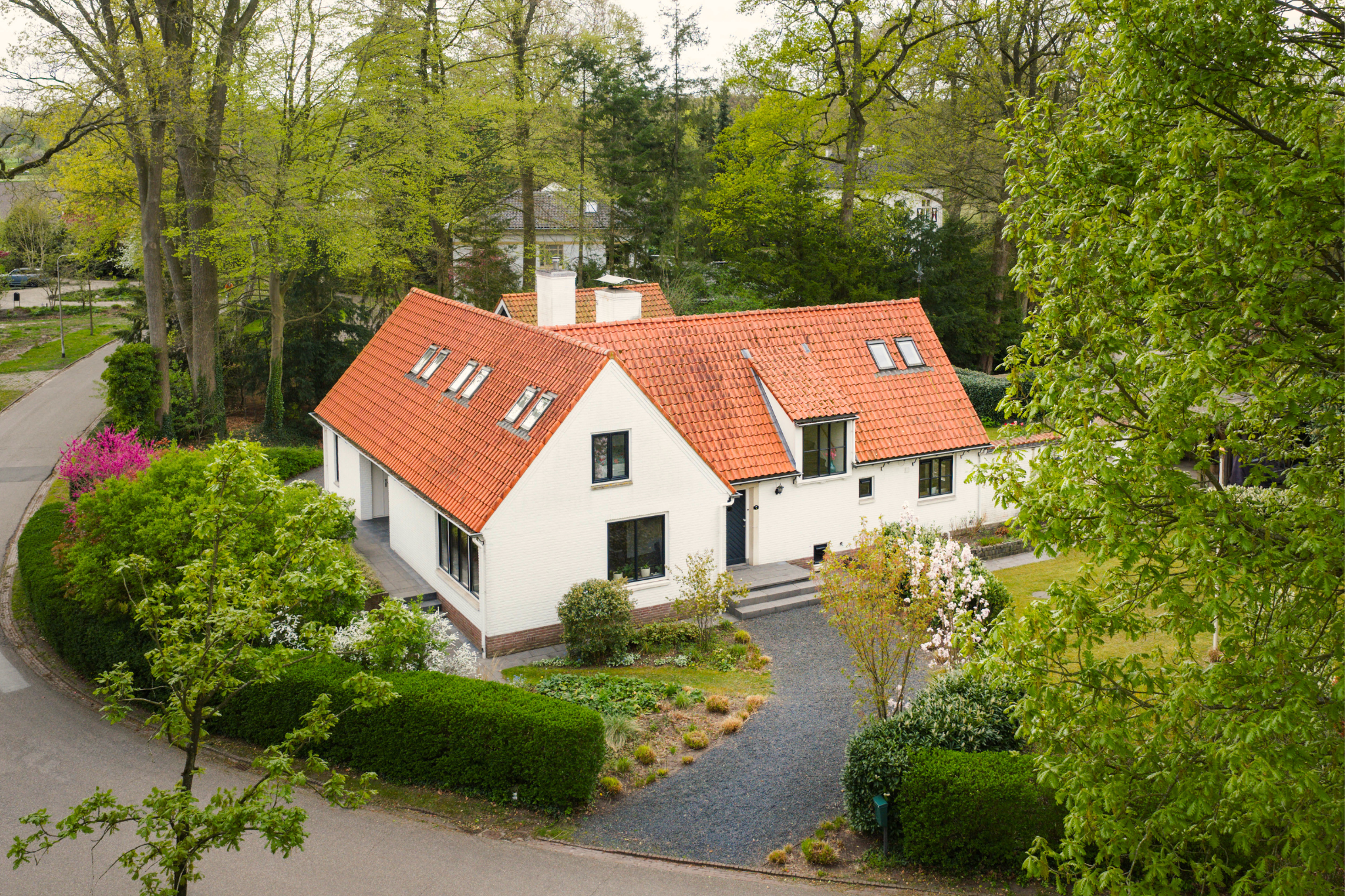 The garden is a true haven. Thanks to its sheltered position and mature privet hedges, privacy is abundant. The garden design exudes tranquillity, with lawns, shrubs and two terraces (one directly adjoining the house, finished with Schellevis tiles) alternating harmoniously. Several seating areas invite you to enjoy the sun and greenery throughout the day.