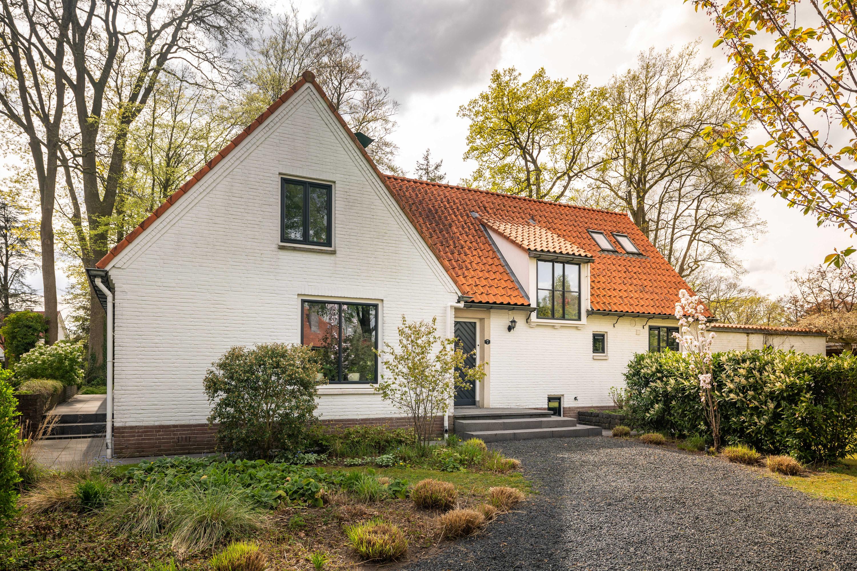 In the highly sought-after Berkeloord area, close to the Berkel river and within walking distance of the Hertenkamp, the Enk and the Lochemse Berg, you will find this impressive villa. Built in 1947, the house offers a generous living area of 215 m² and is set on a spacious plot of 1,755 m². The white façades and red tiled roof give the property a timeless, classic appearance.