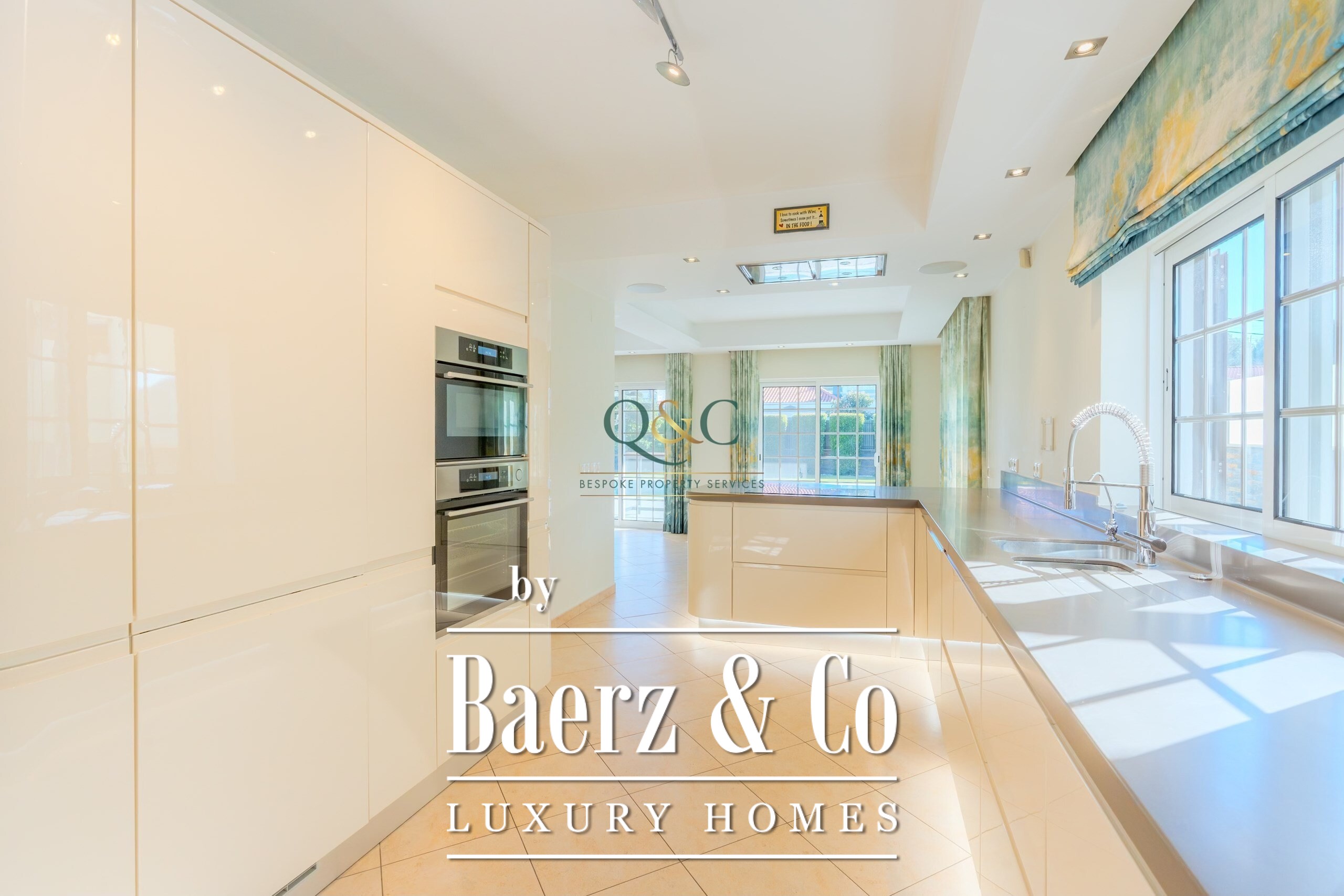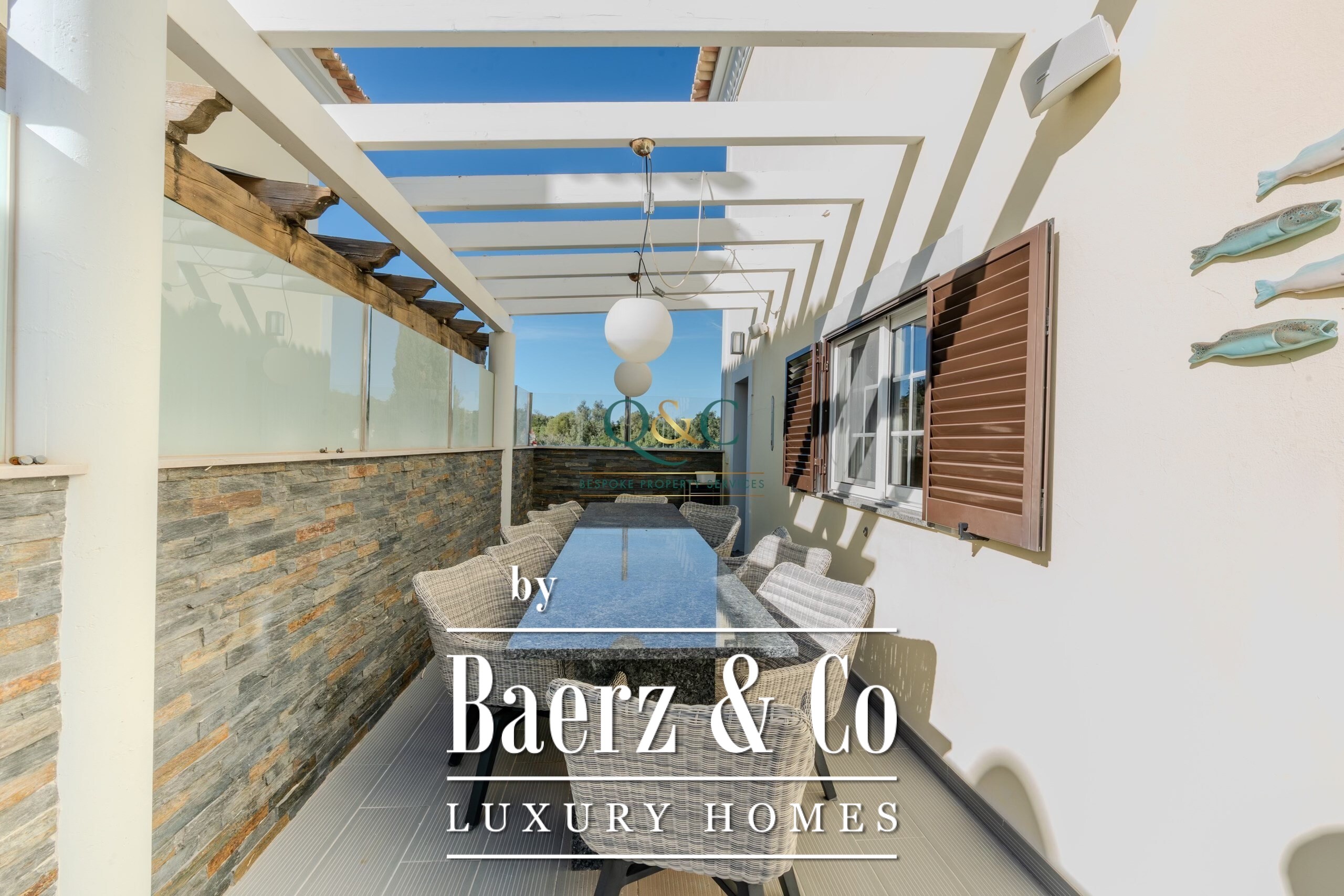 Entering Casa Oliveiras, a private swimming pool and inviting terrace welcome you, inviting quiet relaxation or effortless entertaining under the Algarve sun. The villa features a garage, basement, and dedicated laundry room, combining everyday practicality with understated comfort. Air conditioning, ambient music, double glazing, and a central vacuum system enhance the daily living experience, while a fully equipped kitchen and built-in wardrobes offer further convenience.
