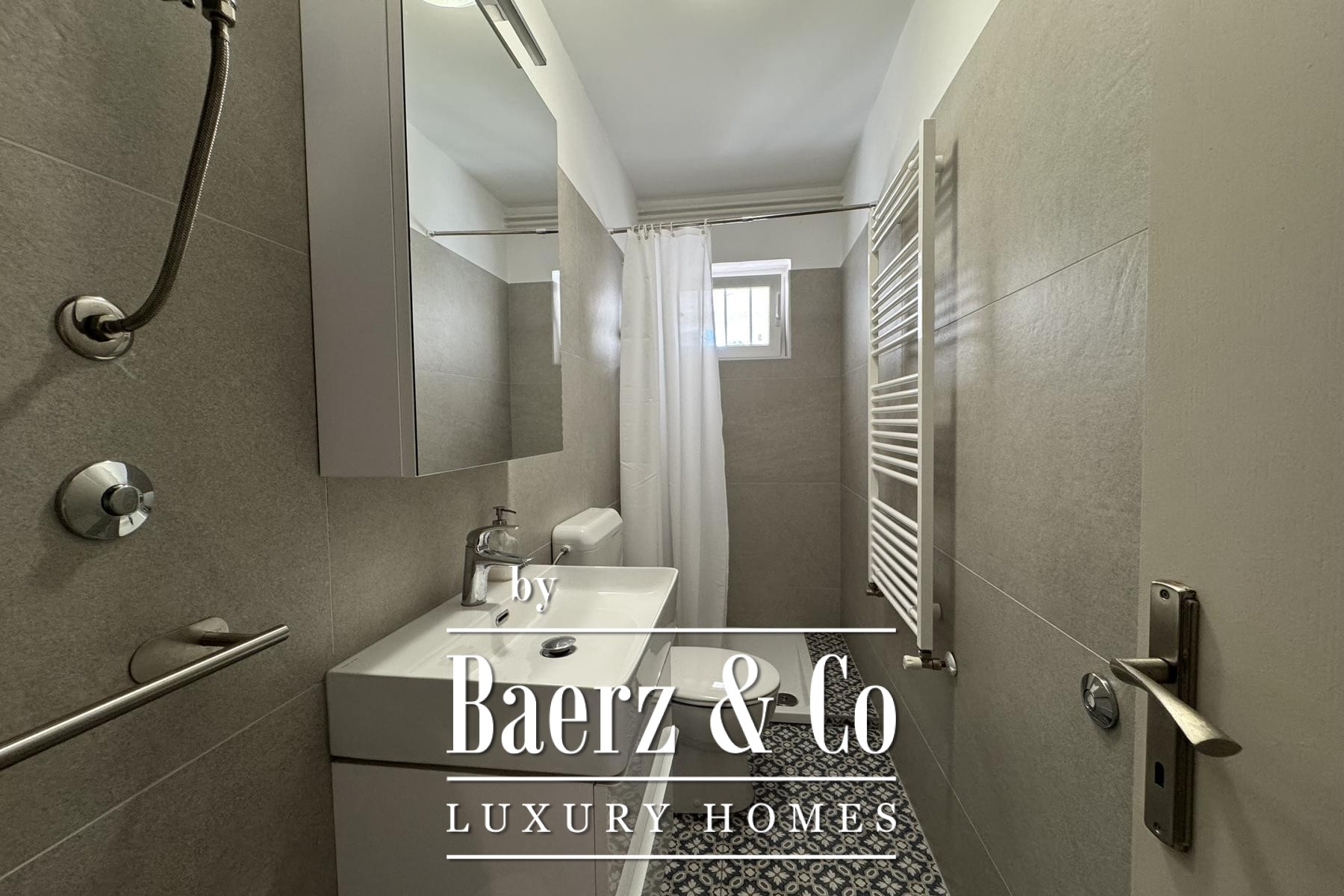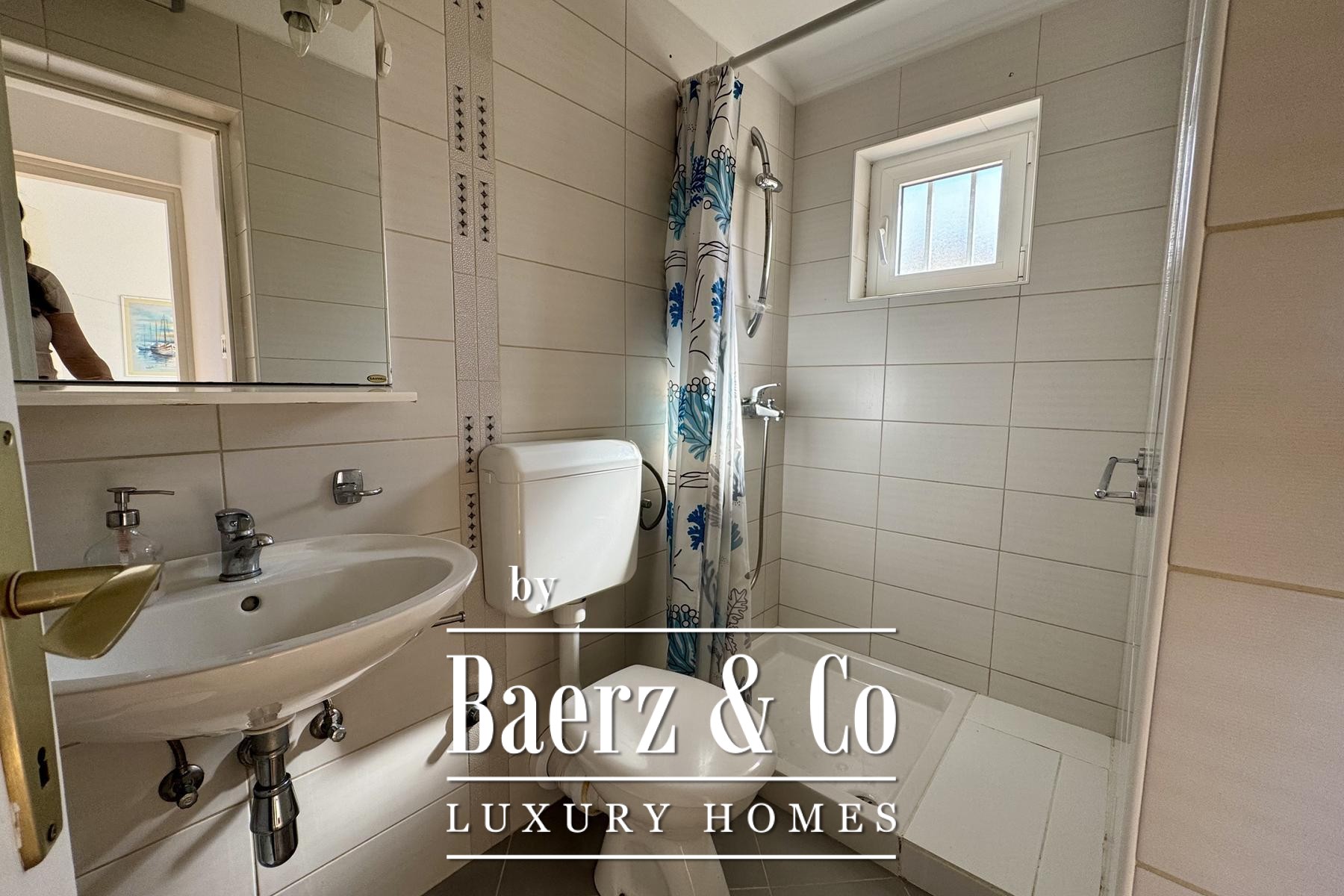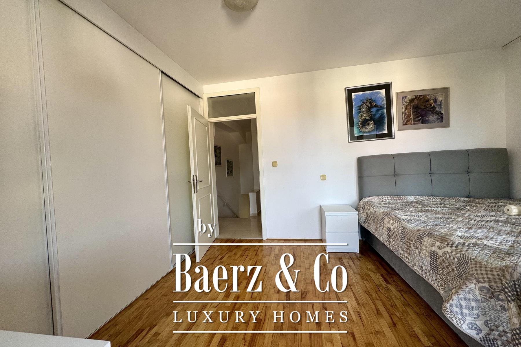 apartment consists of a bedroom, bathroom, kitchen, living room and terrace.Another additional apartment is located in the basement of the house and has two bedrooms, a kitchen, a bathroom and a storage room.There is also a garage in the yard of the house, and the garden itself is full of beautiful Mediterranean plants.Four more cars can be parked in the yard.For any additional information, feel free to contact us!