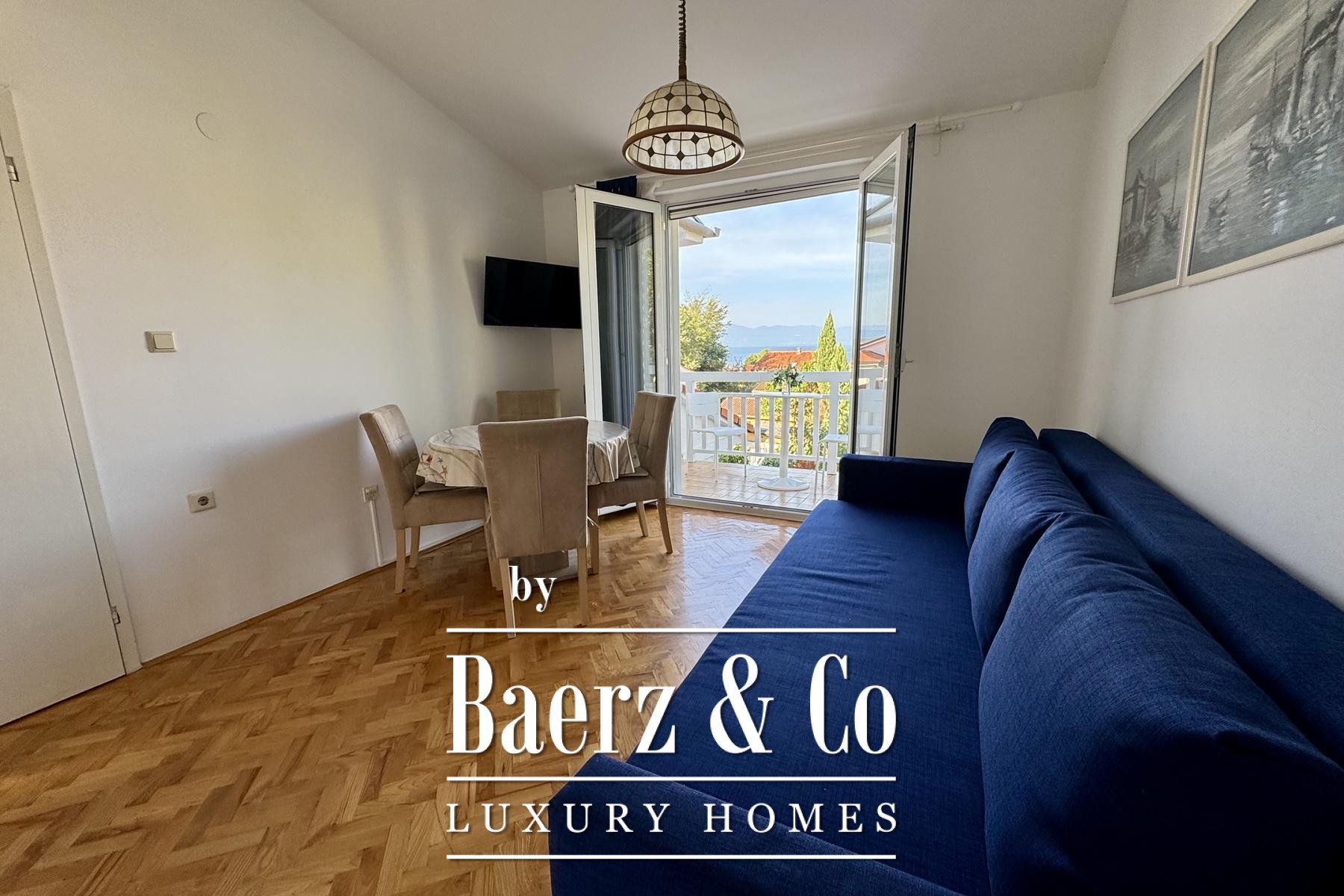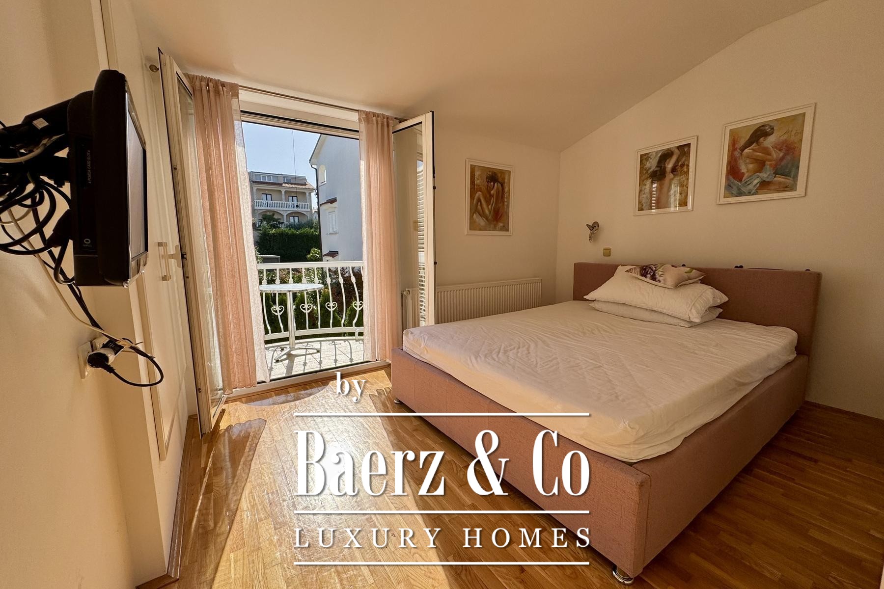 Krk, Malinska, Mediterranean house with sea view on a great location.The house extends over three floors, basement, ground floor and first floor.It consists of a larger two-story apartment with two bedrooms, two bathrooms, a storage room, a comfortable living room with a kitchen and a dining room that opens onto a beautiful covered terrace and two balconies.The second part of the house consists of 4 apartments. Each