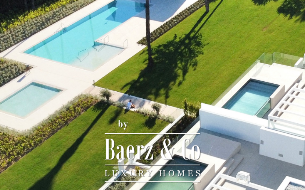 The grounds feature expansive gardens and a remarkable swimming pool of almost 180 m², alongside a 36 m² children’s pool, both maintained by advanced chlorination. The architecture is anchored by tranquil central courtyards and spacious terraces, offering views of Marbella’s iconic sunrise and sunset. This villa complex blends architectural innovation with discreet luxury, appealing to those who value privacy and a sense of place in southern Spain.