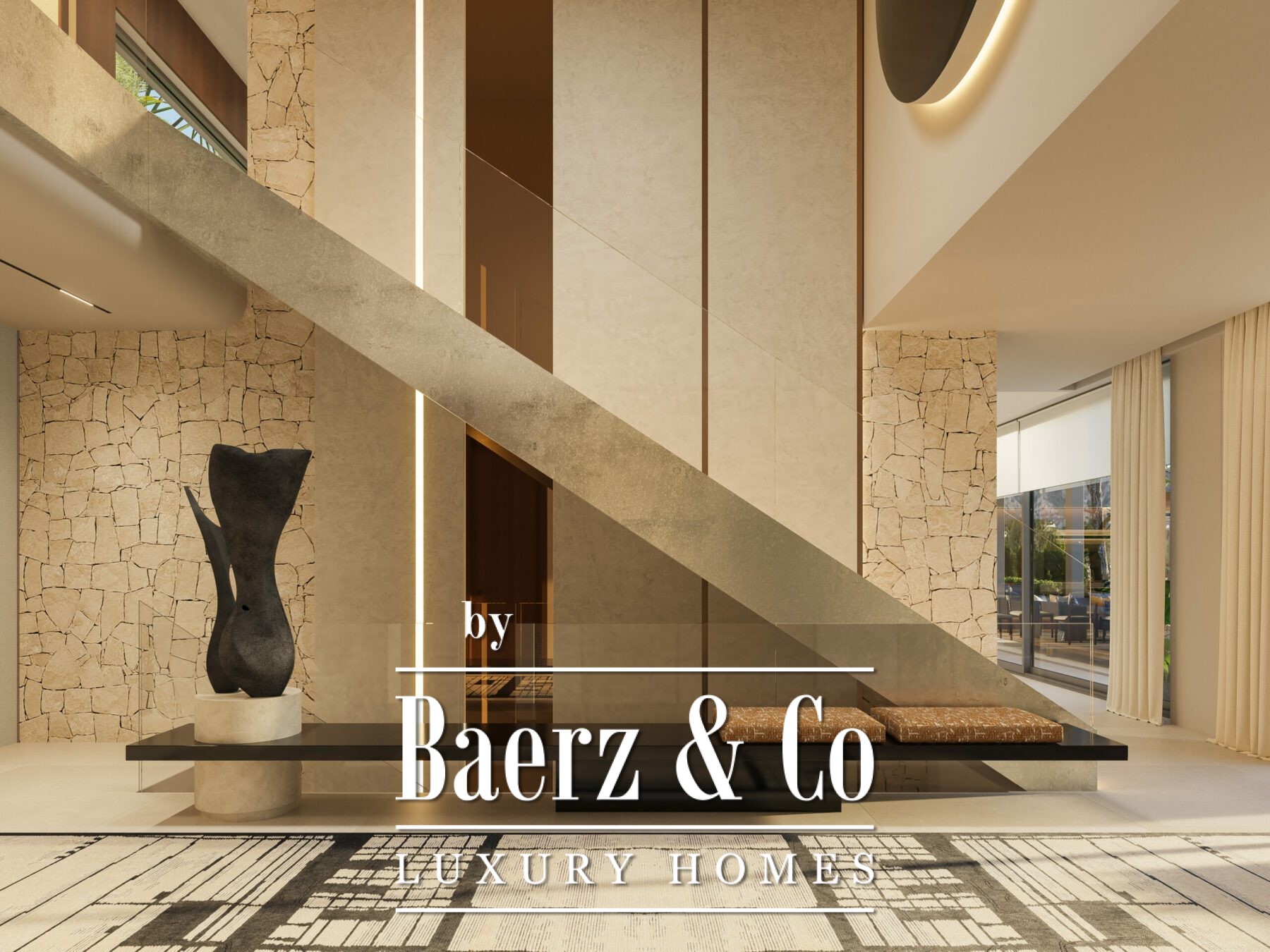 Six bedrooms and six bathrooms create private sanctuaries within a spatial composition that is fluid and generous. The living spaces open to landscaped gardens, where a private infinity pool and a solarium frame panoramic views of La Concha and the Mediterranean Sea. An entire entertainment level integrates a home gym and dedicated areas for gathering, while every finish is underscored by contemporary craftsmanship.