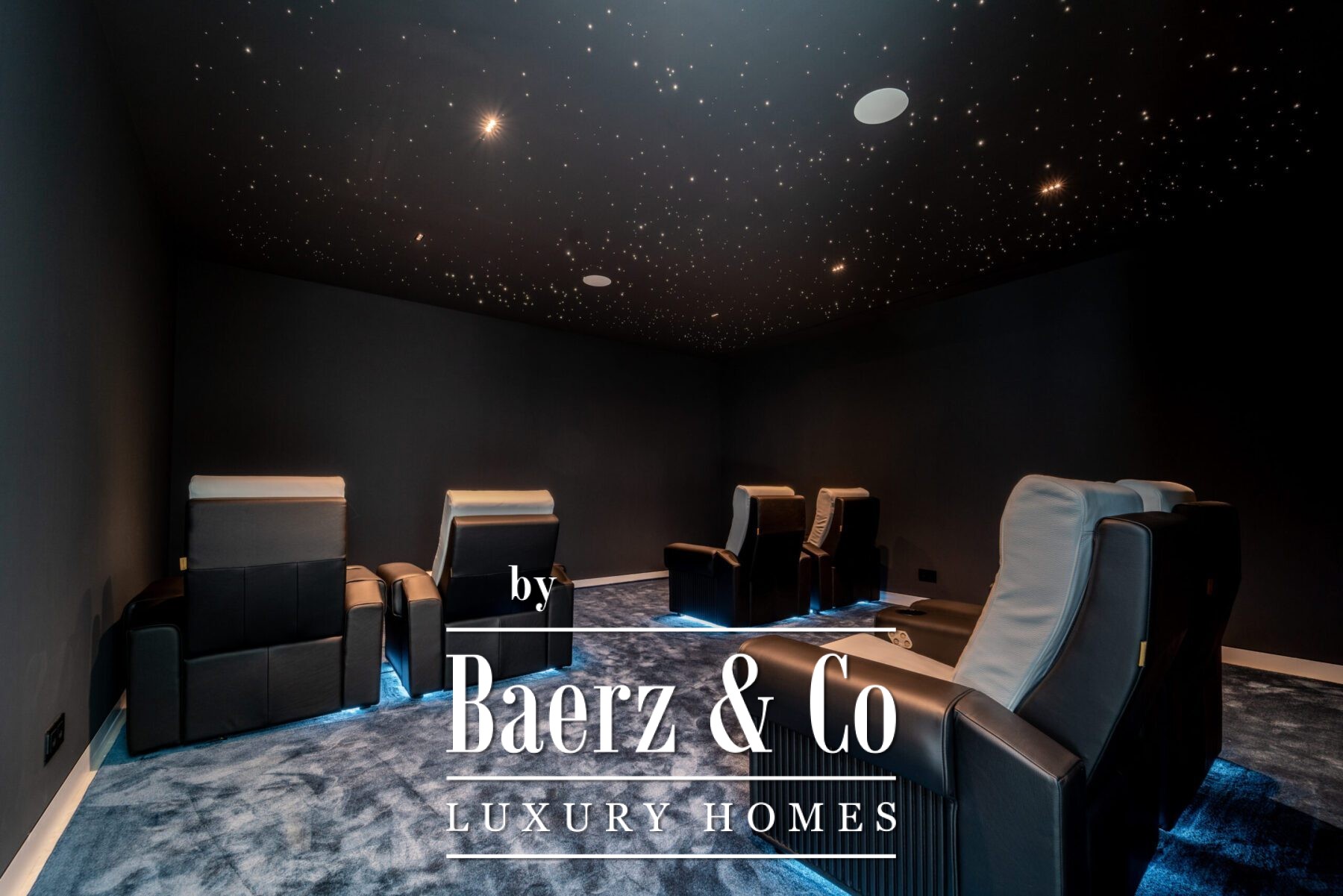 The rooftop solarium, covering 100 m², is dedicated to panoramic dining, a pool, and a tranquil chill-out area—designed for moments set against Marbella’s iconic sunsets. Entertaining is effortless with a cinema room, gym, and a flexible entertainment space in the basement, complemented by a bar, reception area, laundry, and an eight-car garage. Security and comfort are assured with features such as alarm, lift, A/C, UHF, and fireplace.